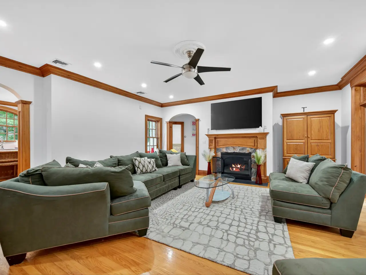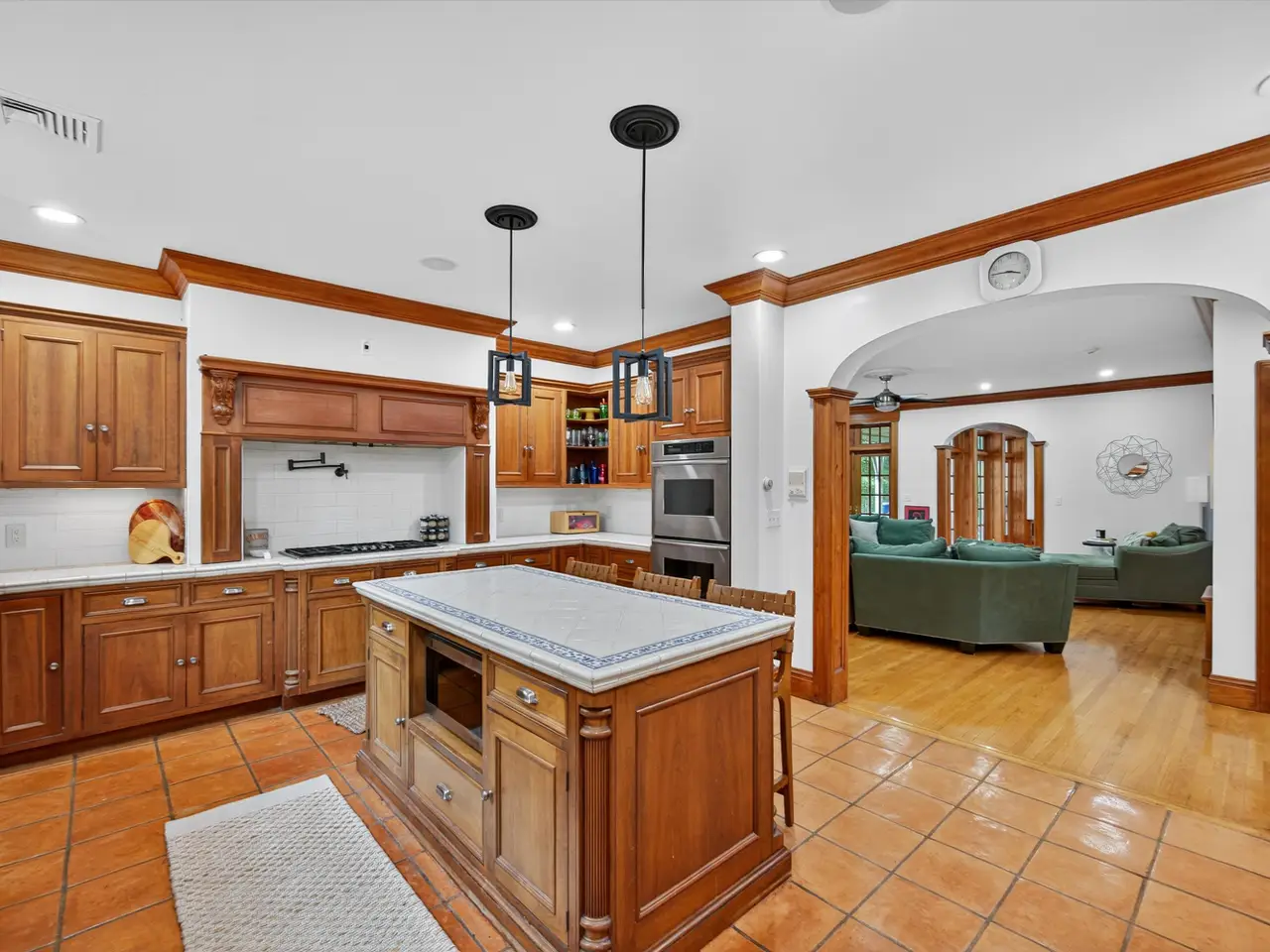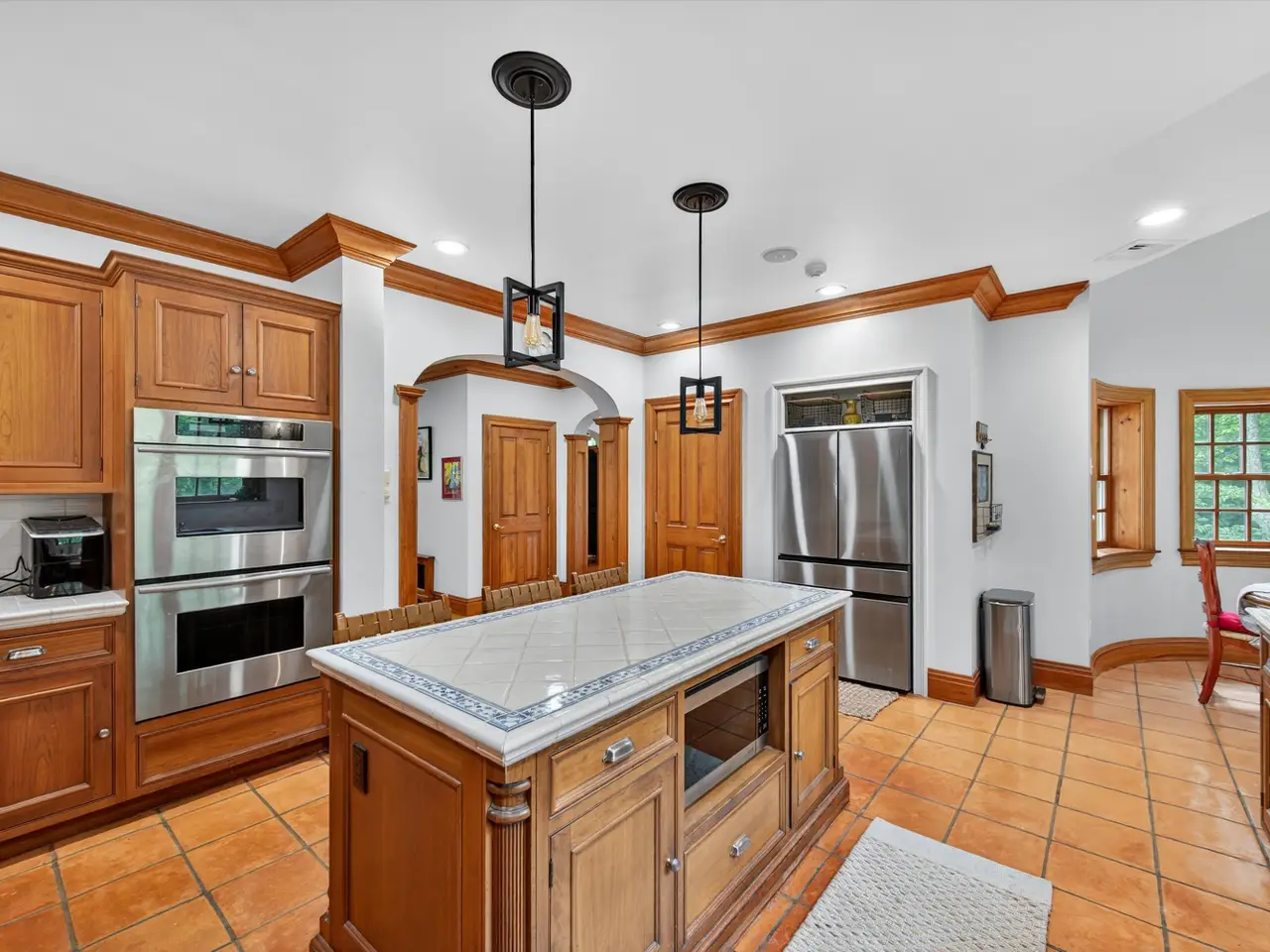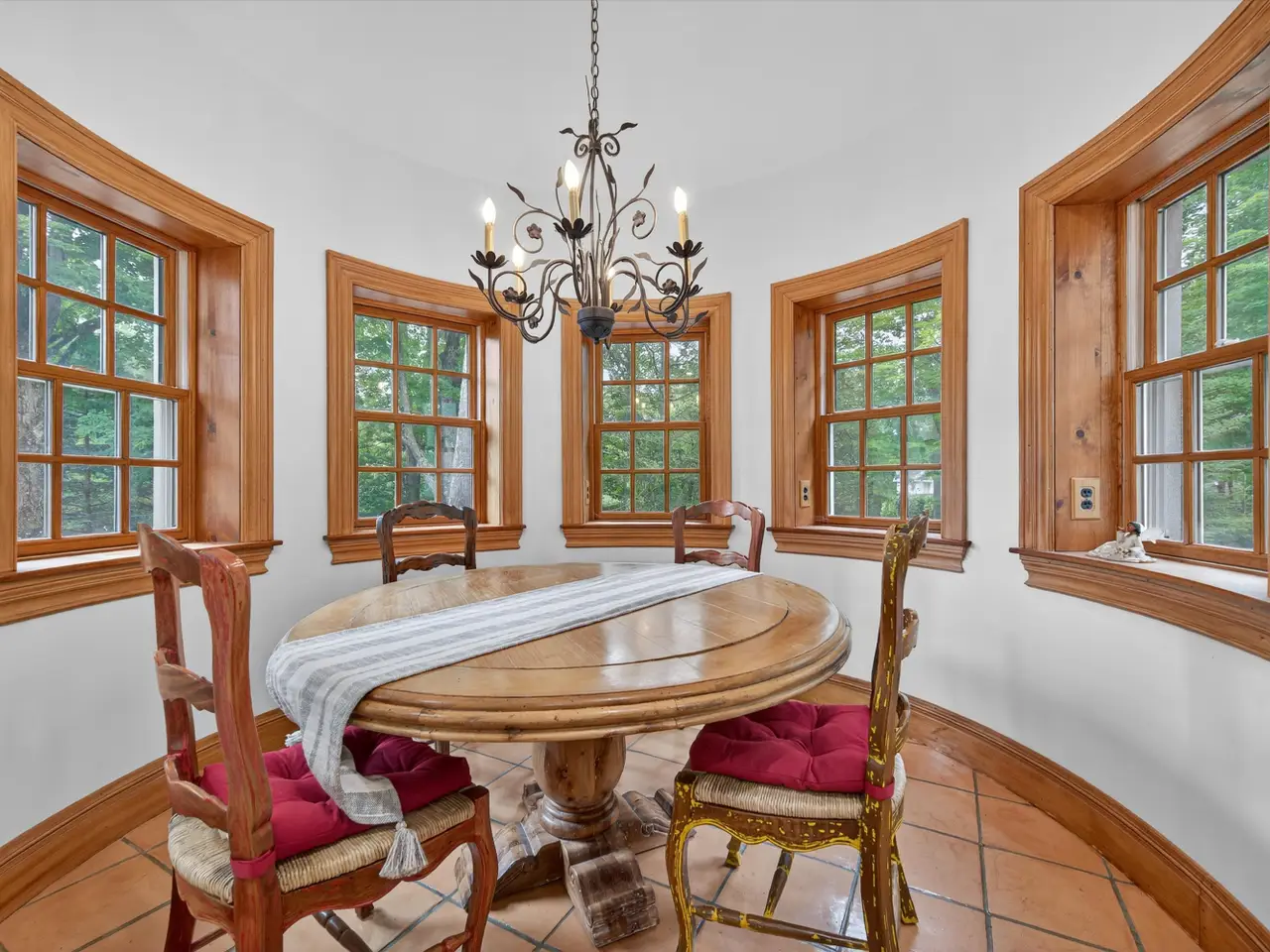 Welcome to "LE CHATEAU des VERTS" – Lives like a ranch, entertains like a castle. Discover a slice of the French countryside, perfectly perched in the Hudson Valley. Inspired by the rolling hills of Provence and meticulously crafted with timeless elegance, this one-of-a-kind home is known to its neighborhood residents as "The Castle on the Hill." It's more than a house; it's a tranquil retreat for those seeking an escape from the city, without sacrificing style or convenience. Nestled on over an acre of serene, maturely landscaped grounds, Le Château des Verts offers a true sanctuary just 30 miles north of Manhattan. The design immediately captivates you as you arrive, with a grand two-story turret and custom arched windows accented by slate-blue shutters—a nod to the classic beauty of French architecture. Step through the double front doors into an inviting foyer. The radiant floors guide you through the sprawling first-floor living area, where natural light pours in from every window, creating a warm, airy atmosphere. To the left, the formal dining room is perfectly positioned for memorable gatherings, with east-facing windows that capture the beauty of the Hudson Valley sunrise. The heart of the home is the French-Country eat-in-kitchen. Here, custom cabinetry and woodwork, along with pull-out spice drawers on either side of the five-burner stove, blend practicality with elegance. The turret space provides the ideal nook for a circular breakfast table, while the center island offers additional seating and prep space. For unwinding or entertaining, the home features two elegant living rooms, each with its own fireplace. Walls of French glass doors illuminate these spaces, offering seamless views and access to your backyard oasis, complete with a heated, in-ground saltwater pool. This is where you'll find yourself on summer afternoons, soaking in the sun and enjoying a peaceful moment. The North Wing of the home, or the "Owner's Wing," is a private escape. A nearby second bedroom, ideal for a nursery or home office, features its own set of French glass doors leading to the garden. The Owner's suite is a haven of relaxation, with high ceilings and another set of French doors that amplify the natural light. It leads to an ensuite bathroom with dual vanities, a luxurious jacuzzi tub, and a custom shower. A walk-in closet with built-ins completes this wing. Continuing to the west wing of the home, a half-bathroom, laundry room, and a spacious bonus room offer flexibility—perfect for a billiards room, library, or secluded living area. Upstairs, two generous guest bedrooms share a full bathroom, ensuring comfort and privacy for visitors. An unfinished space also leaves room for additional quarters. The walkout lower level provides a versatile living space with a full bath. A large room, currently used as a walk-in closet, has endless potential for a jaw-dropping hobby space—from a private wine cellar to a state-of-the-art recreation room with a golf simulator. A full gym and an attached three-car garage complete this incredible home. This is more than a property; it's a lifestyle you've been dreaming of.