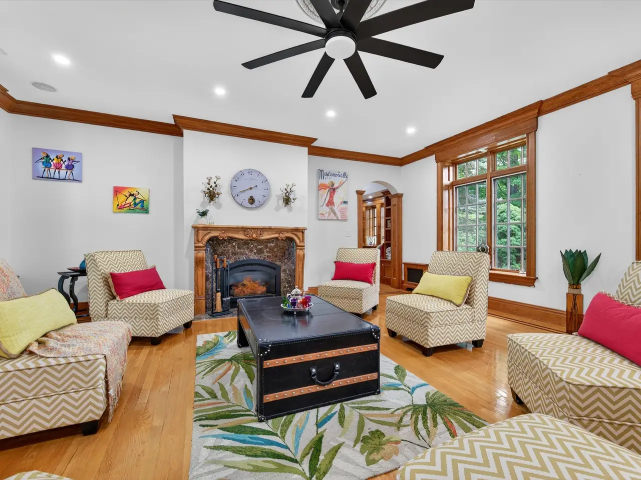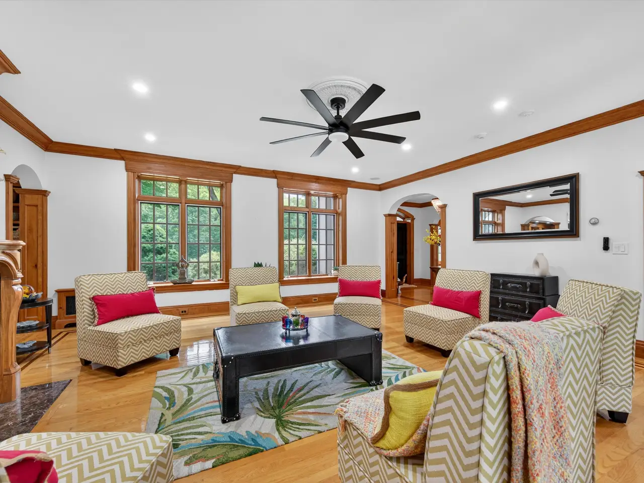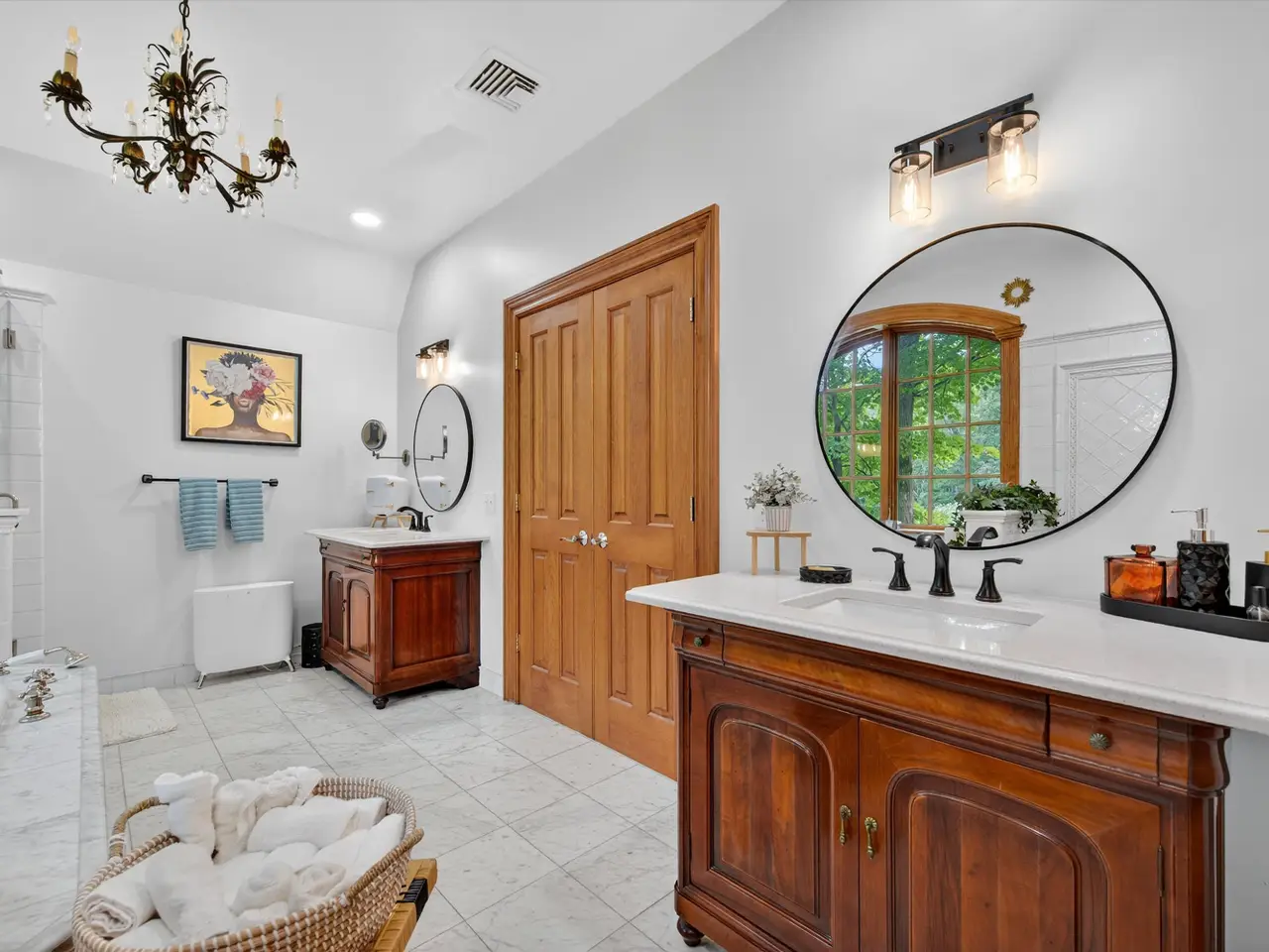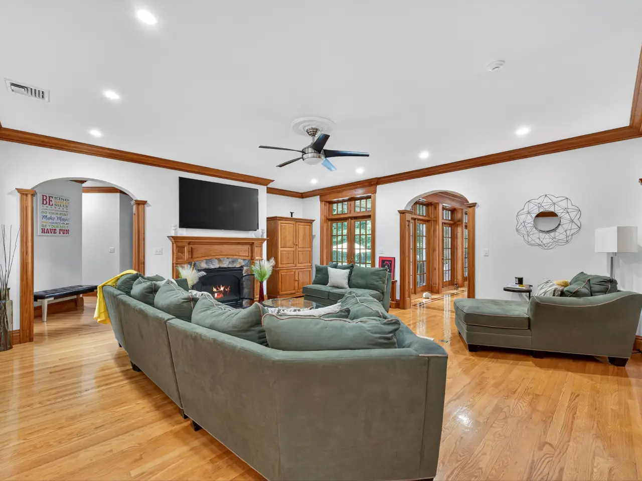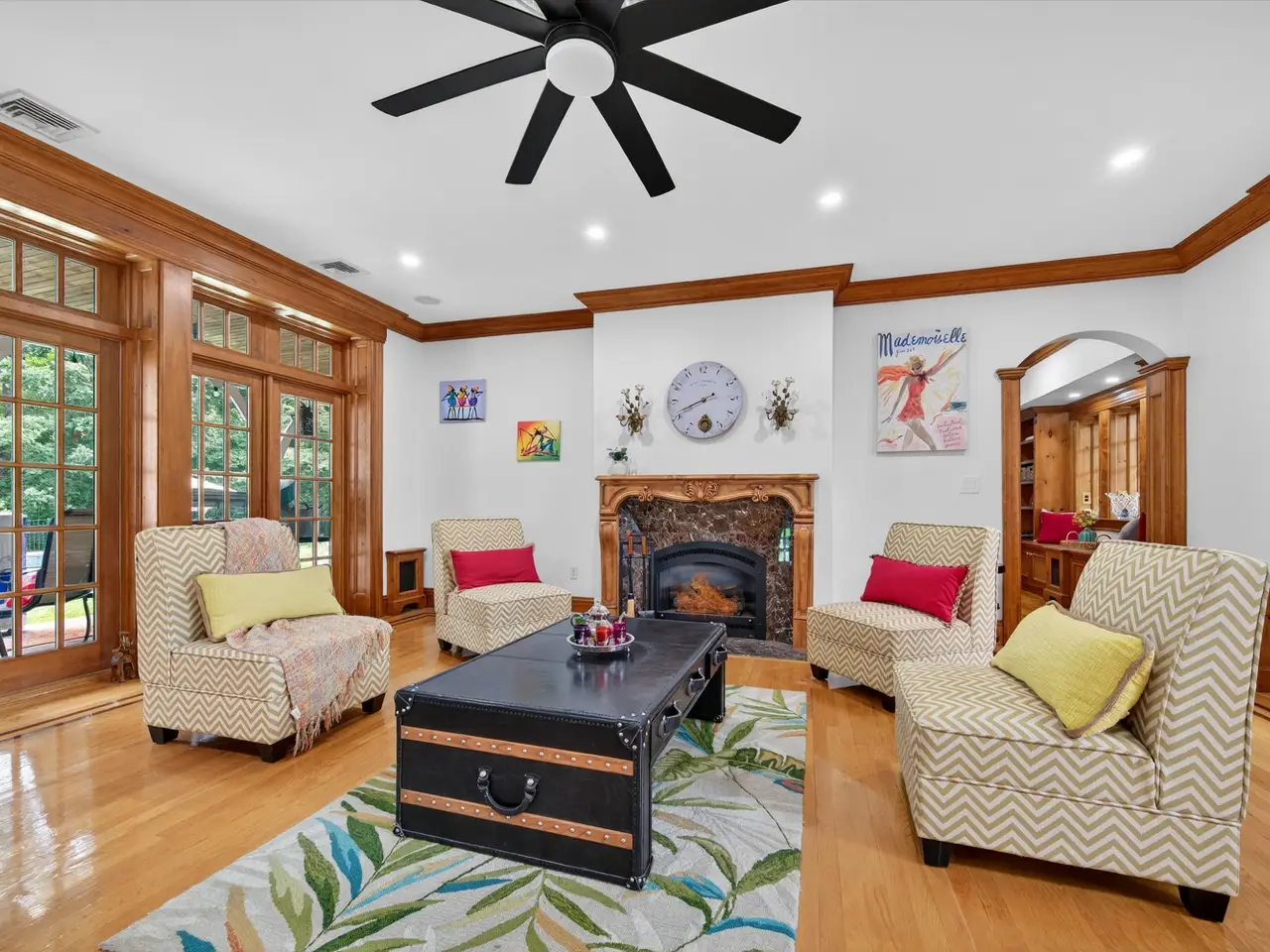 Welcome to "LE CHATEAU des VERTS" – Lives like a ranch, entertains like a castle. Discover a slice of the French countryside, perfectly perched in the Hudson Valley. Inspired by the rolling hills of Provence and meticulously crafted with timeless elegance, this one-of-a-kind home is known to its neighborhood residents as "The Castle on the Hill." It's more than a house; it's a tranquil retreat for those seeking an escape from the city, without sacrificing style or convenience. Nestled on over an acre of serene, maturely landscaped grounds, Le Château des Verts offers a true sanctuary just 30 miles north of Manhattan. The design immediately captivates you as you arrive, with a grand two-story turret and custom arched windows accented by slate-blue shutters—a nod to the classic beauty of French architecture. Step through the double front doors into an inviting foyer. The radiant floors guide you through the sprawling first-floor living area, where natural light pours in from every window, creating a warm, airy atmosphere. To the left, the formal dining room is perfectly positioned for memorable gatherings, with east-facing windows that capture the beauty of the Hudson Valley sunrise. The heart of the home is the French-Country eat-in-kitchen. Here, custom cabinetry and woodwork, along with pull-out spice drawers on either side of the five-burner stove, blend practicality with elegance. The turret space provides the ideal nook for a circular breakfast table, while the center island offers additional seating and prep space. For unwinding or entertaining, the home features two elegant living rooms, each with its own fireplace. Walls of French glass doors illuminate these spaces, offering seamless views and access to your backyard oasis, complete with a heated, in-ground saltwater pool. This is where you'll find yourself on summer afternoons, soaking in the sun and enjoying a peaceful moment. The North Wing of the home, or the "Owner's Wing," is a private escape. A nearby second bedroom, ideal for a nursery or home office, features its own set of French glass doors leading to the garden. The Owner's suite is a haven of relaxation, with high ceilings and another set of French doors that amplify the natural light. It leads to an ensuite bathroom with dual vanities, a luxurious jacuzzi tub, and a custom shower. A walk-in closet with built-ins completes this wing. Continuing to the west wing of the home, a half-bathroom, laundry room, and a spacious bonus room offer flexibility—perfect for a billiards room, library, or secluded living area. Upstairs, two generous guest bedrooms share a full bathroom, ensuring comfort and privacy for visitors. An unfinished space also leaves room for additional quarters. The walkout lower level provides a versatile living space with a full bath. A large room, currently used as a walk-in closet, has endless potential for a jaw-dropping hobby space—from a private wine cellar to a state-of-the-art recreation room with a golf simulator. A full gym and an attached three-car garage complete this incredible home. This is more than a property; it's a lifestyle you've been dreaming of.