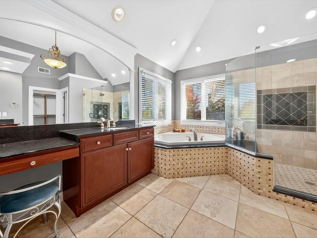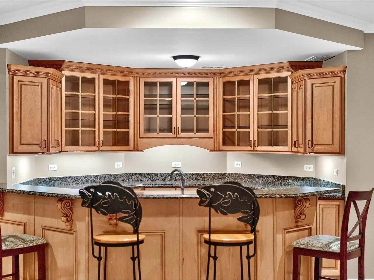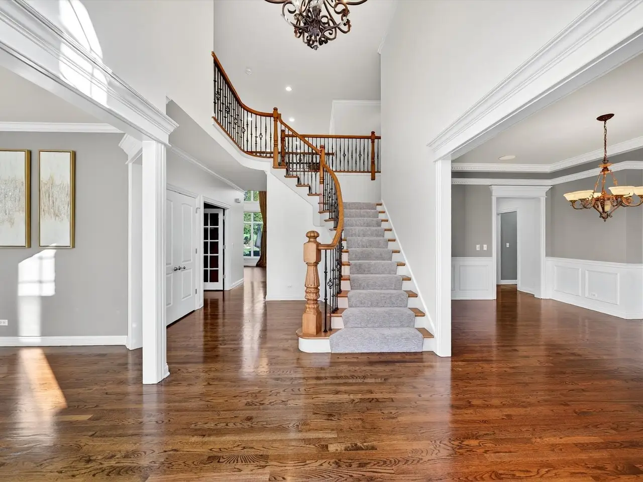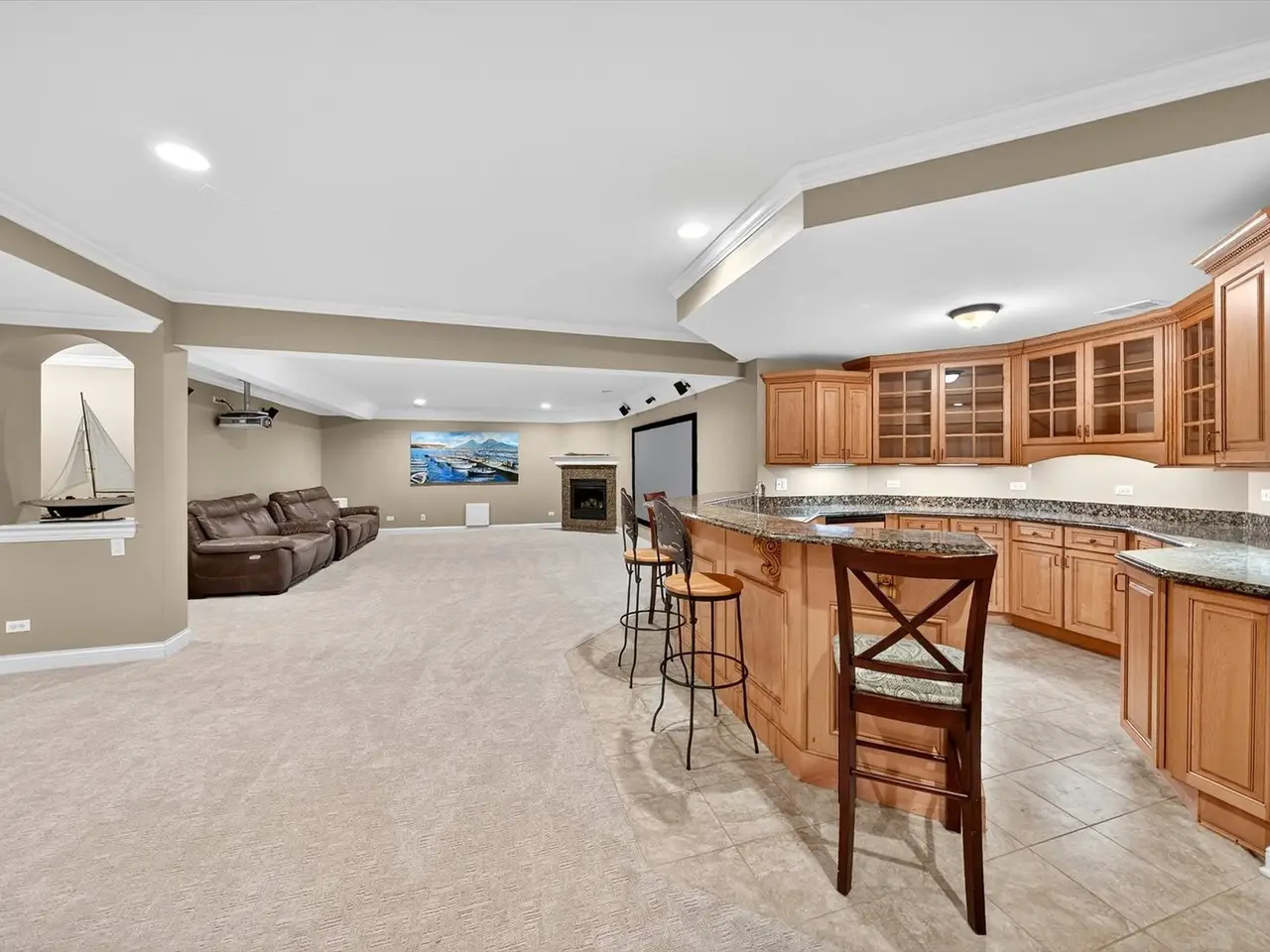 Welcome to your next chapter in this stunning five-bedroom, four-and-a-half-bathroom home that perfectly balances sophistication with everyday comfort. Located in the sought-after Fox Mill Subdivision, this custom model residence sits on a premium lot where mature landscaping meets thoughtful design. Every detail, from the professional-grade kitchen to the opulent bathrooms, reflects meticulous craftsmanship and upscale finishes. The interior spaces exude gracefulness and sophistication, offering a harmonious blend of comfort and style. Every detail has been meticulously designed to create an atmosphere of grandeur and extravagance. Enter through the formal entry and discover flowing living spaces that invite both quiet moments and lively gatherings. The completely remodeled kitchen takes center stage with refined finishes, a modern layout, and gleaming high end stainless-steel appliances that enhance the cooking experience. Adjacent casual dining and entertaining zones create the perfect backdrop for everything from morning coffee to dinner parties. Fresh paint throughout provides a crisp, clean canvas ready for your personal touch, while new carpet and luxury vinyl plank flooring in the bedrooms offer the perfect blend of comfort and durability. The luxurious primary suite serves as your personal retreat, featuring an elegant wet bar perfect for evening nightcaps and morning refreshments. Step into the spa-like primary bathroom where a full body spray shower system delivers a resort-quality experience, while the indulgent whirlpool tub transforms daily routines into relaxation rituals. Additional bedrooms feature thoughtful appointments that create restful retreats. Throughout the home, a whole house speaker system with surround sound creates the perfect ambiance for any occasion. The finished basement takes this home to the next level with its own kitchenette, home theater space with surround sound system, home gym with equipment, and ample storage. The entertainment possibilities are endless in the state-of-the-art finished basement! Recent updates demonstrate exceptional care and provide peace of mind. The new roof installed in 2020 protects your investment, while dual air conditioning units from the same year work in perfect harmony with two new furnaces also installed in 2020 to create a complete, modern heating and cooling system that ensures year-round comfort throughout every corner of the home. Updated water heaters from 2019 mean reliable hot showers for everyone, and fresh exterior paint from 2022 boosts curb appeal effortlessly. The cutting-edge smart sprinkler system brings technology to your fingertips, allowing you to control and monitor your lawn care from anywhere using your smartphone app. Fox Mill's community amenities include a clubhouse, pool, mature landscaping, scenic open spaces, and convenient walking trails. Located near downtown St. Charles and Geneva, you'll enjoy small-town charm with easy access to shopping, dining, and recreation. This turnkey home represents the ideal intersection of luxury and livability, where quality upgrades meet comfortable living in one of the area's most desirable neighborhoods.