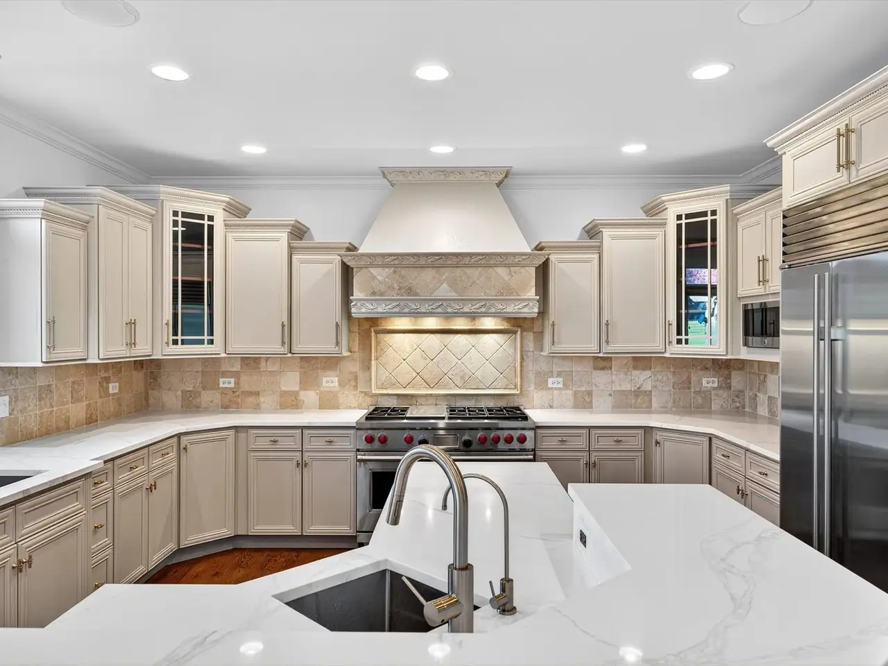 • Custom gourmet kitchen with high-end stainless-steel appliances