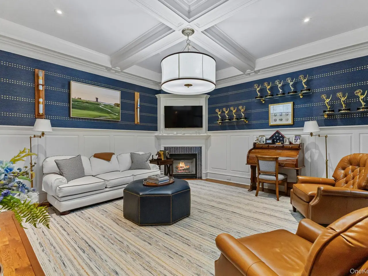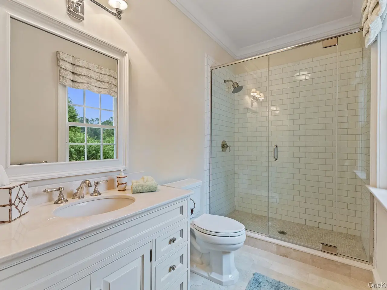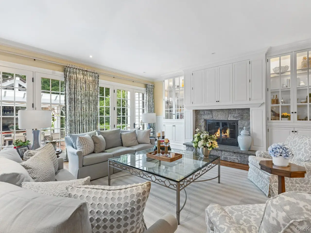 Olympic Hill Farm - A rare and remarkable estate nestled on 20 breathtaking acres in the heart of historic Guard Hill. A gated Belgian block-lined drive leads to park-like grounds with mature trees, gardens, and sweeping lawns. Every inch of this home reflects exceptional craftsmanship, from wide plank oak floors and coffered ceilings to elegant millwork and French doors. The grand two-story foyer opens to formal living and dining rooms, a stunning library and fireplace, and a state-of-the-art Christopher Peacock kitchen featuring La Cornue, Wolf, Sub-Zero, and Miele appliances, plus marble and copper finishes. Spacious family rooms on both levels, each with fireplaces, offer refined comfort. The luxurious primary suite includes a fireplace, dressing room, spa bath, and Juliet balcony. Five additional ensuite bedrooms (including one on the main level). Lower level offers a custom wine cellar and tasting room with fireplace, theater, golf simulator, and dog spa. Equestrian facilities include an 8-stall stable with direct Bedford Riding Lane access, four paddocks, and an arena. Outdoor highlights: fireplace, patios, pergola, gardens, English greenhouse/potting shed, putting greens, and trails. Prime location near trains, highways, schools, and dining.