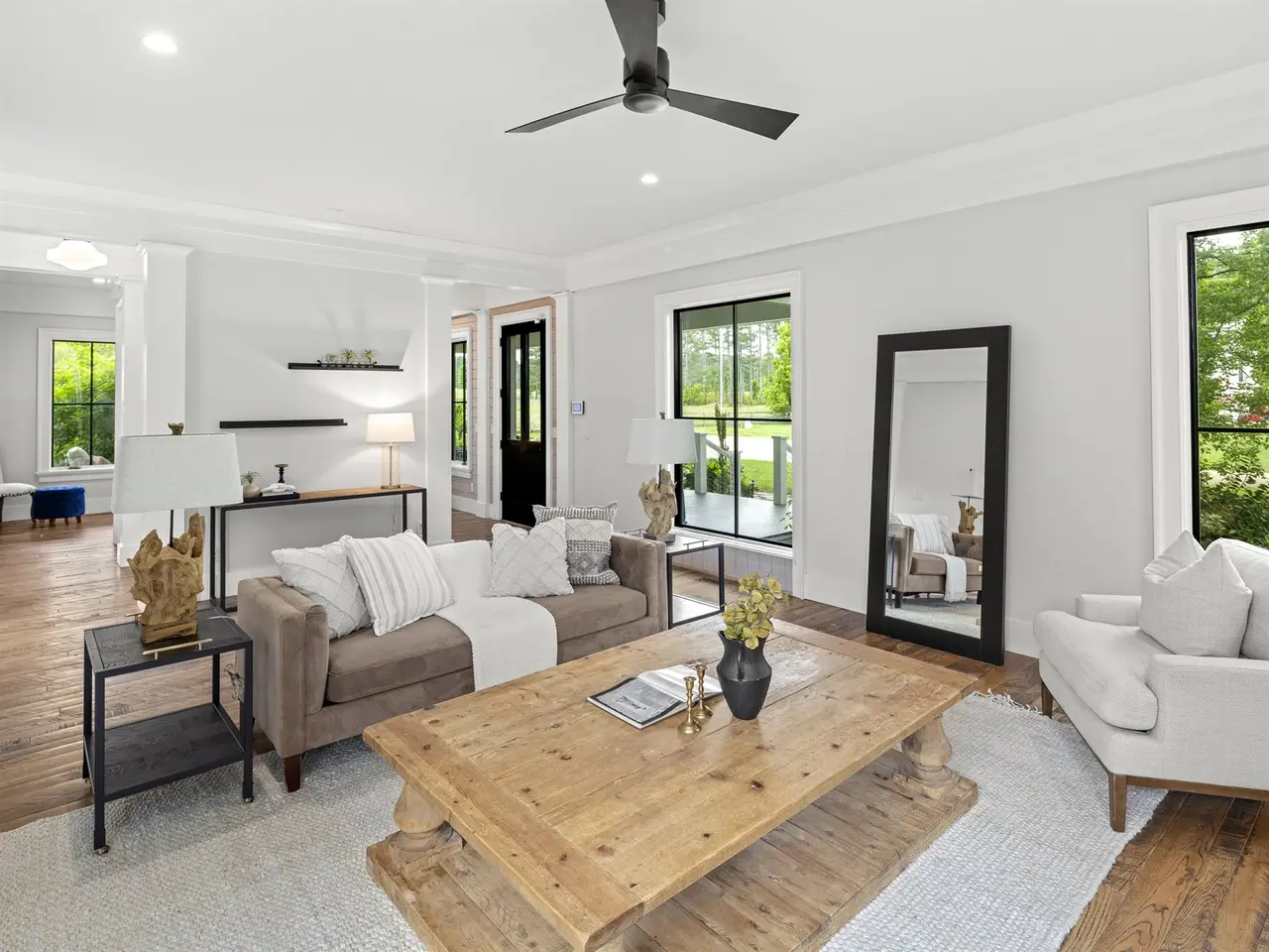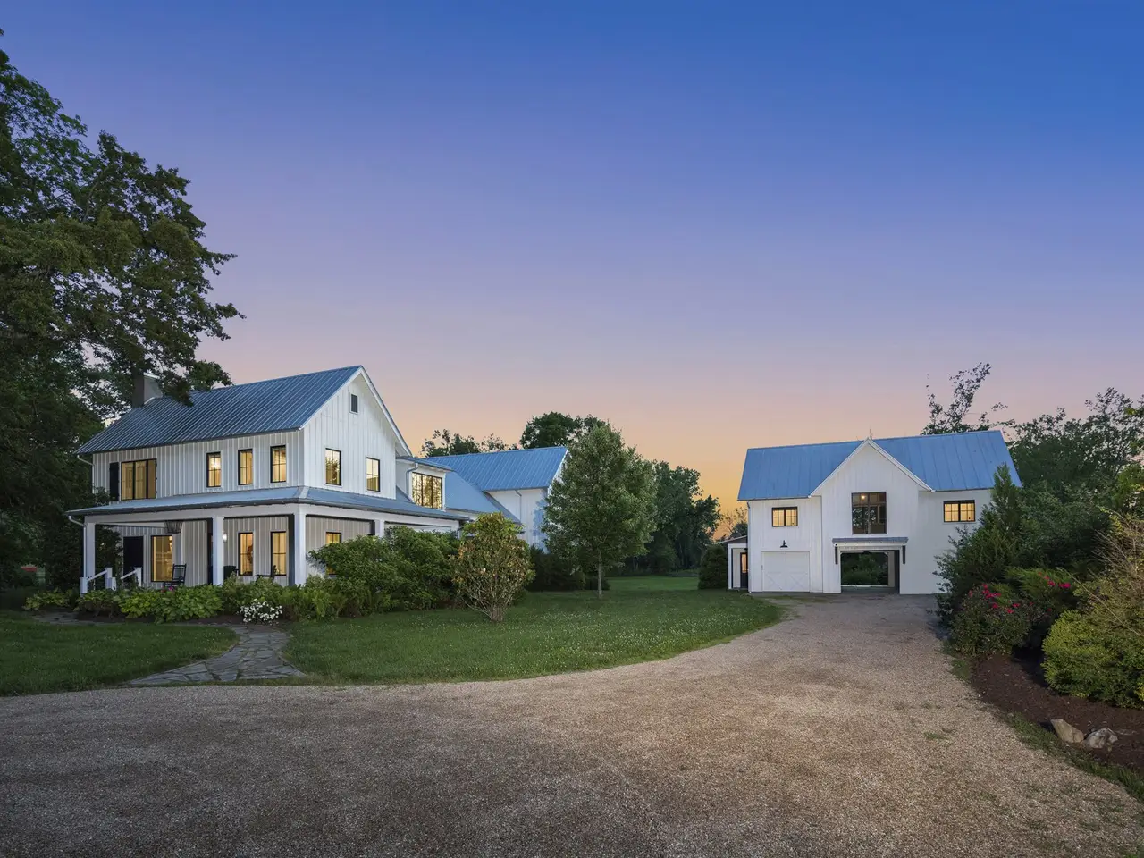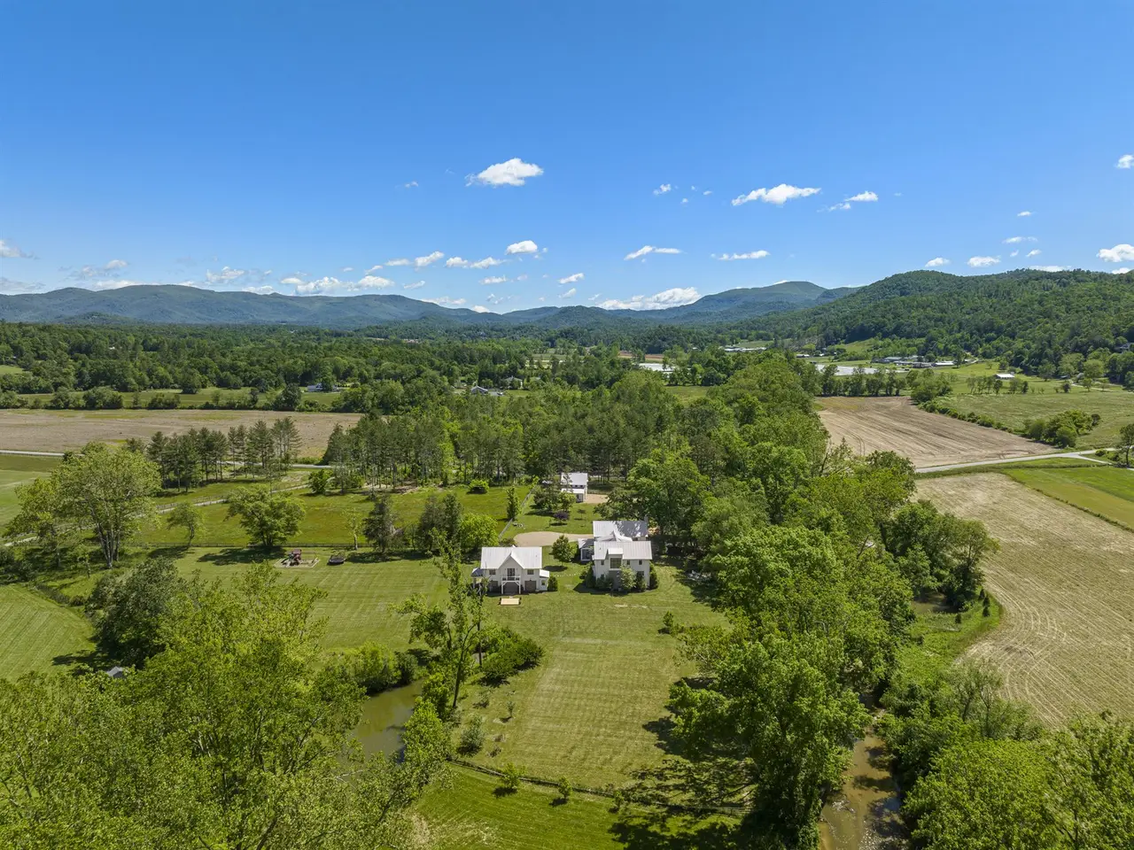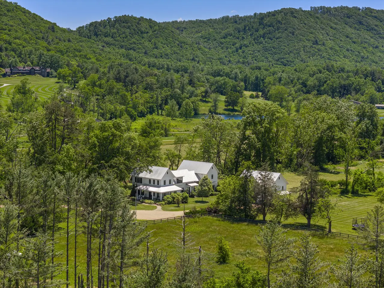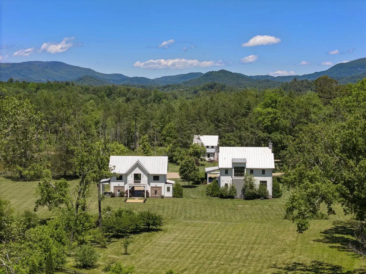Nestled in the serene mountains of Western North Carolina, this modern farmhouse sits on over 10 private acres along a stocked trout stream. The estate features a spacious 4-bedroom main house, each bedroom with its own en suite bath, complemented by a cozy 2-bedroom guest house. You'll also find a barn with a stable, a charming chicken coop, and pens for other farm animals, all surrounded by ample pasture space perfect for livestock or gardening. A detached garage houses a home gym and sauna, supporting a healthy, whole-body lifestyle. This inviting retreat offers the perfect blend of privacy and simplicity, ideal for those seeking a peaceful mountain lifestyle with plenty of room for animals and outdoor living?all just 6 miles from Whole Foods, 7.5 miles to Fresh Market, 7.5 miles to the entrance to the Blue Ridge Parkway, 13.7 miles to Beautiful Biltmore Estate, and all the fabulous shopping and dining in between!