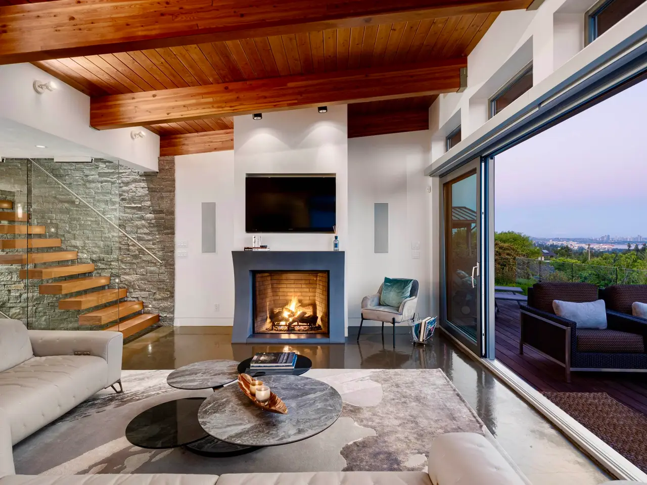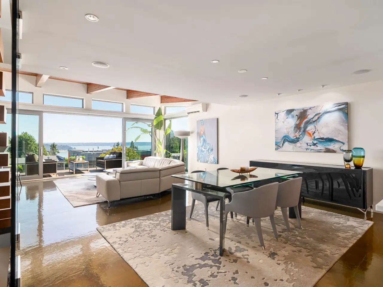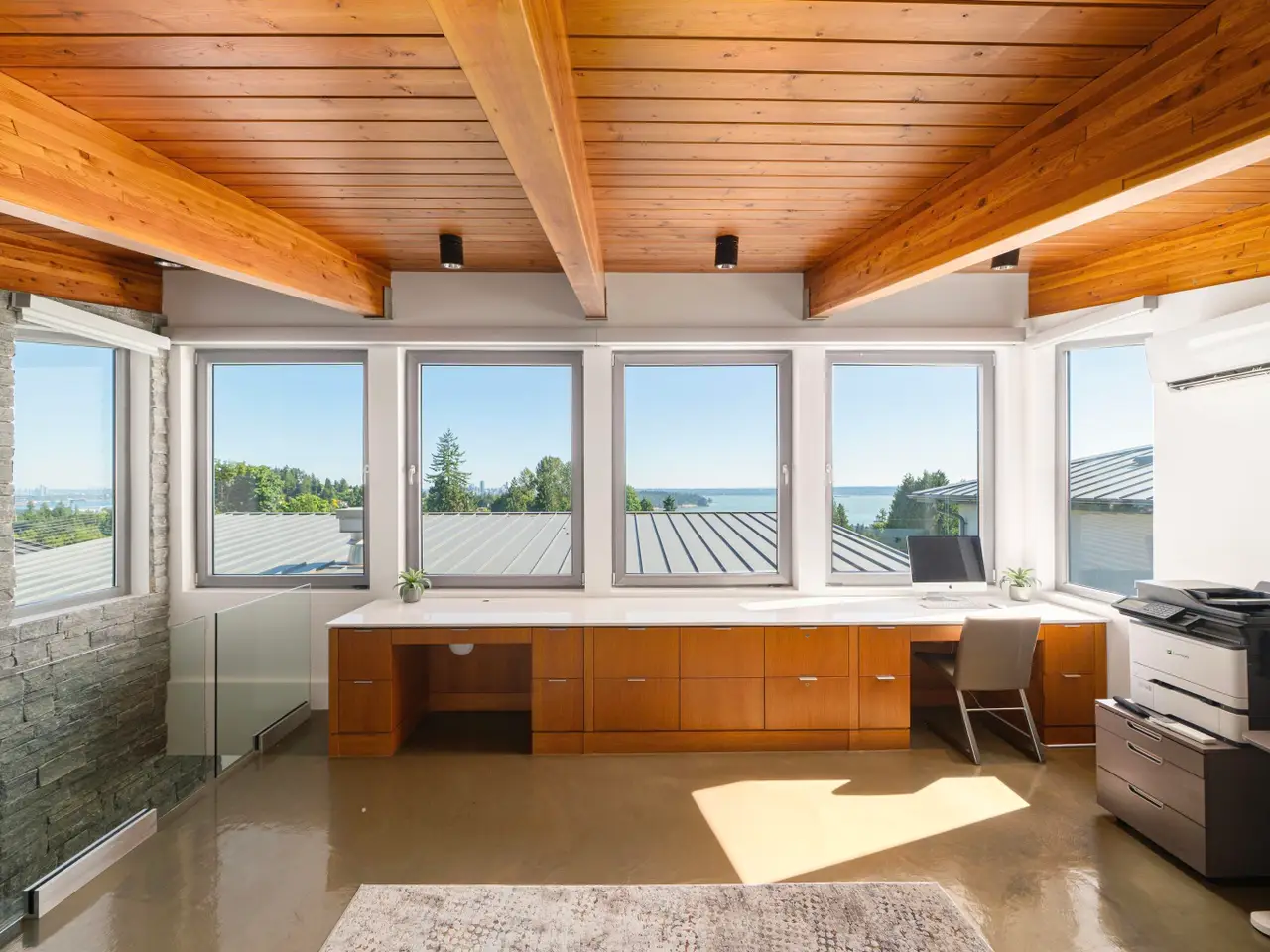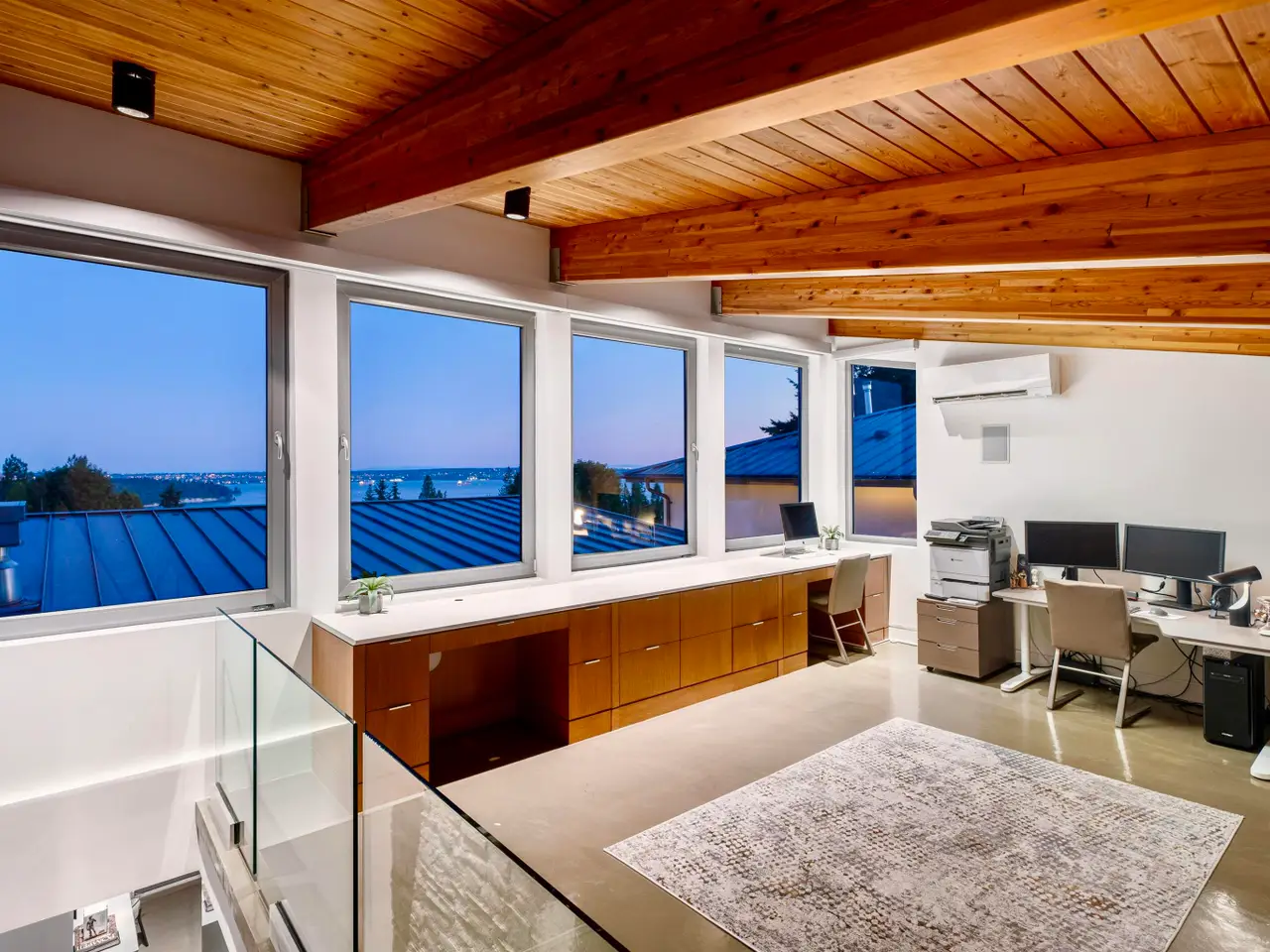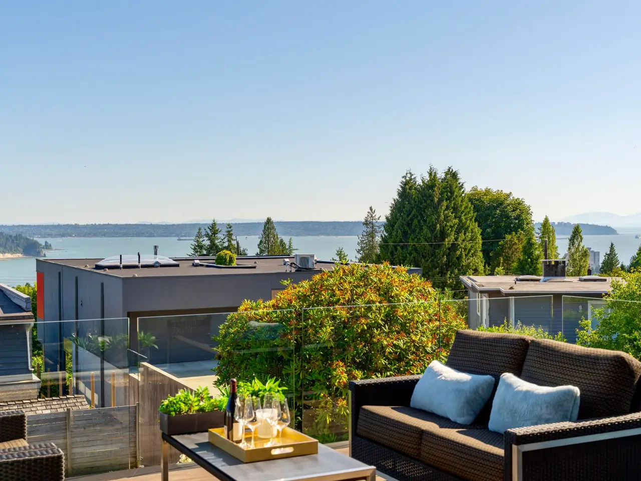 Sweeping panoramic views from Mt. Baker, Vancouver Harbour, Burrard Inlet, Strait of Georgia & Vancouver Island’s coastal mountains, an ever-changing west coast canvas from sunrise to sunset. Designed by renowned Gary Van Dijk, this modern, architecturally refined home offers open-concept living, soaring 10'-14' vaulted ceilings, expansive glazing, floating stairs &seamless indoor-outdoor flow. Primary bdrm on the main level, w/ a huge WIC & spa-like ensuite feat. oversized steam shower & Victoria+Albert soaker tub. Upper level open office can easily convert to 4th bdrm. Located in lower BP in a quiet cul-de-sac, mins to Park Royal & Mulgrave, walking distance to Sentinel Secondary, Chartwell elementary & Hollyburn; easy access to downtown & anywhere on the Shore. Meticulously maintained.