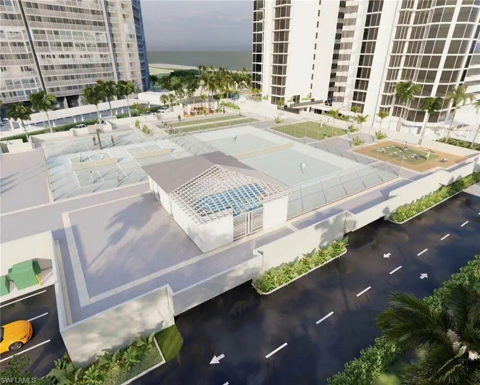 Experience Unparalleled Beachfront Luxury. Discover the ultimate coastal retreat in this stunning 10th-floor end unit at La Mer, located in the prestigious Park Shore community. This light-filled 2-bedroom, 2-bath condominium boasts breathtaking panoramic Gulf views, an open-concept design, and a seamless blend of comfort and elegance. Offered turnkey, this residence is your opportunity to embrace the beachfront lifestyle you've always dreamed of. This thoughtfully designed home features floor-to-ceiling windows and an oversized balcony, inviting natural light and endless vistas into every corner. The spacious living area is perfect for entertaining or relaxing to the sound of soothing waves. The gourmet kitchen showcases stainless steel appliances, quartz countertops, a glass backsplash, a breakfast bar, and abundant counter space for culinary creations. The luxurious master suite offers a private retreat with breathtaking views, a walk-in closet with custom cabinetry, a frameless glass shower, and a separate soaking tub. For added convenience and peace of mind, the unit is equipped with electric hurricane shutters, ensuring effortless lock-and-go living. La Mer has recently completed an impressive building renovation, elevating its appeal and offering unmatched amenities. Residents enjoy a beachfront pool and spa deck with all-day sun thanks to its south-facing orientation, a rooftop sunset deck (under renovation), a fitness center, tennis courts (under renovation), grilling stations, and a private walking path along the beach edge. Pickleball courts are coming soon, as highlighted in the stunning renovation renderings, making this property even more appealing. Unique to La Mer are its three exceptional guest suites available to residents: a luxurious rooftop suite, a comfortable hotel-style suite, and a spacious 2-bedroom guest suite perfect for hosting family and friends in style. Additional conveniences include an extra storage room conveniently located near the elevators. Nestled in the heart of Park Shore, this home is steps away from the pristine sands of the Gulf of Mexico and across the street from the fine dining and boutique shopping of Venetian Village. Enjoy proximity to cultural hotspots like Artis Naples, Waterside Shops, Mercato, and 5th Avenue South. This is your chance to secure a sought-after Park Shore address and enjoy luxurious coastal living at its finest. Move in today and savor the upcoming unveiling of La Mer's beautifully reimagined spaces.
