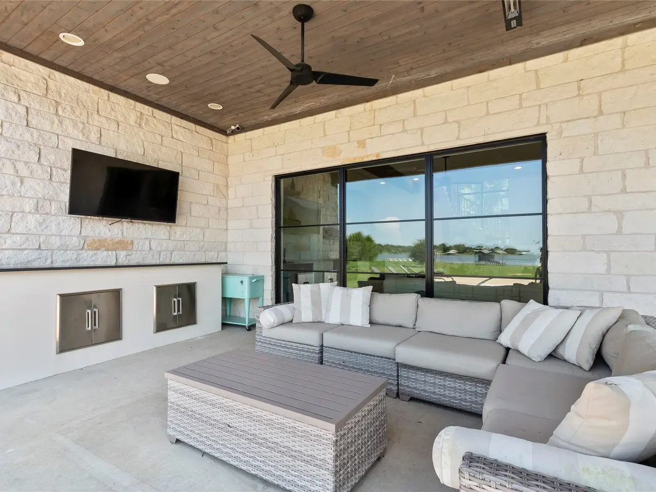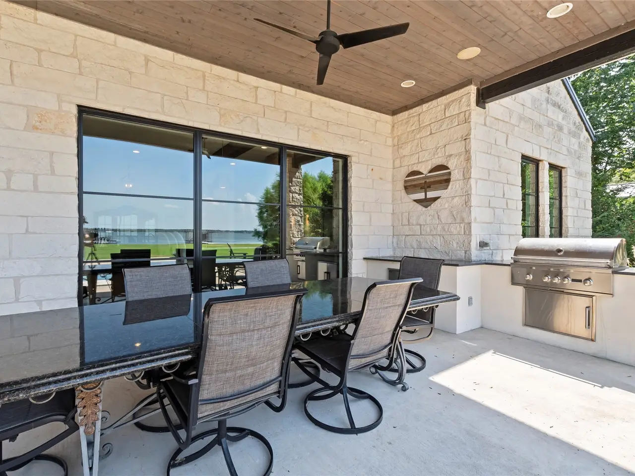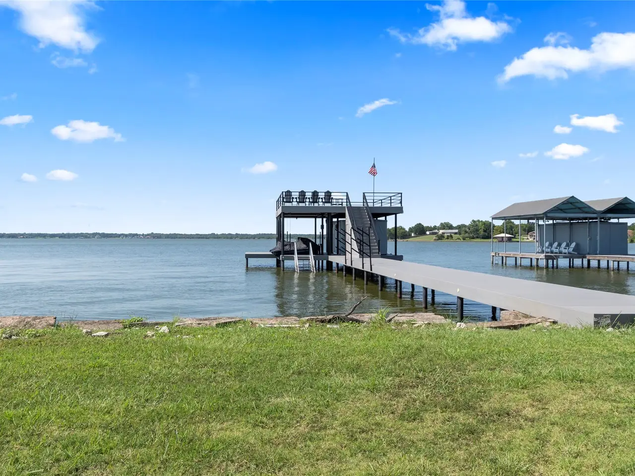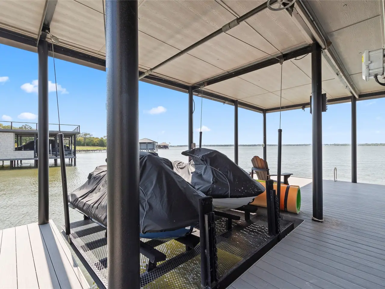 Nestled on 3.46 acres with 131 feet of open waterfront, this extraordinary estate is one of only 6 estate size homesites in the exclusive gated 505 Ranch just 45 minutes from Downtown Dallas. This premier community with 56 waterfront home sites lends lakefront luxury with ranch-style living across 505 pristine acres on the shores of Cedar Creek Lake. A long, wooded driveway leads to a striking modern lake home featuring open-concept great room flooded with natural light through tall windows that frame panoramic water views. A stone fireplace, built-ins, wood floors, and wood-beamed ceilings add warmth and character, while the state-of-the-art kitchen is a chef’s dream, featuring high-end appliances, a gas range, double ovens, and an expansive island with wine fridge and ice maker. The main level hosts two lake-view primary suites with baths along with a spacious utility room and a built-in workspace. Upstairs, the bonus room invites relaxation and entertainment with a large sectional, pool table, and wet bar equipped with a sink, fridge, and microwave. Two custom-designed bunk rooms, both with ensuite baths and water views, provide ample space for guests. Step outside to a large covered patio featuring a mounted TV, ceiling heaters, and a Coyote grill. Stunning pool with both heater and chiller, a stone firepit, and a lush lawn leads to private boathouse with composite decking, covered seating, two jet ski lifts, a boat lift and party deck. Estate size lot owners have option of keeping a horse on the property and the equestrian center. As part of 505 Ranch, residents enjoy exclusive access to over 400 acres of unmatched amenities including an equestrian center, guest cottages, polo field, pickleball courts, skeet range, hiking and ATV trails, stocked fishing ponds, a clubhouse, pool, sandy beach, and full-time ranch staff with concierge services. Whether you’re seeking a serene retreat or an active lifestyle, this rare offering delivers the best of both worlds.