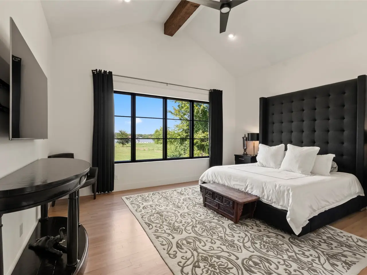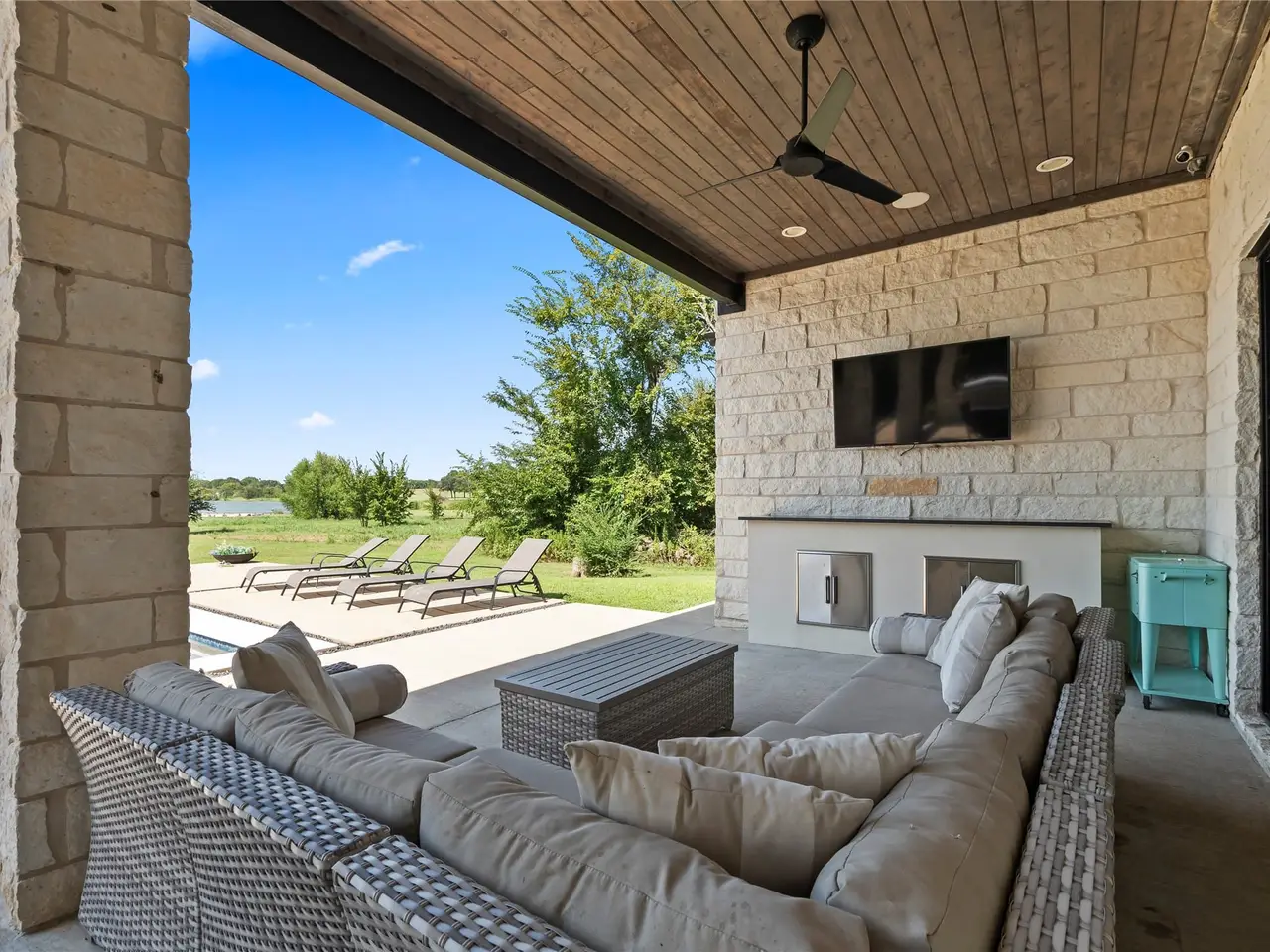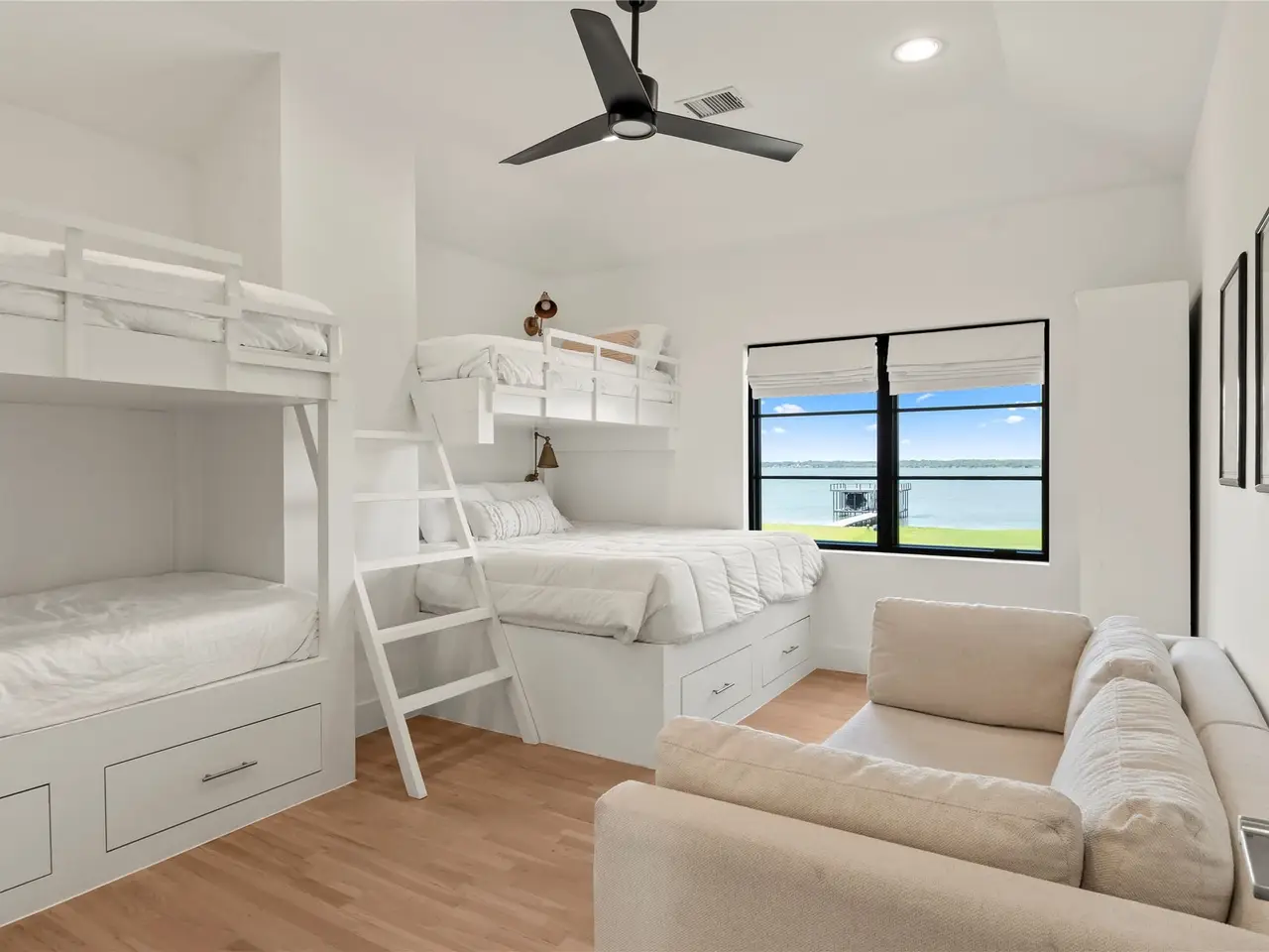 Nestled on 3.46 acres with 131 feet of open waterfront, this extraordinary estate is one of only 6 estate size homesites in the exclusive gated 505 Ranch just 45 minutes from Downtown Dallas. This premier community with 56 waterfront home sites lends lakefront luxury with ranch-style living across 505 pristine acres on the shores of Cedar Creek Lake. A long, wooded driveway leads to a striking modern lake home featuring open-concept great room flooded with natural light through tall windows that frame panoramic water views. A stone fireplace, built-ins, wood floors, and wood-beamed ceilings add warmth and character, while the state-of-the-art kitchen is a chef’s dream, featuring high-end appliances, a gas range, double ovens, and an expansive island with wine fridge and ice maker. The main level hosts two lake-view primary suites with baths along with a spacious utility room and a built-in workspace. Upstairs, the bonus room invites relaxation and entertainment with a large sectional, pool table, and wet bar equipped with a sink, fridge, and microwave. Two custom-designed bunk rooms, both with ensuite baths and water views, provide ample space for guests. Step outside to a large covered patio featuring a mounted TV, ceiling heaters, and a Coyote grill. Stunning pool with both heater and chiller, a stone firepit, and a lush lawn leads to private boathouse with composite decking, covered seating, two jet ski lifts, a boat lift and party deck. Estate size lot owners have option of keeping a horse on the property and the equestrian center. As part of 505 Ranch, residents enjoy exclusive access to over 400 acres of unmatched amenities including an equestrian center, guest cottages, polo field, pickleball courts, skeet range, hiking and ATV trails, stocked fishing ponds, a clubhouse, pool, sandy beach, and full-time ranch staff with concierge services. Whether you’re seeking a serene retreat or an active lifestyle, this rare offering delivers the best of both worlds.