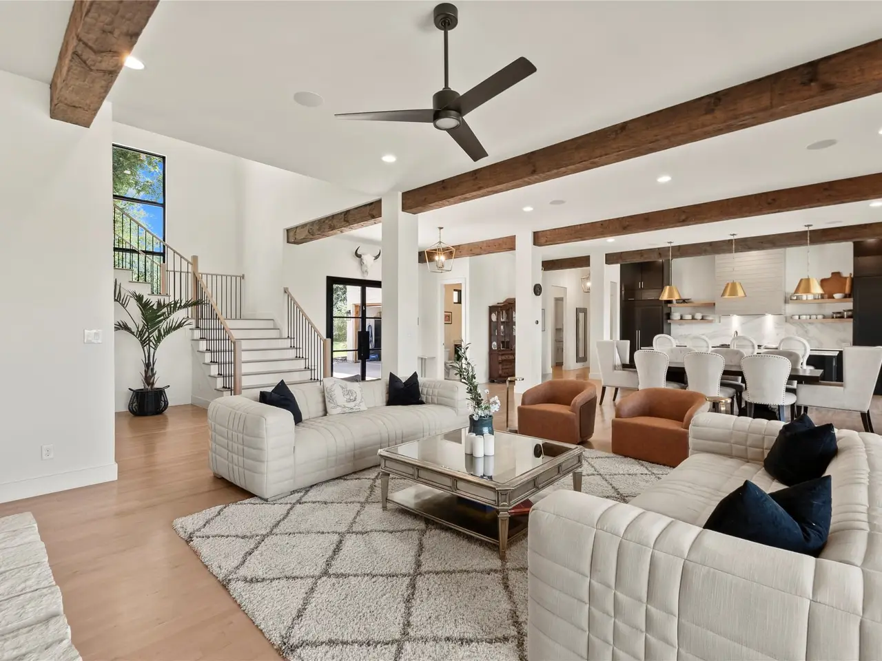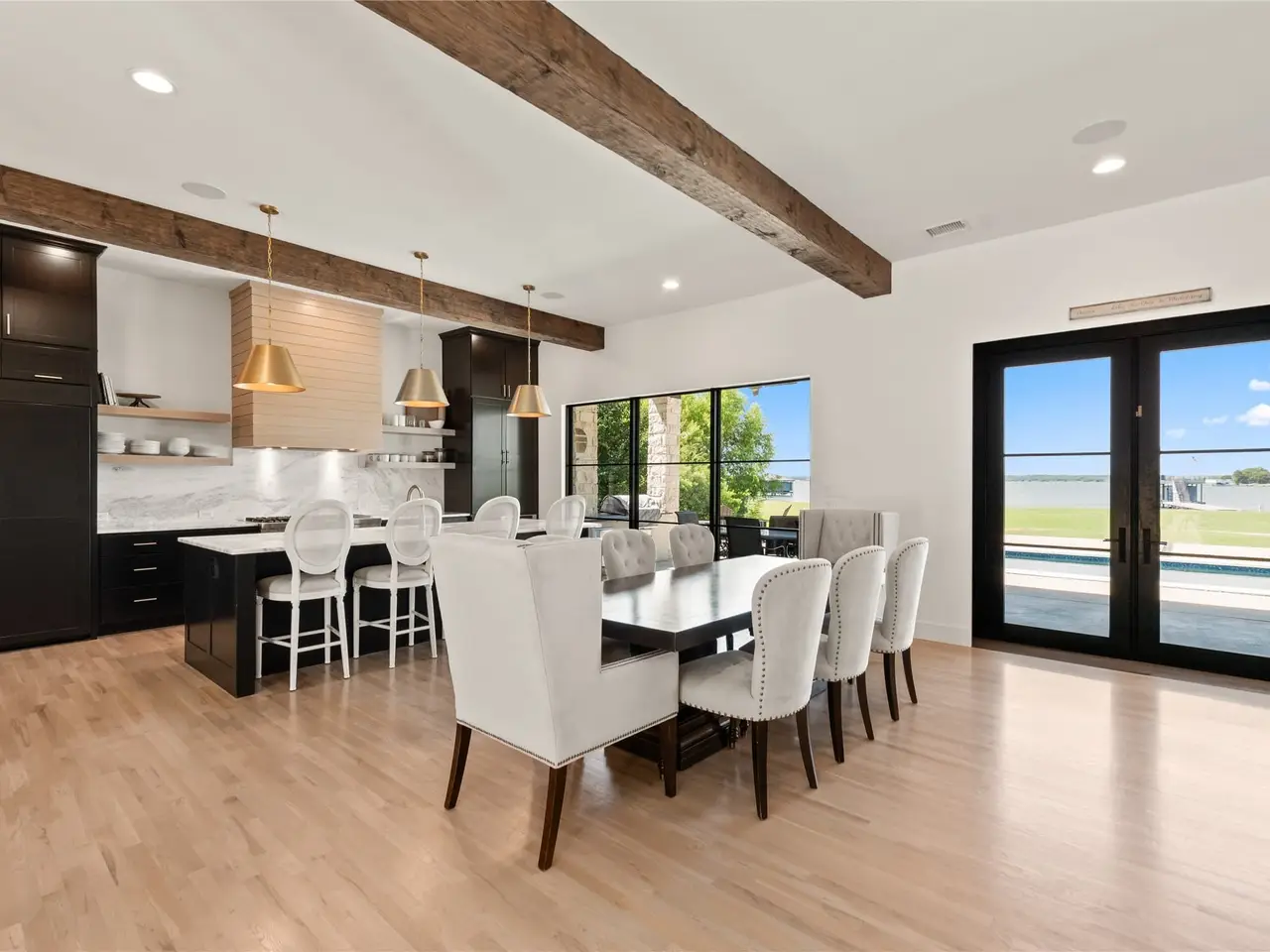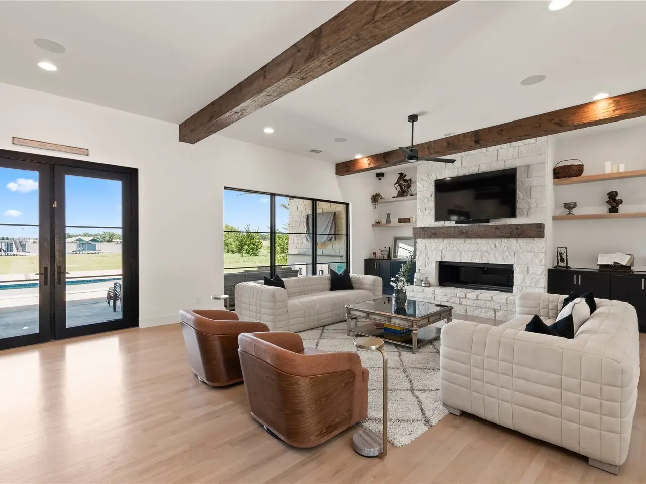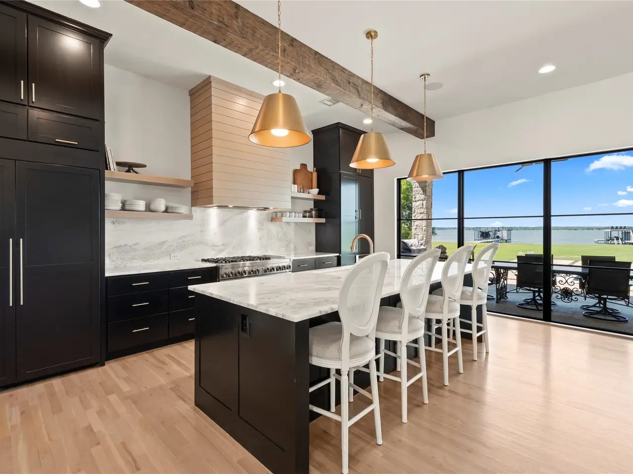 Nestled on 3.46 acres with 131 feet of open waterfront, this extraordinary estate is one of only 6 estate size homesites in the exclusive gated 505 Ranch just 45 minutes from Downtown Dallas. This premier community with 56 waterfront home sites lends lakefront luxury with ranch-style living across 505 pristine acres on the shores of Cedar Creek Lake. A long, wooded driveway leads to a striking modern lake home featuring open-concept great room flooded with natural light through tall windows that frame panoramic water views. A stone fireplace, built-ins, wood floors, and wood-beamed ceilings add warmth and character, while the state-of-the-art kitchen is a chef’s dream, featuring high-end appliances, a gas range, double ovens, and an expansive island with wine fridge and ice maker. The main level hosts two lake-view primary suites with baths along with a spacious utility room and a built-in workspace. Upstairs, the bonus room invites relaxation and entertainment with a large sectional, pool table, and wet bar equipped with a sink, fridge, and microwave. Two custom-designed bunk rooms, both with ensuite baths and water views, provide ample space for guests. Step outside to a large covered patio featuring a mounted TV, ceiling heaters, and a Coyote grill. Stunning pool with both heater and chiller, a stone firepit, and a lush lawn leads to private boathouse with composite decking, covered seating, two jet ski lifts, a boat lift and party deck. Estate size lot owners have option of keeping a horse on the property and the equestrian center. As part of 505 Ranch, residents enjoy exclusive access to over 400 acres of unmatched amenities including an equestrian center, guest cottages, polo field, pickleball courts, skeet range, hiking and ATV trails, stocked fishing ponds, a clubhouse, pool, sandy beach, and full-time ranch staff with concierge services. Whether you’re seeking a serene retreat or an active lifestyle, this rare offering delivers the best of both worlds.