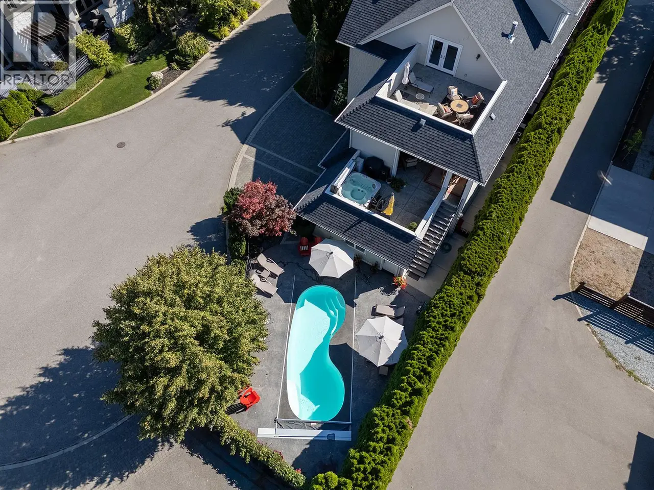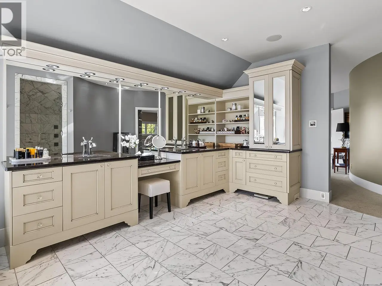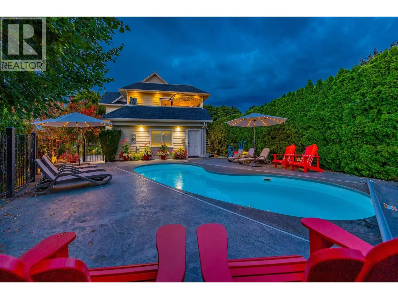 Welcome to luxury living on highly desirable Abbott Street! Combining timeless elegance with modern functionality, a spacious layout and impeccable finishes throughout. The grand double-storey foyer, embraces you with under-floor heated tile, soaring vaulted ceilings, and an abundance of natural light. An elevator, enhances accessibility and convenience. The ground level is perfect for guests or multi-generational living, featuring a private suite with kitchenette, sitting room and garden courtyard access, ideal for in-laws or Airbnb. An office, home theatre, laundry, and pool bathroom round out this level. The main floor chef’s kitchen with premium appliances and pantry, a great room with gas fireplace, two bedrooms with a shared bathroom, powder room, dining area, and a full wet bar with a dishwasher, wine and beverage fridges is an entertainer’s dream. Step outside to a stunning lounge and dining area with gas fireplace, TV, phantom screens, and hot tub. The top floor is an indulgent primary retreat with a spa-inspired marble bathroom, dressing room with laundry, private sitting area with fireplace, and a serene sun deck. Enjoy your secluded oasis with a UV pool, auto cover, and ample lounging space. A heated triple garage with additional storage completes this exquisite home. This freehold, bare land strata with private beach access has a low monthly strata $30 covering insurance for the common road. Ideally located near Pandosy Village, KGH, and the lake.