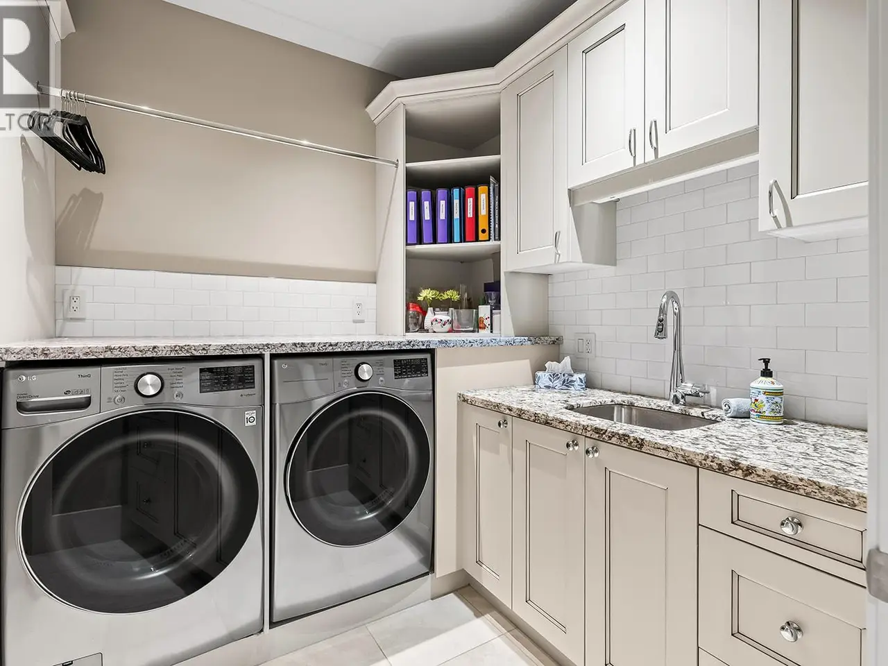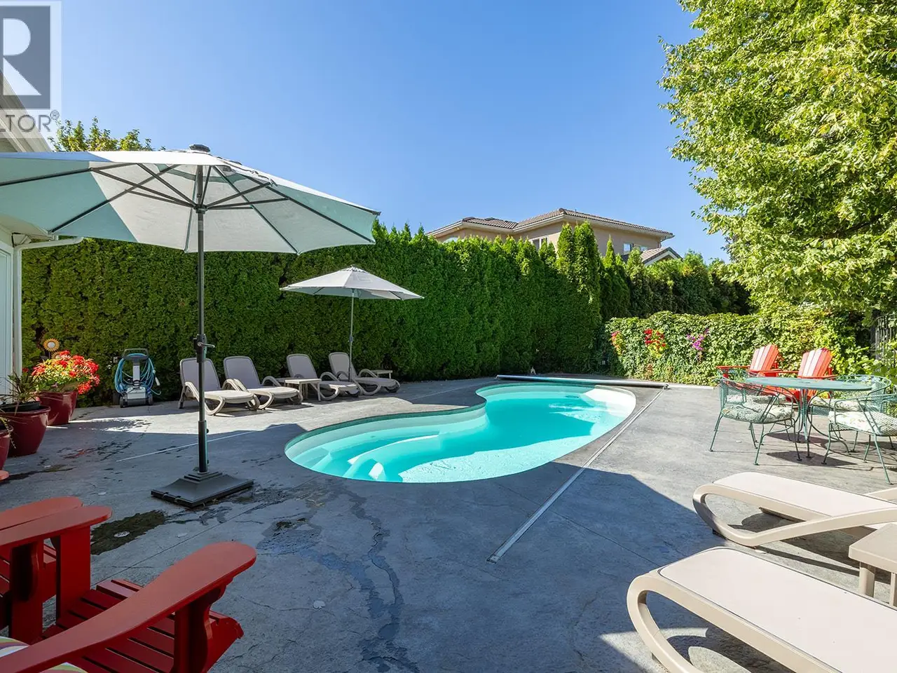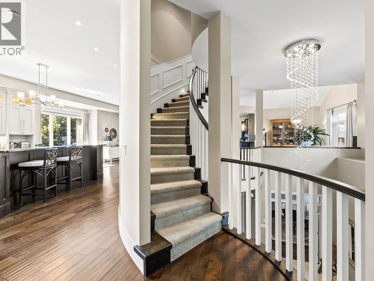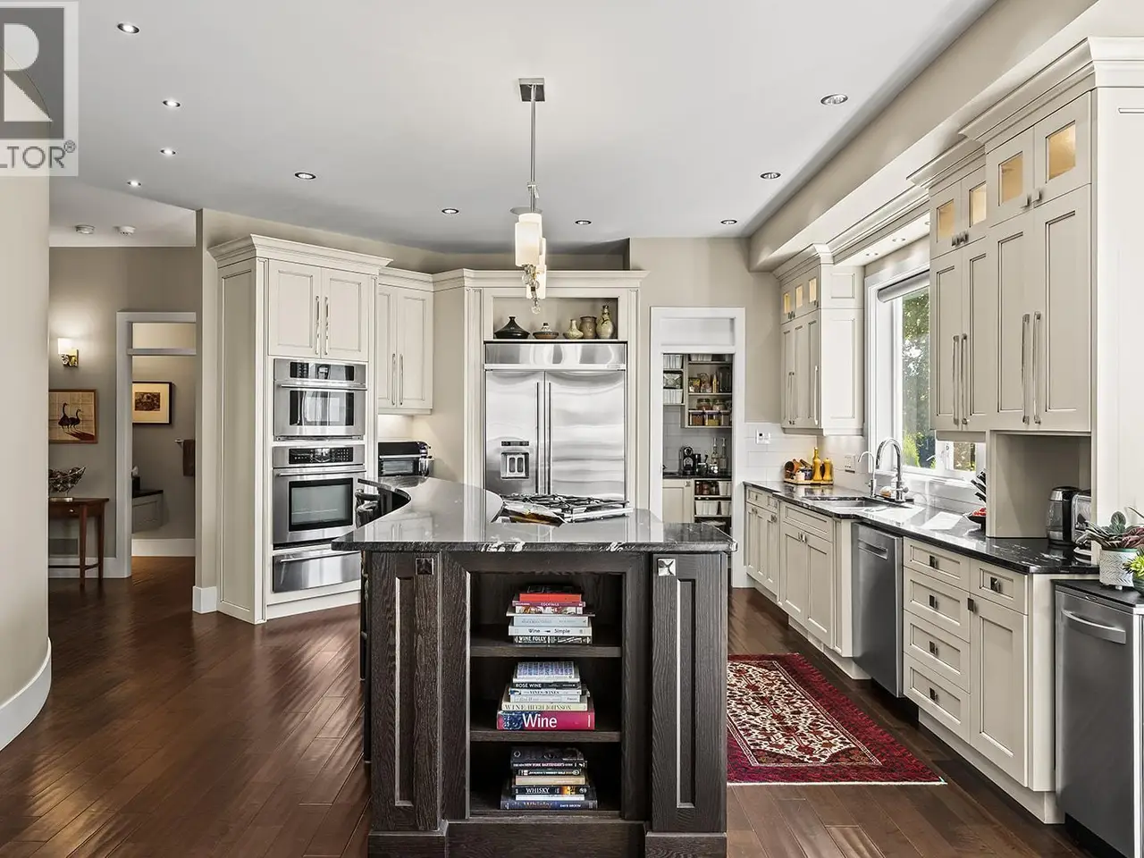 Welcome to luxury living on highly desirable Abbott Street! Combining timeless elegance with modern functionality, a spacious layout and impeccable finishes throughout. The grand double-storey foyer, embraces you with under-floor heated tile, soaring vaulted ceilings, and an abundance of natural light. An elevator, enhances accessibility and convenience. The ground level is perfect for guests or multi-generational living, featuring a private suite with kitchenette, sitting room and garden courtyard access, ideal for in-laws or Airbnb. An office, home theatre, laundry, and pool bathroom round out this level. The main floor chef’s kitchen with premium appliances and pantry, a great room with gas fireplace, two bedrooms with a shared bathroom, powder room, dining area, and a full wet bar with a dishwasher, wine and beverage fridges is an entertainer’s dream. Step outside to a stunning lounge and dining area with gas fireplace, TV, phantom screens, and hot tub. The top floor is an indulgent primary retreat with a spa-inspired marble bathroom, dressing room with laundry, private sitting area with fireplace, and a serene sun deck. Enjoy your secluded oasis with a UV pool, auto cover, and ample lounging space. A heated triple garage with additional storage completes this exquisite home. This freehold, bare land strata with private beach access has a low monthly strata $30 covering insurance for the common road. Ideally located near Pandosy Village, KGH, and the lake.