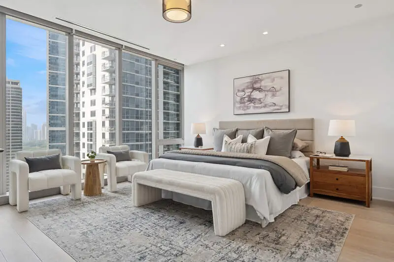Enjoy stunning, south-east facing lake and city views from this 4 bedroom, 4.1 bath, 3500 SQFT residence on the 19th floor of the St. Regis. Highlights include floor-to-ceiling windows, wide-plank hardwood flooring, and high end finishes. An open floor plan in the living space flows seamlessly and provides an ideal place to entertain. The large living space can accommodate multiple seating areas and a dining table of any size. The exquisite open kitchen features Gaggenau & Thermador appliances, Snaidero cabinetry, cantilevered countertops, and an island with breakfast bar. Thr primary suite is situated in its own "wing" of the residence, allowing for privacy, serenity, and a place to truly unwind. This exceptional space features a large bedroom with stunning views from floor-to-ceiling windows, a custom walk-in closet, and an ensuite bath with full height stone walls, oversized shower, separate jetted tub, Roburn medicine cabinets, and a double sink. On the other side of the residence, you will find three large bedrooms. The second bedroom is large enough to be a second primary suite and features a walk-in closet and an ensuite bath with double sink. The third bedroom has an ensuite bath while the fourth bedroom enjoys easy access to a full hall bath. A powder room and laundry room complete this home. One valet right to park priced separately for $45K. Residents of the St. Regis enjoy access to both the hotel's amenities as well as private condo amenities including indoor & outdoor pools, hot tub, fire pit, fitness & training rooms, private dining room, demo kitchen, private wine storage & wine tasting room, enclosed dog exercise area. Conveniently located just steps from the lakefront, Maggie Daly Park, dog parks, the riverfront, world-class dining and shopping, entertainment, and transportation options. Lake Shore East has the feel of a gated community in the heart of the city. Welcome home!