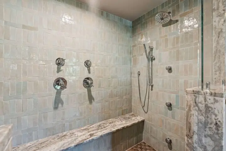 • Custom zellige-tiled shower