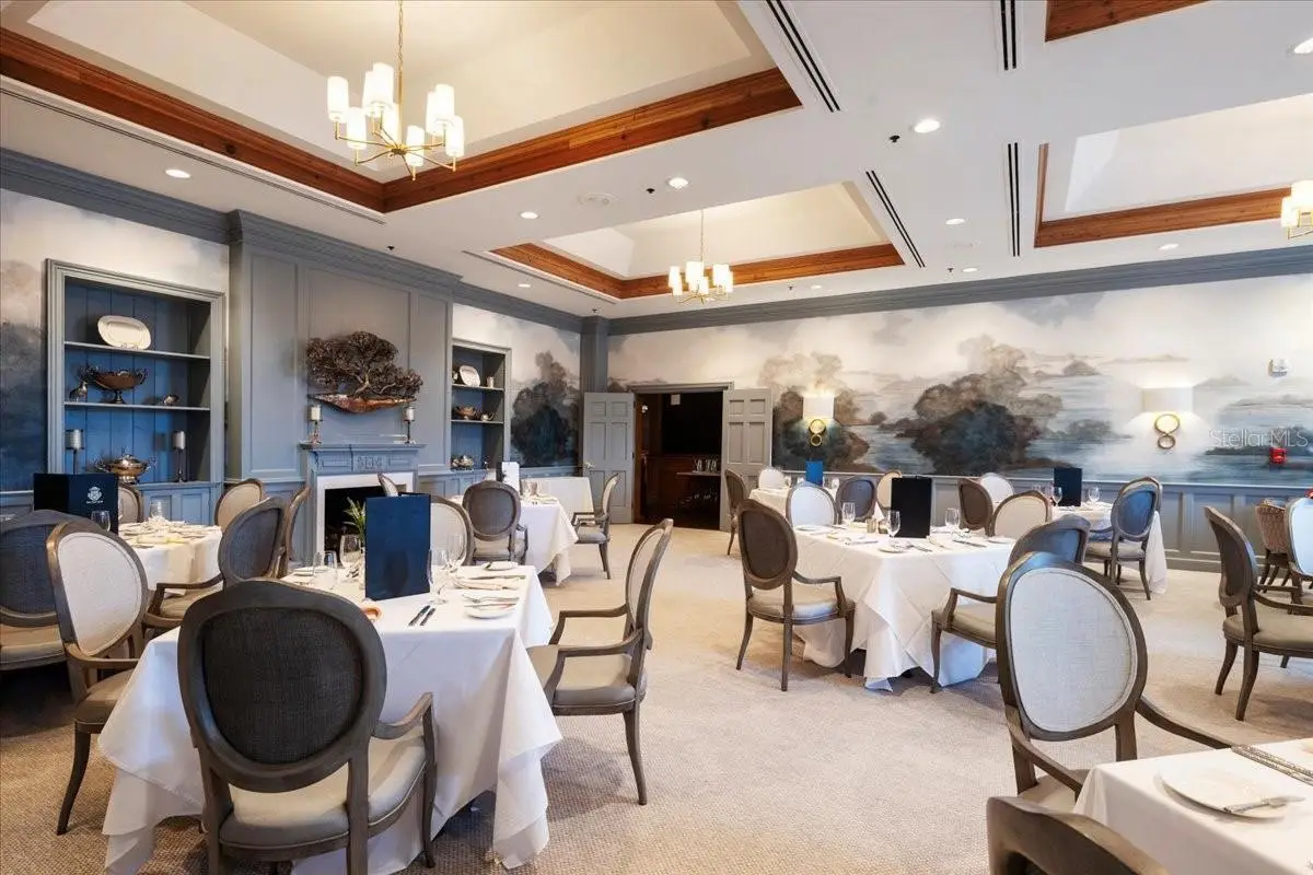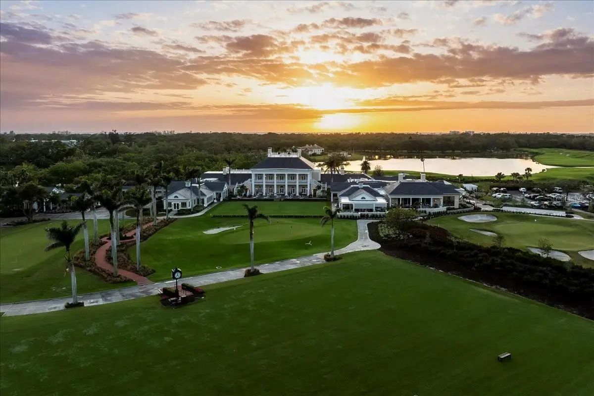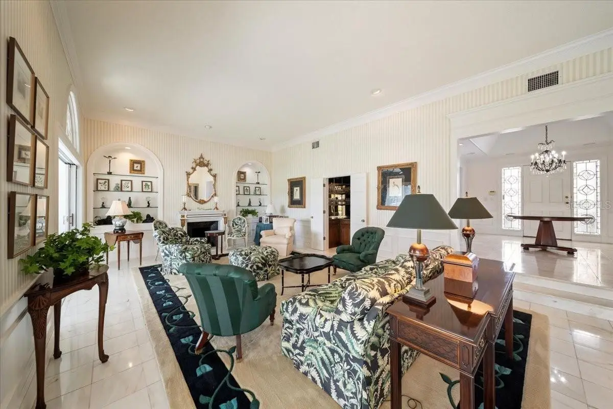 Tucked away in a quiet cul-de-sac on a double lot beneath majestic oaks, this almost 5,000 sq ft, timeless 2-story home blends sophistication with modern comfort. Situated on the first hole of Heron Golf Course, the home features soaring 11-ft ceilings, marble floors, and crystal chandeliers. A Louis XVI fireplace anchors the sunken living room, while French doors and expansive windows invite sunlight into the sunroom with breathtaking golf course views leading to three patios perfect for entertaining or relaxation. A brick path winds through lush gardens to the adjacent guest house. This nearly 2,000 sq ft guest house features 2 bedrooms, 2 en-suite bathrooms, a spacious living room, dining room, an outdoor kitchen, and a private laundry room. Overlooking the pool and spa, this guest retreat offers privacy and convenience, ideal for extended stays, visiting family, or in-law suite. The Oaks club amenities include 2 18-hole championship courses, and world-class tennis and pickleball facility. Located near Casey Key and the powdery white sands of Siesta Key. Enjoy the arts in Downtown Sarasota and shopping at St. Armands Circle; approximately a 20 minute drive. Membership at The Oaks is required.