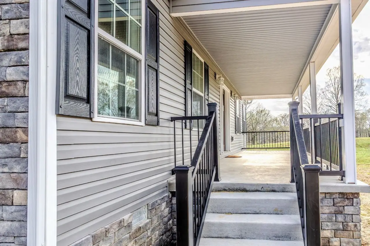 • Vinyl siding with stone trim