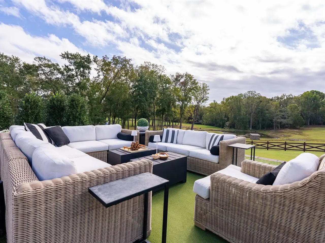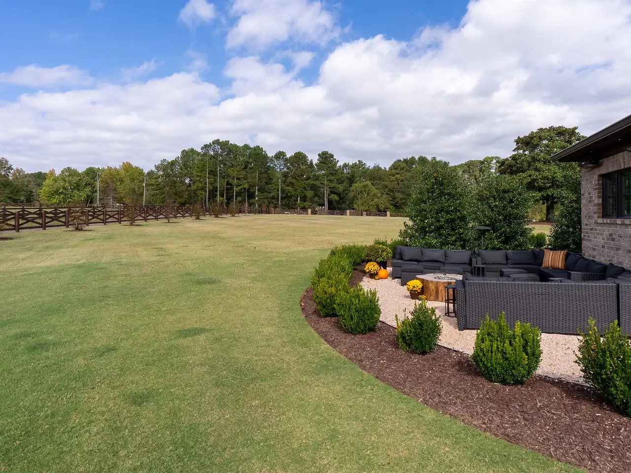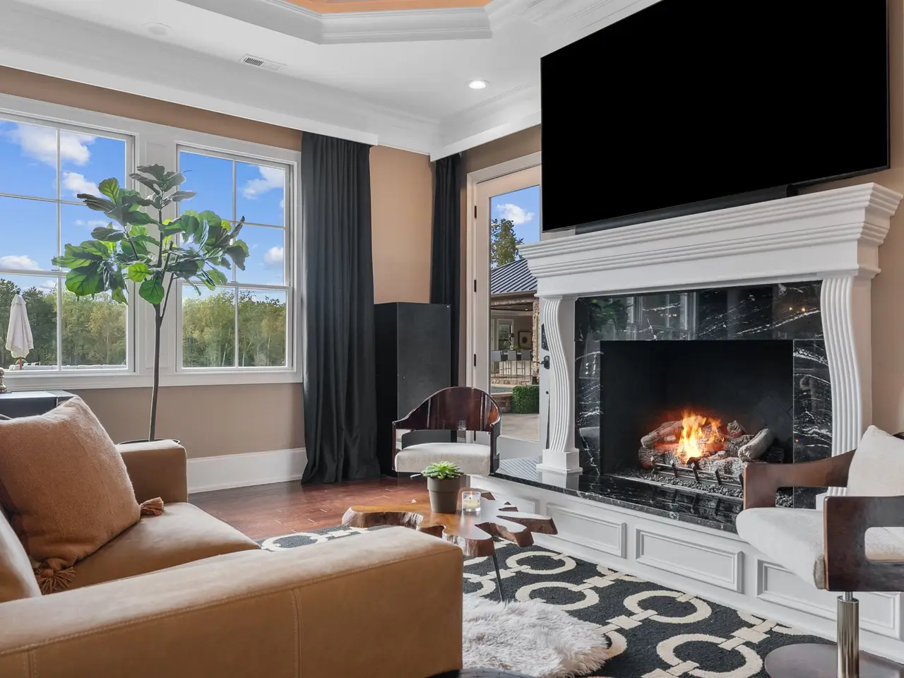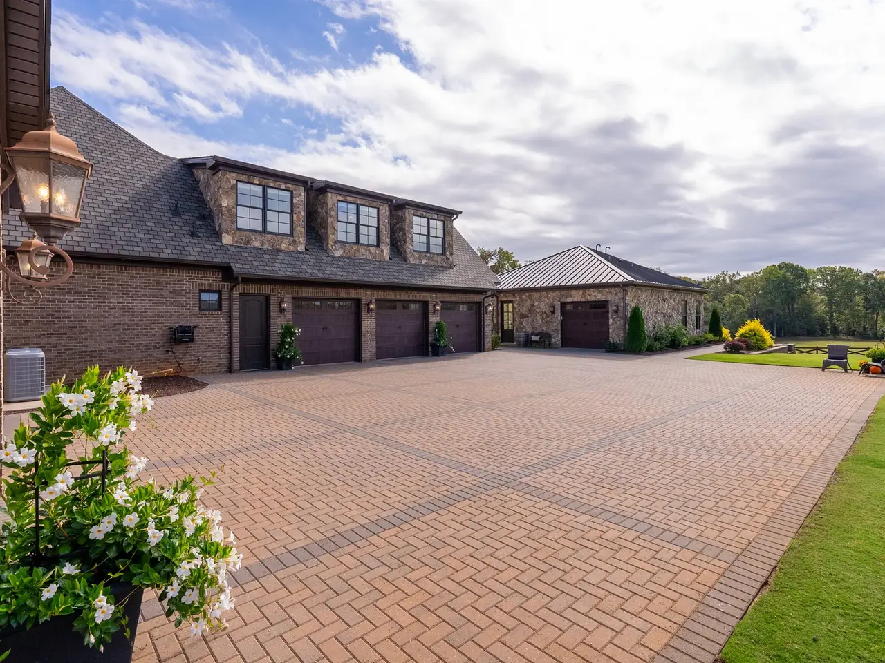 Imagine more than ten acres of pristine, perfectly curated land with an extraordinary home designed for entertaining at every level. Agape Acres Estate is tucked behind private gates, down a tree-lined paver driveway where a graceful fountain welcomes you home. This grand estate feels worlds away from everything, yet remains perfectly positioned close to all modern amenities in Simpsonville, SC. While every corner holds its own charm, the backyard truly steals the show- breathtaking, functional, and unforgettable. A sparkling saltwater pool with a spillover spa glistens beneath the Carolina blue sky, with a nearby putting green ready for friendly poolside competitions. An expansive covered porch spans the width of the home, featuring an outdoor living room, wood-burning fireplace, and full kitchen/grilling area. This space can be fully enclosed and climate-controlled for year-round comfort. Perfect for hosting holiday gatherings that flow effortlessly from indoors to the outdoor fireplace. Enjoy your morning coffee as the mist rises off the pond or unwind fireside beneath the stars. From game days to quiet nights, all the outdoor space has been intentionally designed for every South Carolina season. The pool house feels like a private resort suite, luxurious, stylish, and perfectly situated in the Carolina countryside. Inside, you'll find a hotel-inspired bedroom with ensuite luxury bath overlooking the lush backyard, an additional full guest bath, laundry area, and an attached garage with extensive storage. The poolside kitchen features a large hibachi grill ideal for brunches or alfresco dinners, and like the main porch, this entire area can be fully enclosed, and temperature controlled. These are the spaces where good food and laughter linger long after the plates are cleared. The land itself invites exploration, whether by four-wheeler or alongside a few barnyard friends. Horses or goats would feel right at home here, grazing by the pond stocked with Large Mouth Bass and Bream. The perfect spot for a quiet afternoon of fishing. Roughly four acres are fully fenced, offering a sense of peace, privacy, and panoramic views at every turn. Inside, the same sense of warmth and refinement continues. Rich hardwoods and elegant tile run throughout, with no carpet in sight. The great room, anchored by a grand fireplace and custom built-ins, flows seamlessly into the chef's kitchen, breakfast area, and elegant dining room. The formal dining space feels both sophisticated and inviting, complete with an adjoining bar that turns dinner parties into lasting memories. Imagine hosting the upcoming holidays in this elegant yet comfortable setting. The main-level primary bedroom suite is a serene retreat with a showstopper gas-log fireplace, sitting area, and two custom closets with washer/dryer area. It has the most amazing view of the backyard/pool. Two additional bedrooms with full ensuite baths, an elegant office or sitting room with a gas fireplace, and a home theater room with a wet bar/kitchenette for movie nights are all located on the main level. You'll also find two conveniently placed powder rooms and a spacious walk-in laundry room on this floor. Head to the second level to find two additional ensuite bedrooms, each with beautifully custom-tiled baths, along with an extra office, and a spacious recreation/living area featuring a well-appointed kitchenette. This home is ideal for multi-generational living or hosting long-term guests. With over ten acres of land, there's enough room to add future home sites or additional amenities. Every detail of this grand estate has been carefully curated, from the custom ceiling designs and designer lighting, to the fully finished, epoxy-coated five-car garage. Every closet custom, and every space designed to showcase exceptional craftsmanship. This is a home that seamlessly blends indoor and outdoor living spaces together. You will certainly have a hard time choosing your favorite spot.