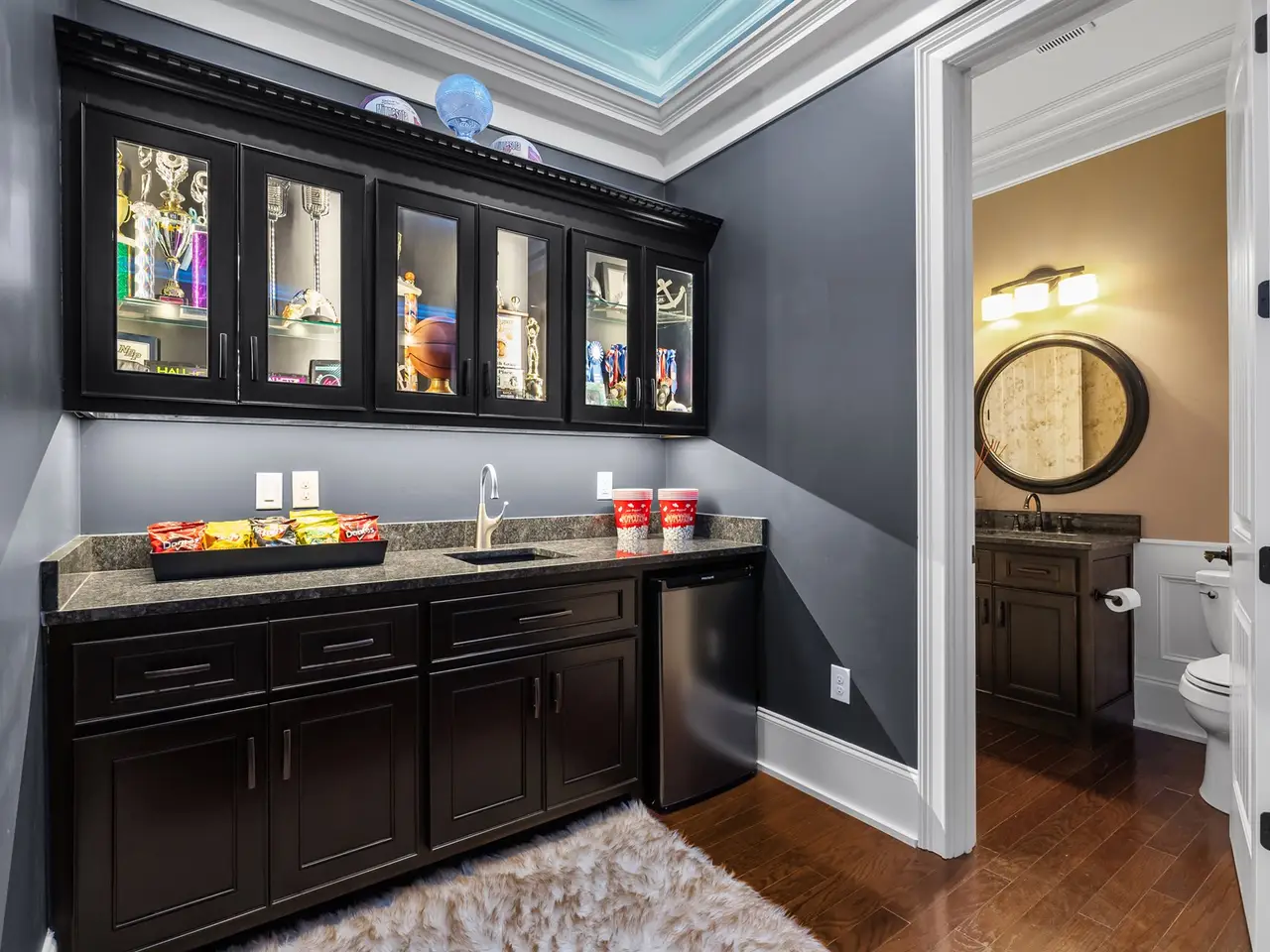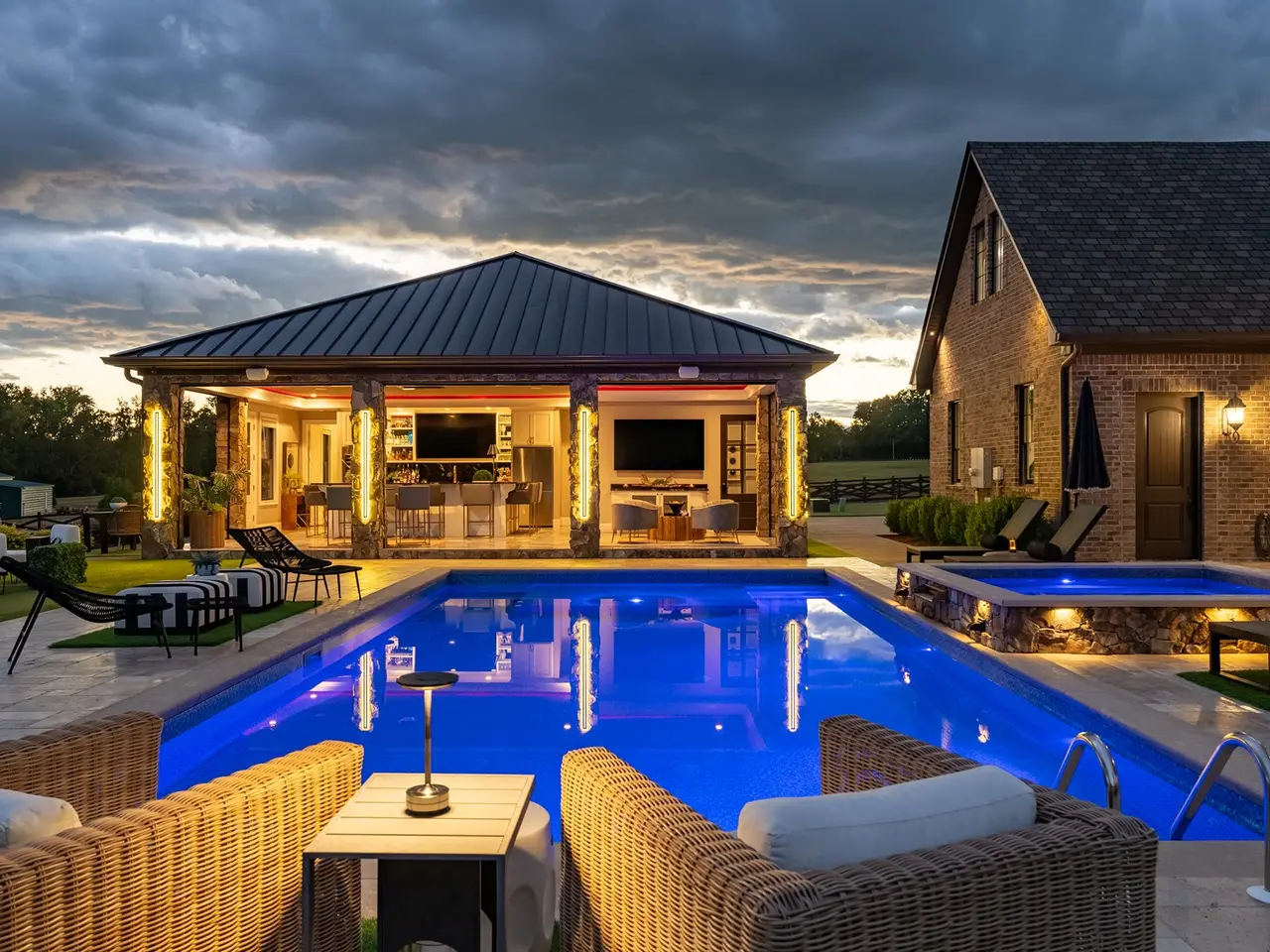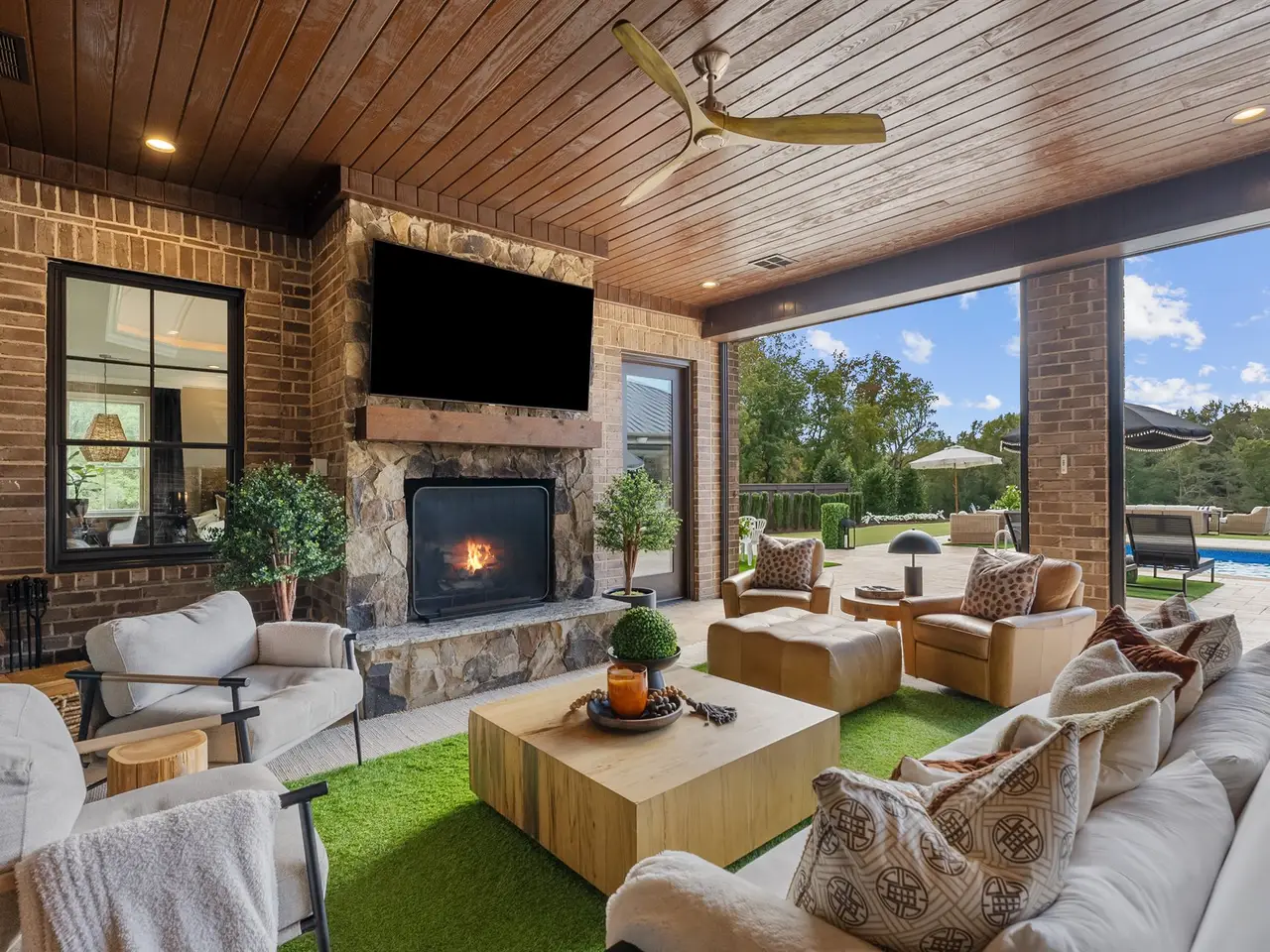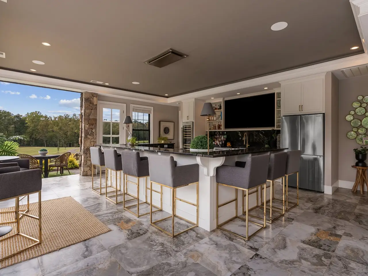 Imagine more than ten acres of pristine, perfectly curated land with an extraordinary home designed for entertaining at every level. Agape Acres Estate is tucked behind private gates, down a tree-lined paver driveway where a graceful fountain welcomes you home. This grand estate feels worlds away from everything, yet remains perfectly positioned close to all modern amenities in Simpsonville, SC. While every corner holds its own charm, the backyard truly steals the show- breathtaking, functional, and unforgettable. A sparkling saltwater pool with a spillover spa glistens beneath the Carolina blue sky, with a nearby putting green ready for friendly poolside competitions. An expansive covered porch spans the width of the home, featuring an outdoor living room, wood-burning fireplace, and full kitchen/grilling area. This space can be fully enclosed and climate-controlled for year-round comfort. Perfect for hosting holiday gatherings that flow effortlessly from indoors to the outdoor fireplace. Enjoy your morning coffee as the mist rises off the pond or unwind fireside beneath the stars. From game days to quiet nights, all the outdoor space has been intentionally designed for every South Carolina season. The pool house feels like a private resort suite, luxurious, stylish, and perfectly situated in the Carolina countryside. Inside, you'll find a hotel-inspired bedroom with ensuite luxury bath overlooking the lush backyard, an additional full guest bath, laundry area, and an attached garage with extensive storage. The poolside kitchen features a large hibachi grill ideal for brunches or alfresco dinners, and like the main porch, this entire area can be fully enclosed, and temperature controlled. These are the spaces where good food and laughter linger long after the plates are cleared. The land itself invites exploration, whether by four-wheeler or alongside a few barnyard friends. Horses or goats would feel right at home here, grazing by the pond stocked with Large Mouth Bass and Bream. The perfect spot for a quiet afternoon of fishing. Roughly four acres are fully fenced, offering a sense of peace, privacy, and panoramic views at every turn. Inside, the same sense of warmth and refinement continues. Rich hardwoods and elegant tile run throughout, with no carpet in sight. The great room, anchored by a grand fireplace and custom built-ins, flows seamlessly into the chef's kitchen, breakfast area, and elegant dining room. The formal dining space feels both sophisticated and inviting, complete with an adjoining bar that turns dinner parties into lasting memories. Imagine hosting the upcoming holidays in this elegant yet comfortable setting. The main-level primary bedroom suite is a serene retreat with a showstopper gas-log fireplace, sitting area, and two custom closets with washer/dryer area. It has the most amazing view of the backyard/pool. Two additional bedrooms with full ensuite baths, an elegant office or sitting room with a gas fireplace, and a home theater room with a wet bar/kitchenette for movie nights are all located on the main level. You'll also find two conveniently placed powder rooms and a spacious walk-in laundry room on this floor. Head to the second level to find two additional ensuite bedrooms, each with beautifully custom-tiled baths, along with an extra office, and a spacious recreation/living area featuring a well-appointed kitchenette. This home is ideal for multi-generational living or hosting long-term guests. With over ten acres of land, there's enough room to add future home sites or additional amenities. Every detail of this grand estate has been carefully curated, from the custom ceiling designs and designer lighting, to the fully finished, epoxy-coated five-car garage. Every closet custom, and every space designed to showcase exceptional craftsmanship. This is a home that seamlessly blends indoor and outdoor living spaces together. You will certainly have a hard time choosing your favorite spot.
