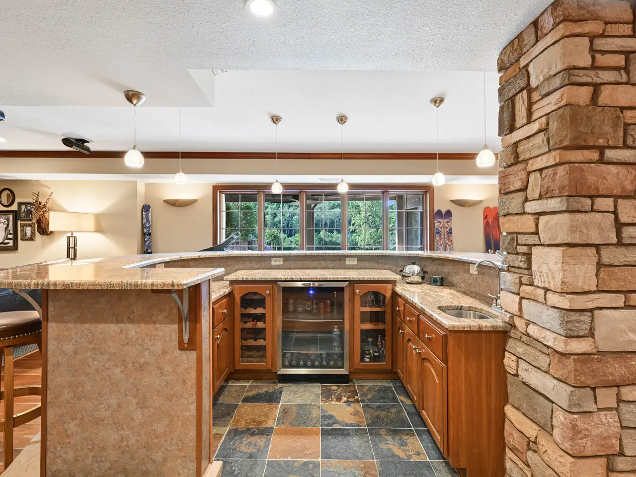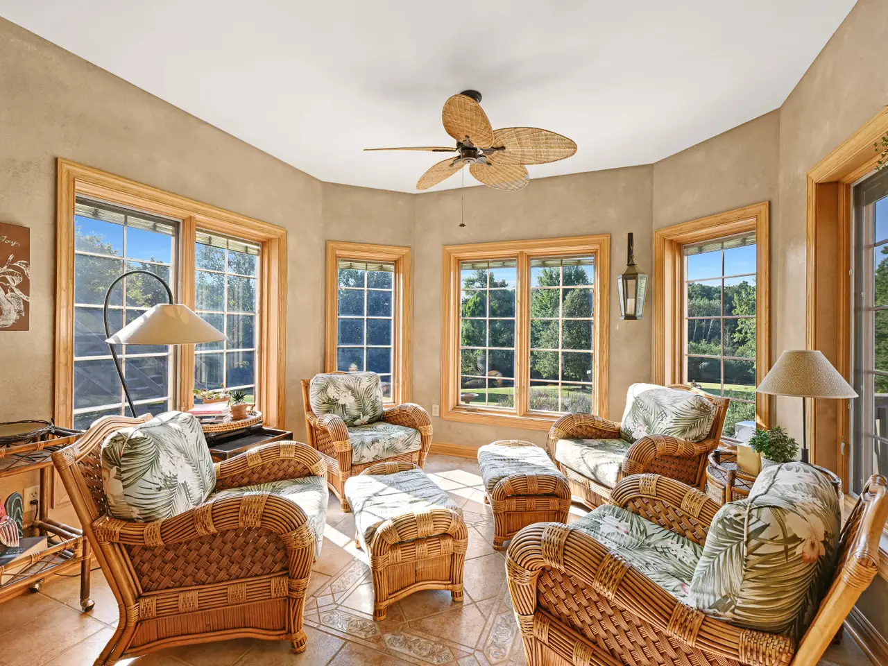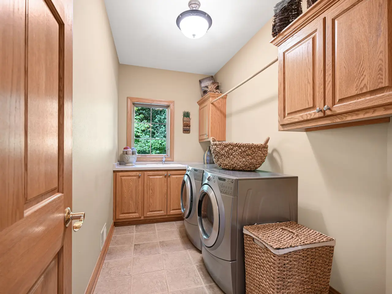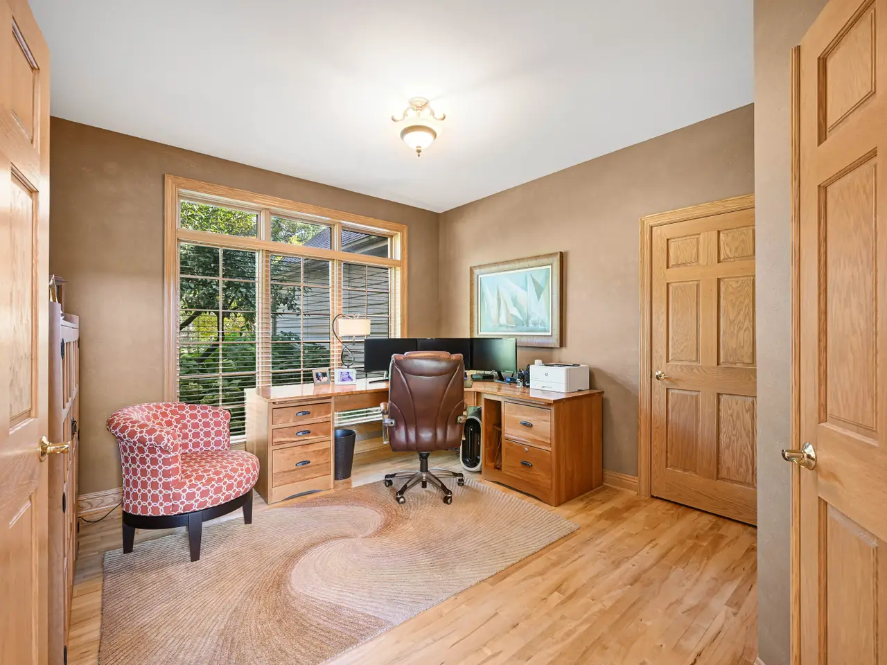 Secluded Executive Walk-Out Ranch. Tucked away on a quiet cul-de-sac, this stunning 3-bedroom, 3.5-bath executive walk-out ranch offers luxurious living space on a serene, park-like 1.9-acre wooded and fenced lot. Designed with quality in mind, this home combines privacy, elegance, and functionality. The open-concept great room features a wall of windows that flood the space with natural light and seamlessly connects to the formal dining area, sunroom, and chef's kitchen. The gourmet kitchen is a dream, complete with a large breakfast bar, cherry wood cabinetry, granite countertops, a professional-grade Viking stove, and a Sub-Zero refrigerator - perfect for entertaining or everyday living. 3.5-car heated garage includes a built-in dog wash and direct stair access to the lower level. The fully finished walk-out lower level is ideal for multigenerational living or in-law accommodations, featuring a bedroom, full tiled bath, large family room, and rec room - all finished with the same high-quality craftsmanship as the main level.