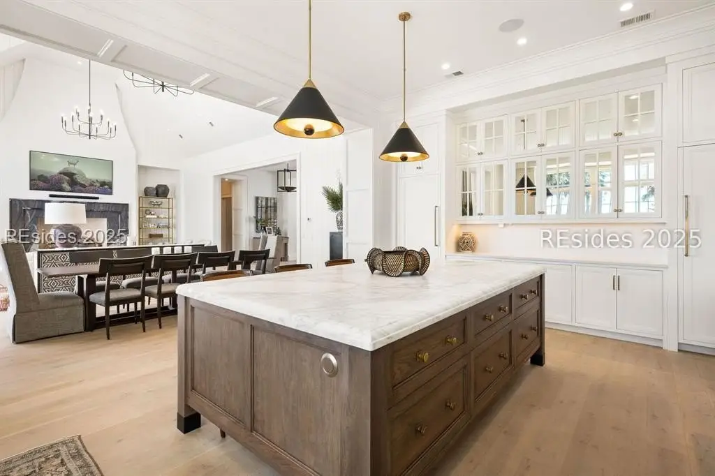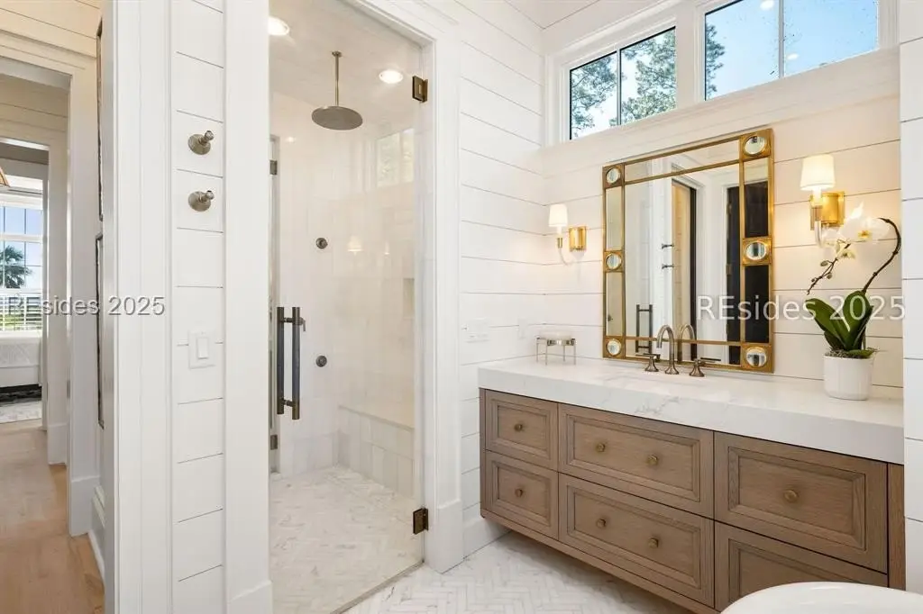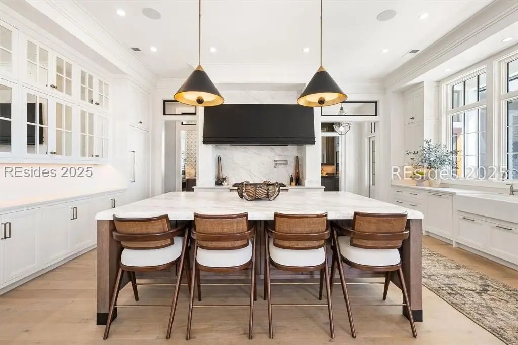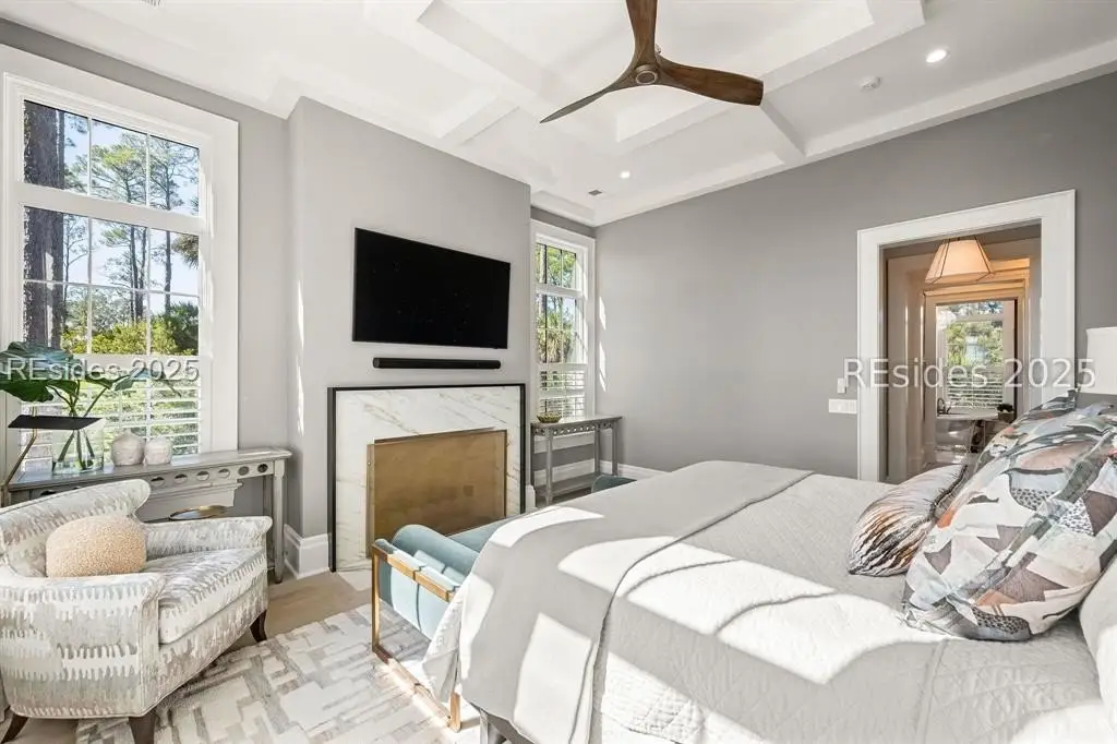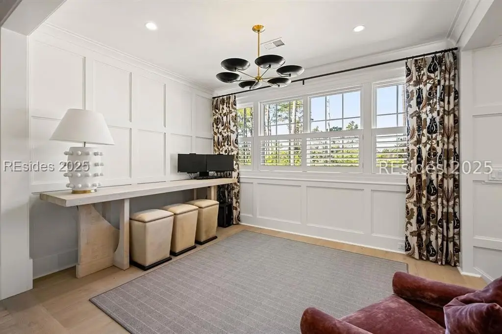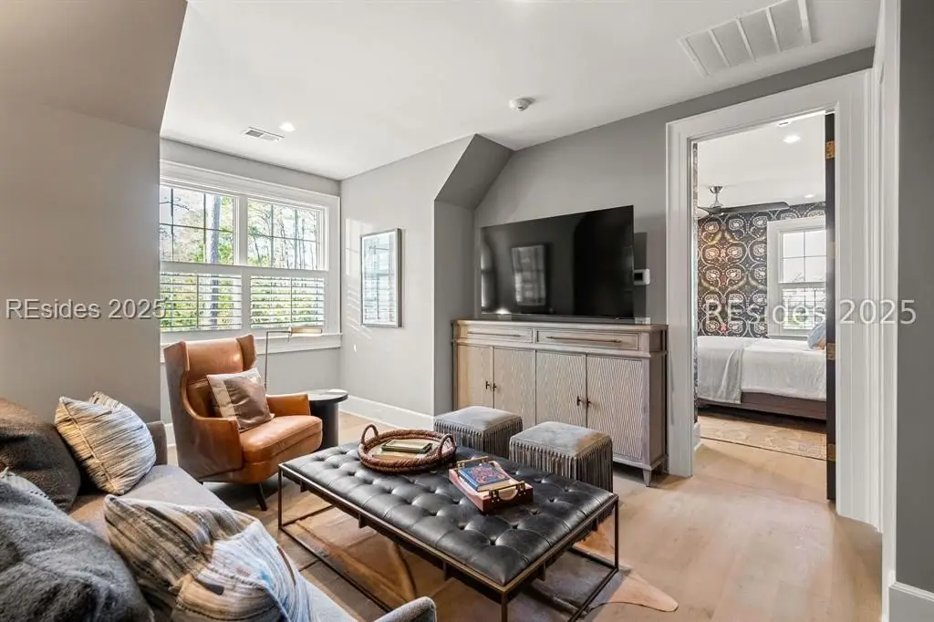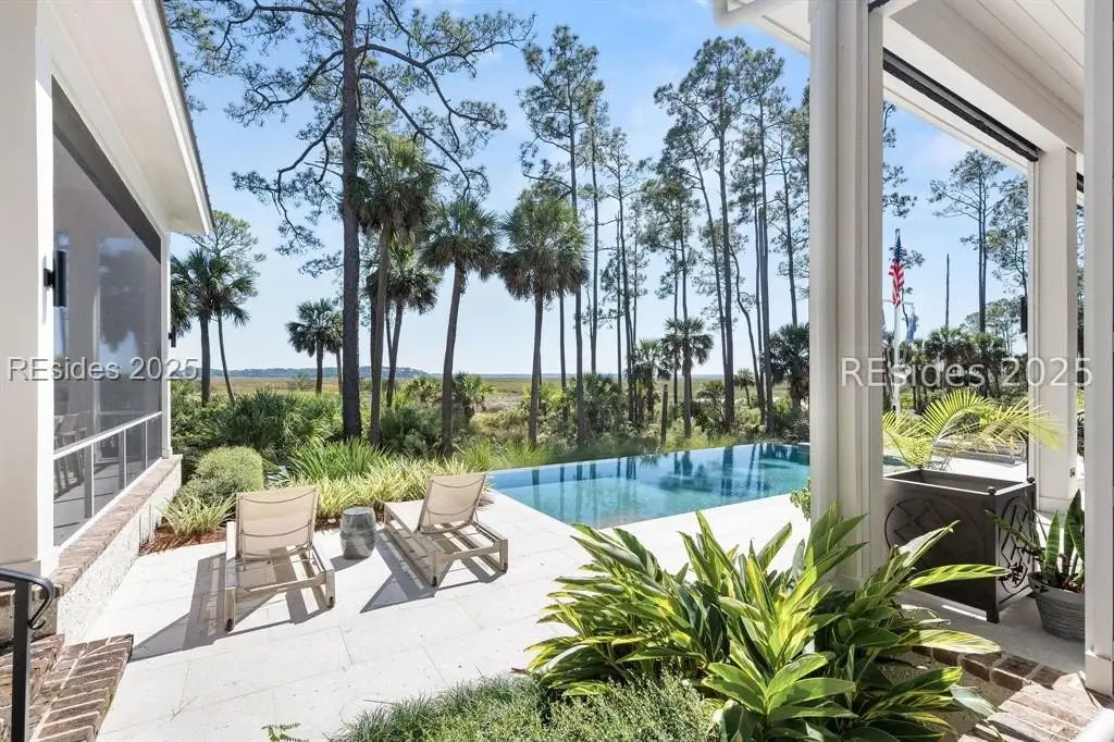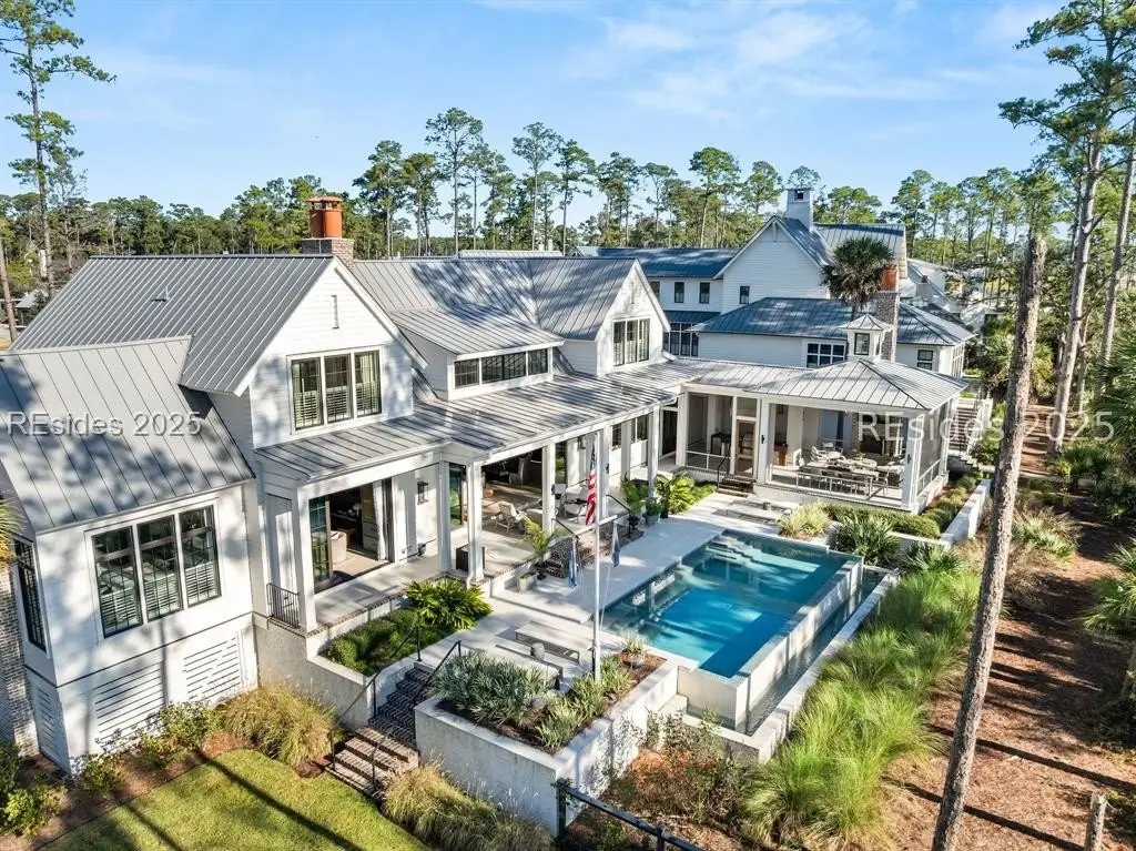 Welcome to 307 Davies Road-a waterfront oasis nestled in Moreland Village with 180-degree river and marsh views! The expansive downstairs features a grand living space that opens to a large back porch with automatic screens, allowing for ideal indoor and outdoor living. The kitchen is every chef's dream with an oversized island and Wolf and Sub-Zero appliances, a full back kitchen and separate bar with large wine refrigerator and beverage drawers. Don't miss the dog room with dog shower, the custom lockers at the back door entrance, the elevator, the wine cellar and the unbelievable storage. But there is more! The main level also includes a sprawling primary suite with fireplace, large main level laundry, and two separate offices offering privacy for work-from-home life. Amazing guest space can be found upstairs with additional living areas, three ensuite bedrooms and a laundry room. In addition, an attached guest suite over the garage includes a large bedroom, bunk area, living space and kitchenette. Friends and family will have ample privacy to relax and enjoy life on the Bluff. Outside, everyone will enjoy a true backyard oasis complete with large screened in porch with outdoor kitchen, fireplace, TV, living and dining space and full bathroom, plus an oversized infinity pool, large greenspace for playing, marsh front firepit, Adirondacks and hammock, not to mention a private path to the water that allows for the ultimate in Lowcountry living. Peaceful and serene, yet close to all the amenities that Palmetto Bluff has to offer, this home has it all! **Tier 1 Golf Membership available with this home.**