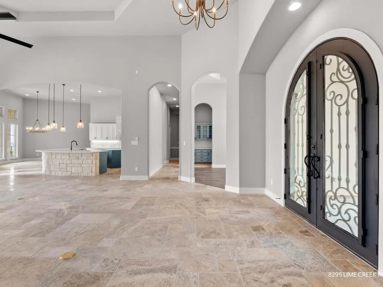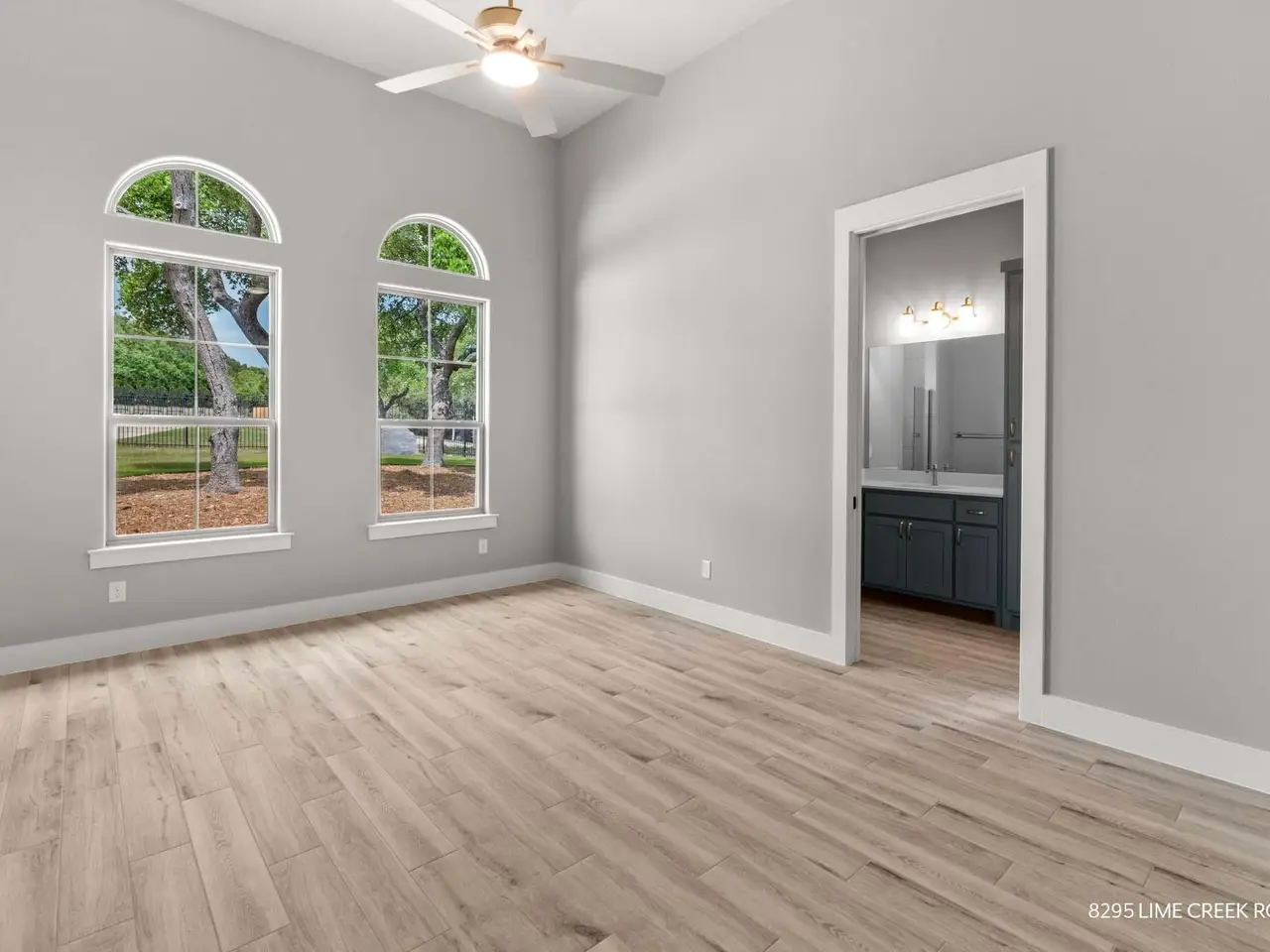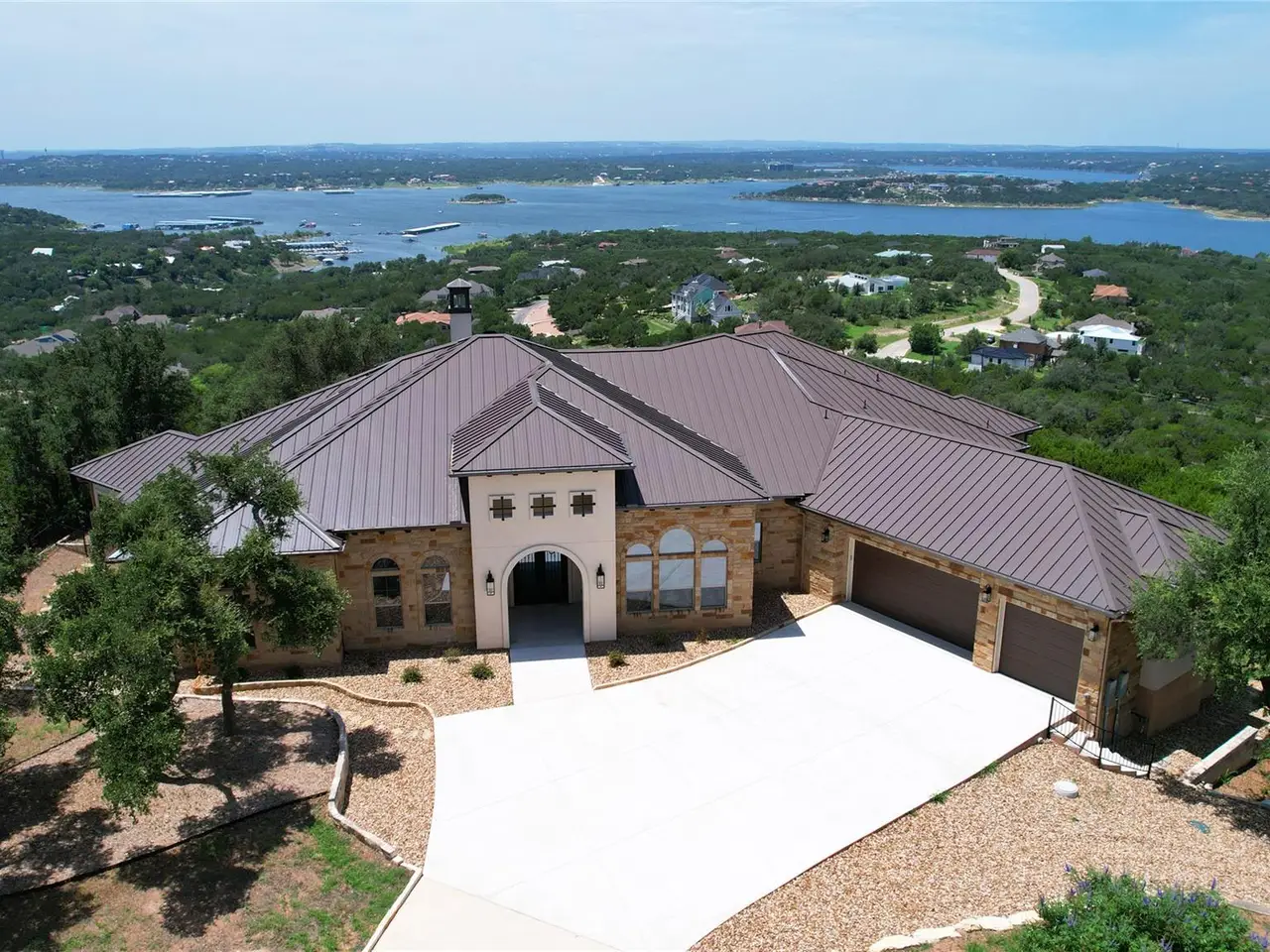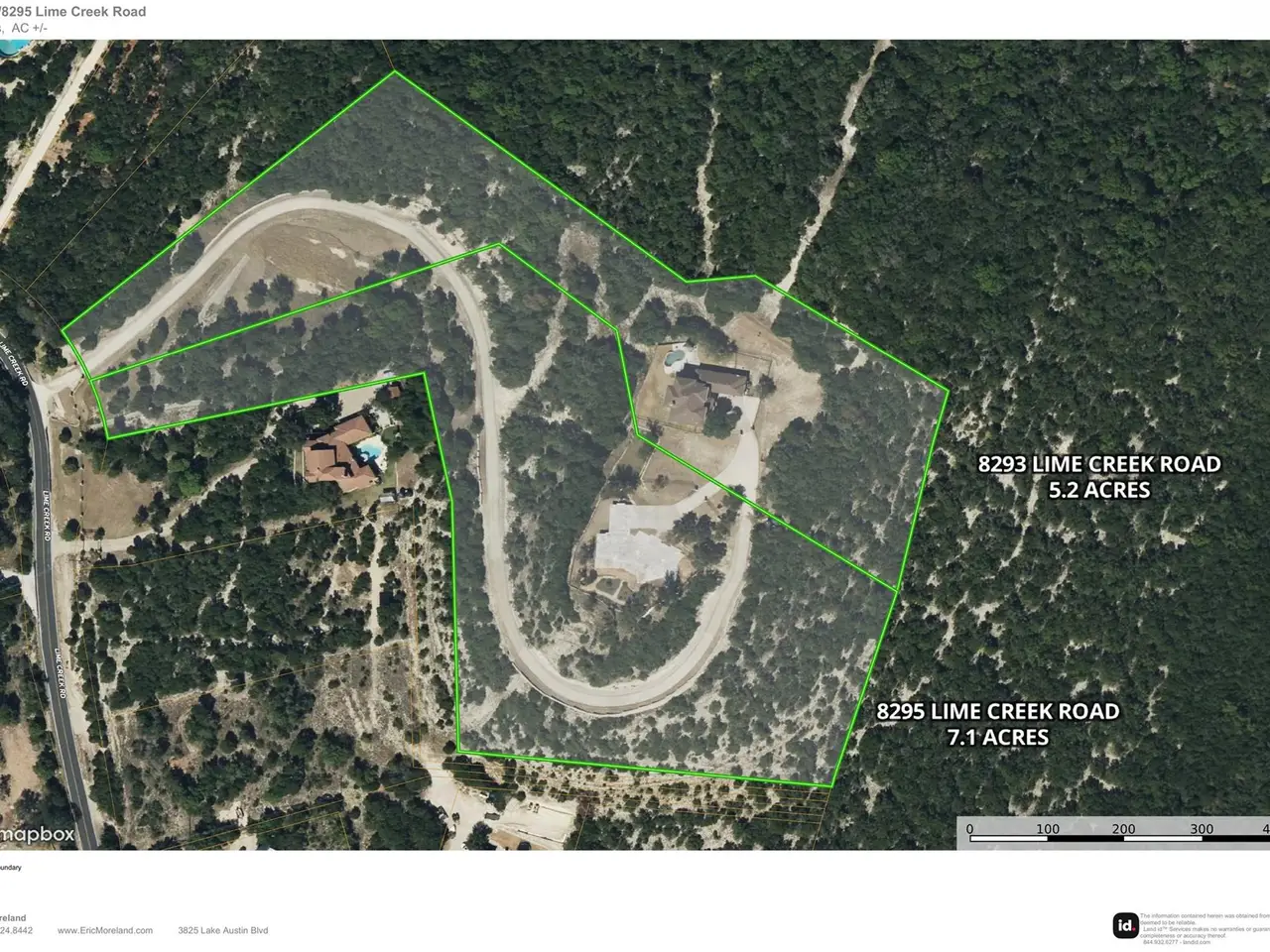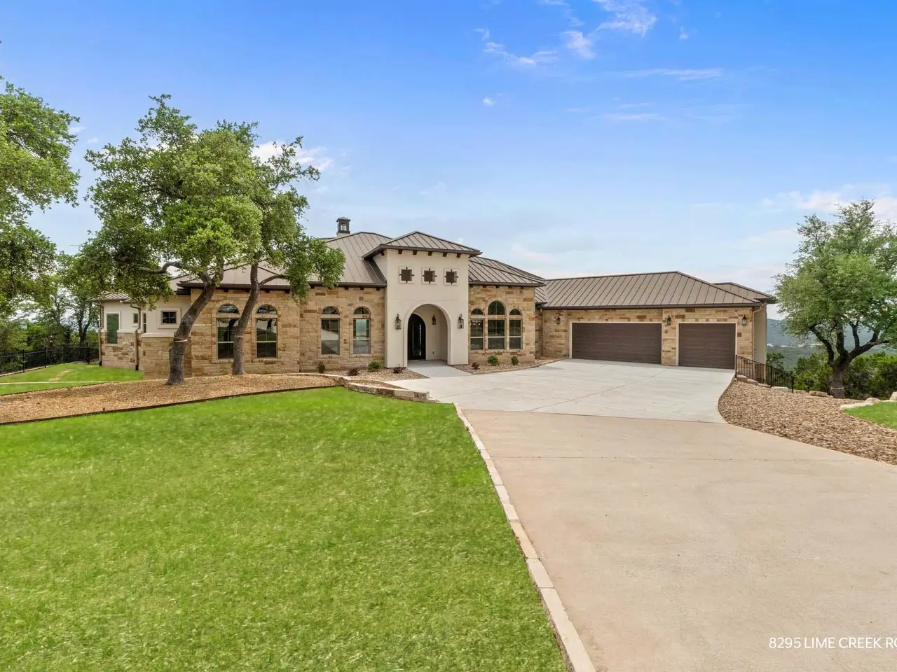 Perched above the scenic landscape of the Texas Hill Country and overlooking the sparkling waters of Lake Travis, this rare opportunity combines two neighboring properties--spanning a total of 12.36 acres--offering unparalleled privacy, views, and versatility. Almost all of the acreage is fenced in and backs up to a +/- 5,000-acre preserve providing peace of mind for no new build development. A private gated entrance along Lime Creek Road leads to individual gates for each residence, creating the ideal setup for a family compound, multigenerational retreat, or investment opportunity in the acclaimed Leander school district. 8293 Lime Creek Road is a traditional 2-story home with sweeping panoramic views that begins in the foyer and carry through to the great room. Set on 5+ acres and thoughtfully designed with 4 bedrooms and 4.5 bathrooms, this home offers generous gathering spaces, including a formal dining room, breakfast area, and three separate living areas, one of which serves as a dedicated study. Outdoors, a private fenced-in backyard and sparkling pool with waterfall feature provide the perfect escape. A 3-car attached garage completes this classic Hill Country retreat. Next door sits 8295 Lime Creek Road, a newly constructed single-story residence on 7+ acres brings a more contemporary, rustic flair with breathtaking views of Lake Travis. Light-filled interiors feature washed limestone accents, white cabinetry, and light stone flooring, creating an airy, serene ambiance. The home includes two spacious primary suites on opposite ends, a third guest bedroom, and a dedicated study. Together, these estates offer the ultimate blend of space, privacy, and natural beauty -- just minutes from the lake, yet worlds away from the bustle.