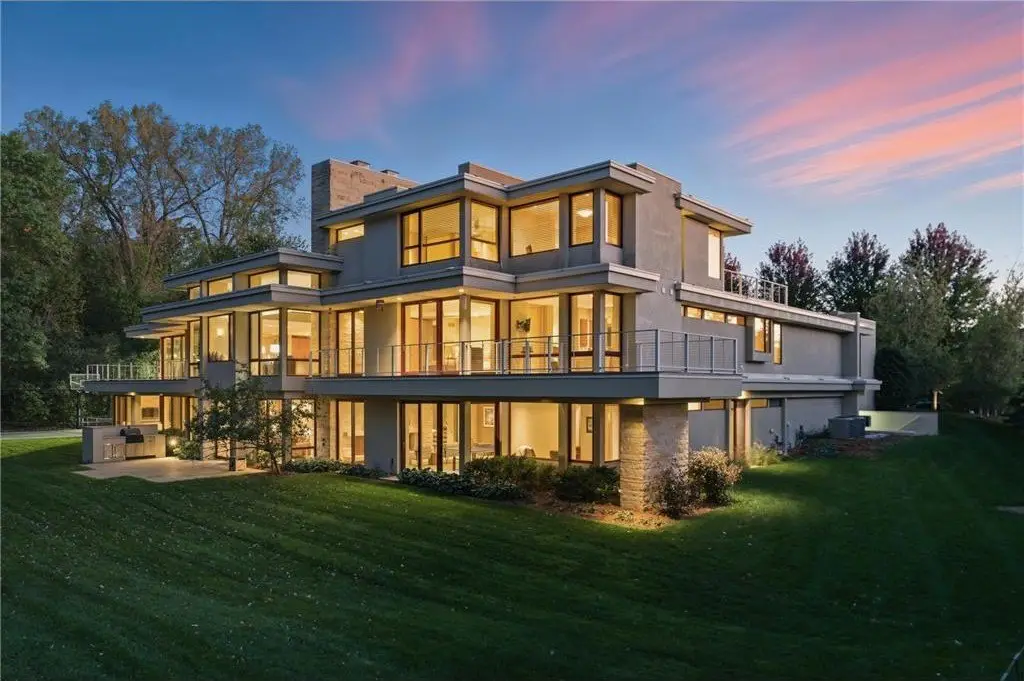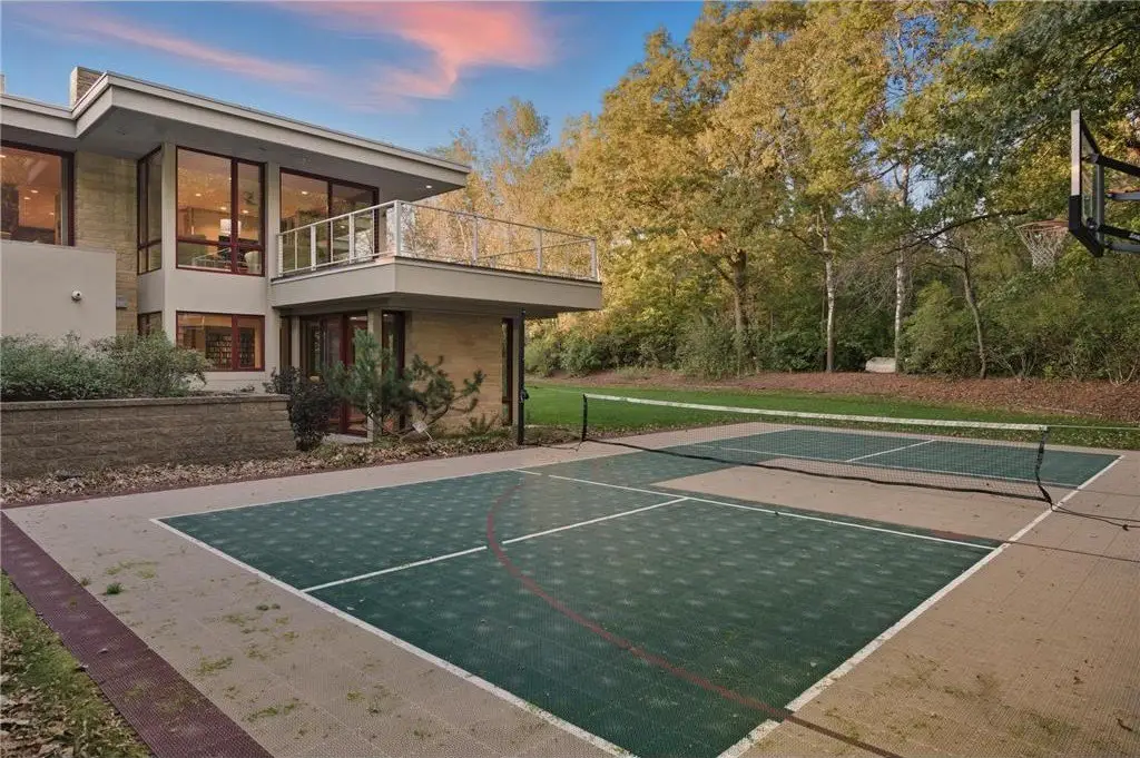 Artful Architecture that truly embraces the ample green spaces of this acreage setting. These are distinguishing aspects of this crowning achievement by an award winning Architect of international acclaim. Privacy without isolation as thoughtful placement of windows & landscape designed to assure great sightlines! Reward yourself in a main floor owner's suite with spa-inspired, dual baths. The clerestory great room is truly awe-inspiring, a daily delight for you & so impressive for guests. Plus, a wealth of natural light is here, even in the lower level with multiple walk-outs. An Oscar worthy theater is here with raked audience seating & grants 18 people a spectacular view of the very large TV screen. Acoustics were professionally designed for great sound throughout the theater. Ideal cinematic experiences start here & they start whenever you wish! A large finished space backstage gives you room to stage live events. Do you want an elevator? Yes, there's a space for that too. In addition to a game room, another space accommodates a pool table & this flows gracefully to a family room with fireplace. Education pursuits have their place in the upstairs study, so your main floor office is just for you. Plus, there is another large room with cabinets & a walk-in closet that is currently seen as an art studio, that could become your 2nd office, a music room and more. The 4 season porch, just off the studio has independent A/c & heating, with sliding patio glass doors on 3 sides. Enjoy the great outdoors, all 4 decks, a pair of patios, a 4 season porch & the sport court all offer amazing functionality & blissful privacy. Daily ease of living & grateful guests looking forward to their next invitation. Your joyful celebrations have ideal spaces here!