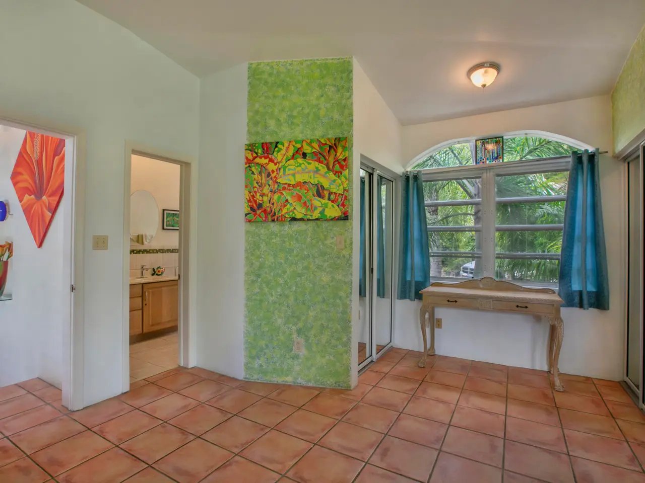 Spacious living room with pocket doors to pool