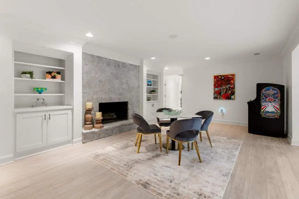 Welcome to 320 Long Glen Drive a complete architectural transformation that merges timeless traditional design with refined transitional luxury, tucked quietly near Chastain Park. Every inch of this reimagined five-bedroom, five-bath, two-half-bath estate has been rebuilt for the way people live today combining refined transitional style, enduring materials, and a resort-level outdoor experience in one of Sandy Springs' most coveted gated enclaves near Chastain Park. Beyond the private brick courtyard, steel-framed glass doors open to luminous interiors defined by pale hardwoods, layered millwork, and subtle low-voltage lighting that creates a warm, gallery-like ambiance. At the heart of the home, the chef's kitchen features an impressive oversized quartzite island, professional-grade appliances, and Kingdom Woodworks custom cabinetry, all opening to a vaulted fireside keeping room where natural textures and stone details set a relaxed yet refind tone, bright breakfast room framed by picture windows overlooking the dreamy backyard oasis, creating a seamless connection between indoor elegance and outdoor living. The show-stopping Great Room is both architectural and inviting an entertainer's dream with a dramatic cove ceiling, floor-to-ceiling windows overlooking the lavish landscape, and a striking marble-topped Wet Bar flanking the stone fireplace. This space effortlessly connects to an elegant dining room with a dramatic lacquered fireplace and a glass-enclosed wine gallery that sets the stage for refined entertaining, ideal for curated tastings or evening gatherings. A private retreat in every sense, the main level primary suite balances sophistication with privacy. Dual owner's baths each with its own quartz surfaces, stepless showers enveloped in marble, custom cabinetry, and bespoke fixtures are connected through dual custom closets designed for form and function. A serene sitting alcove captures garden views, completing a space that feels more boutique hotel