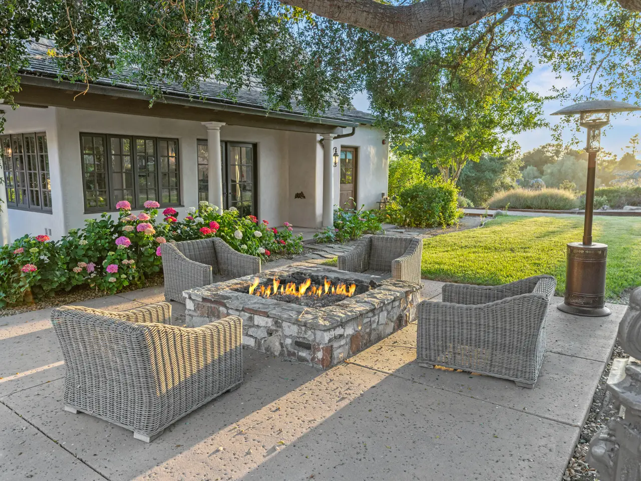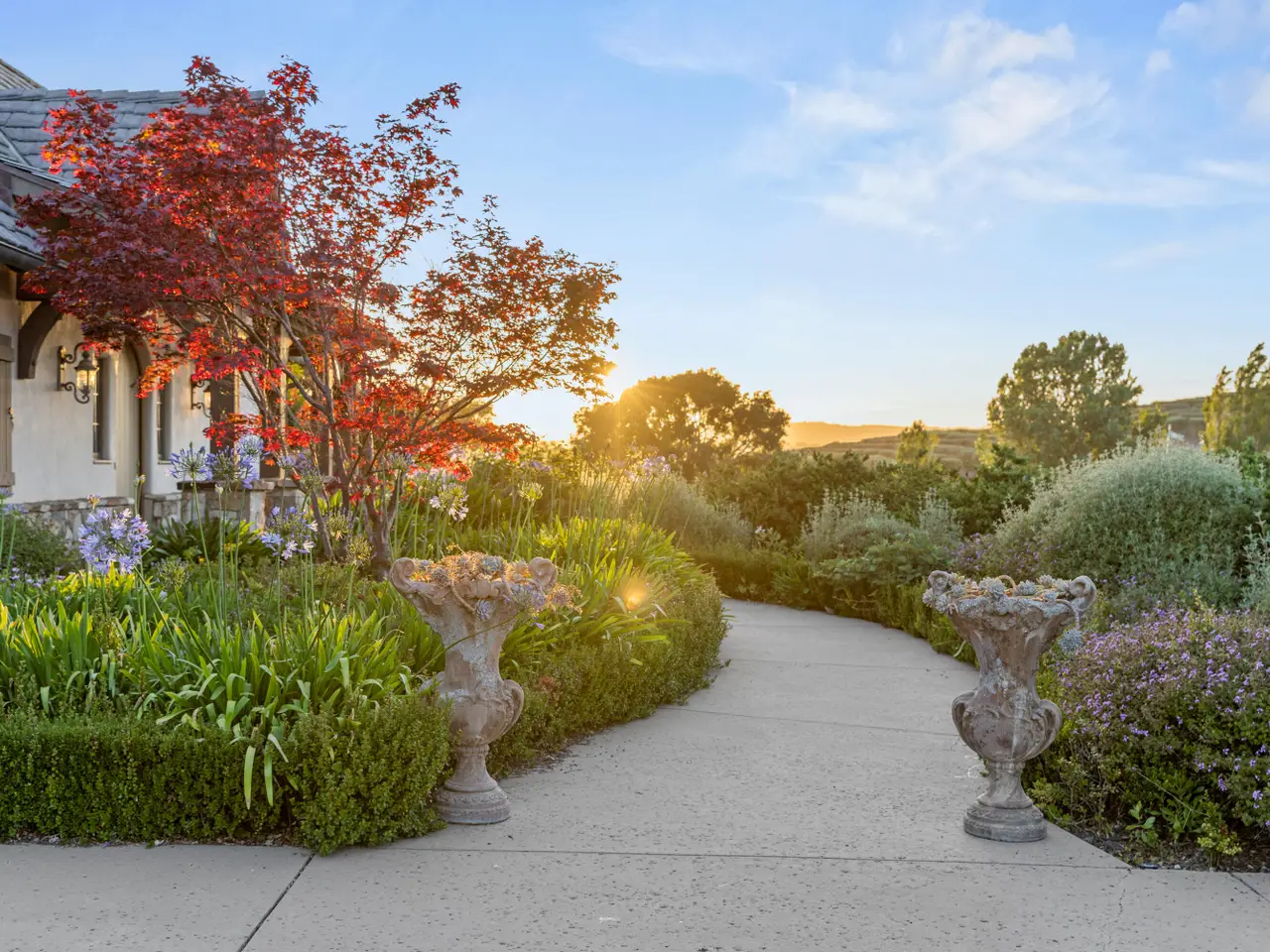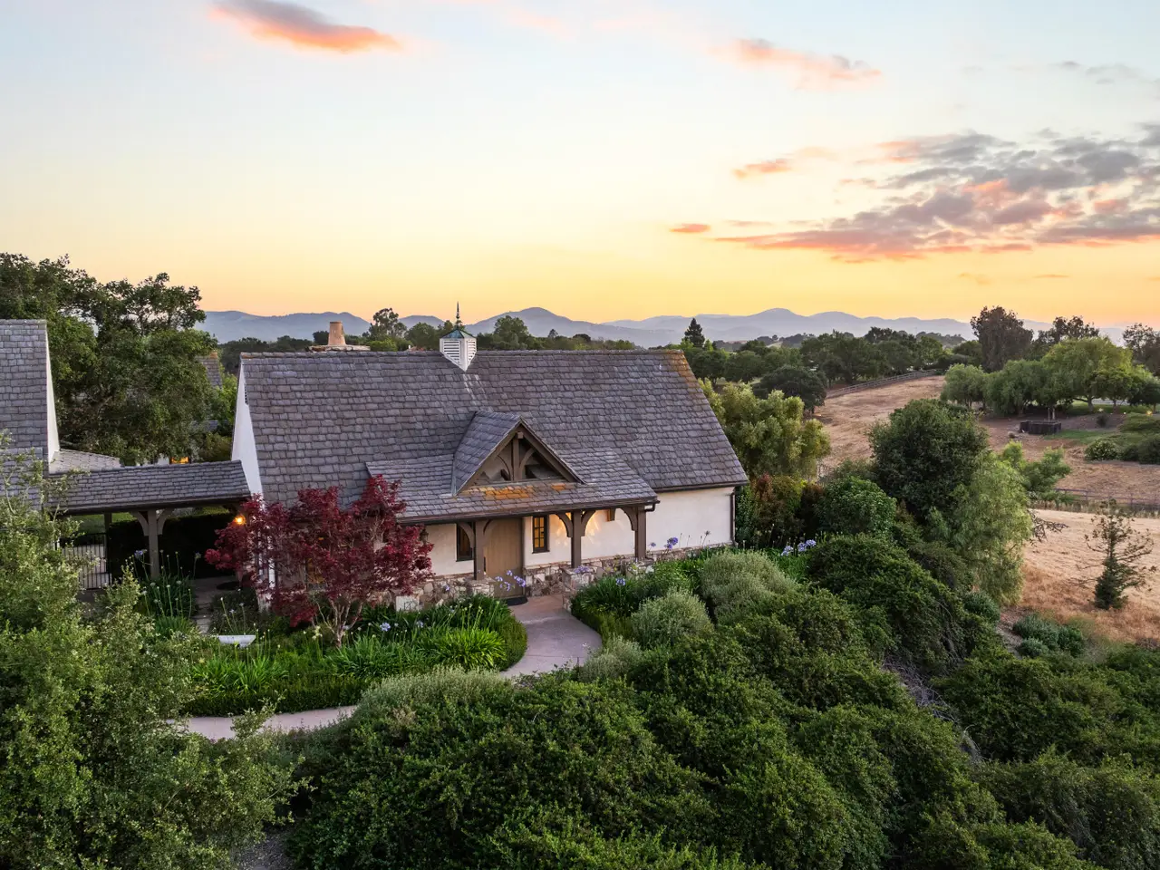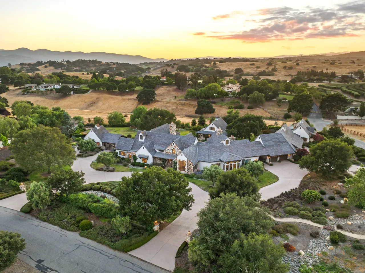 Discover the ultimate in refined Santa Ynez Valley living at 1325 Ladan Drive, an estate set on 4.33+/- gently rolling acres in prestigious Regency Hills Estates and the coveted Ballard School District. This exquisite property offers a blend of timeless elegance and modern luxury complete with an exquisitely reimagined Belgian Farmhouse, guest house, design/workshop studio, ample garage space, pool, spa, pool house, boutique vineyard, bocce ball court, and pasture space. Completely transformed in 2022-2023, the 5,300+/- sf main residence was remodeled to perfection with French oak floors, Calacatta Viola countertops, custom cabinetry, and curated lighting by Kelly Wearstler, Punch London, Noguchi, and RH. The chef's kitchen is a dream, featuring a Wolf range, dual Sub-Zero refrigerators, and an open layout designed for effortless entertaining. Warm fireplaces anchor both the living and family rooms, and a private office with library-style bookcases provides a quiet retreat. The primary suite is a haven with its romantic fireplace, private patio, and spa-inspired bath with steam shower, soaking tub, and bespoke dressing room closet. Two additional spacious guest bedrooms and a billiards room add to the home's inviting layout, while a home theatre elevates everyday living. Outside, the estate unfolds into a series of thoughtfully designed amenities: a pool with new plaster, tile, coping, and automated cover; a pool house with a bar, full bath, and open space for a gym, game tables, or relaxing lounge area; and a charming guest house featuring a kitchen, sitting room, bedroom, and bath. Additionally, the workshop/studio is equipped with three 40-amp circuits, ideal for wine refrigeration or artistic pursuits, and 2 roll-up doors for flexible use. The five-car collector's garage offers custom cabinetry, dedicated laundry, and attic storage with a lift for ease of access. Meandering pathways lead through romantic gardens, specimen olive trees, fruit orchards, grapevines, organic cedar planter beds, and tranquil patios with sweeping valley views. A bocce ball court and open pasture await your horses or even a future pickleball court! Enhanced with smart home integration for lighting, sound, and security, this remarkable estate is both an entertainer's paradise and a peaceful retreat. Welcome to your forever home - a place of pure bliss and timeless sophistication in the heart of the Santa Ynez Valley.