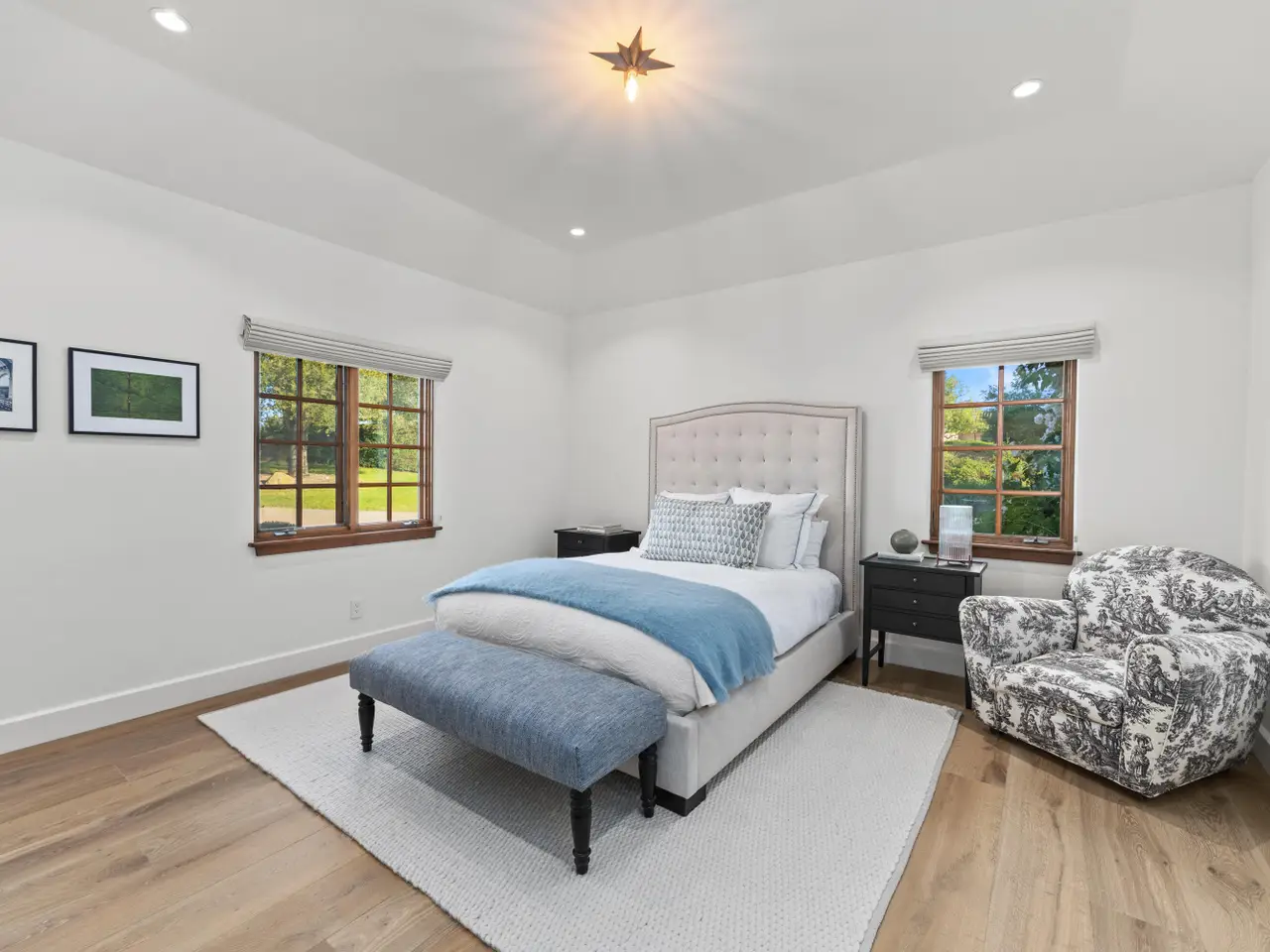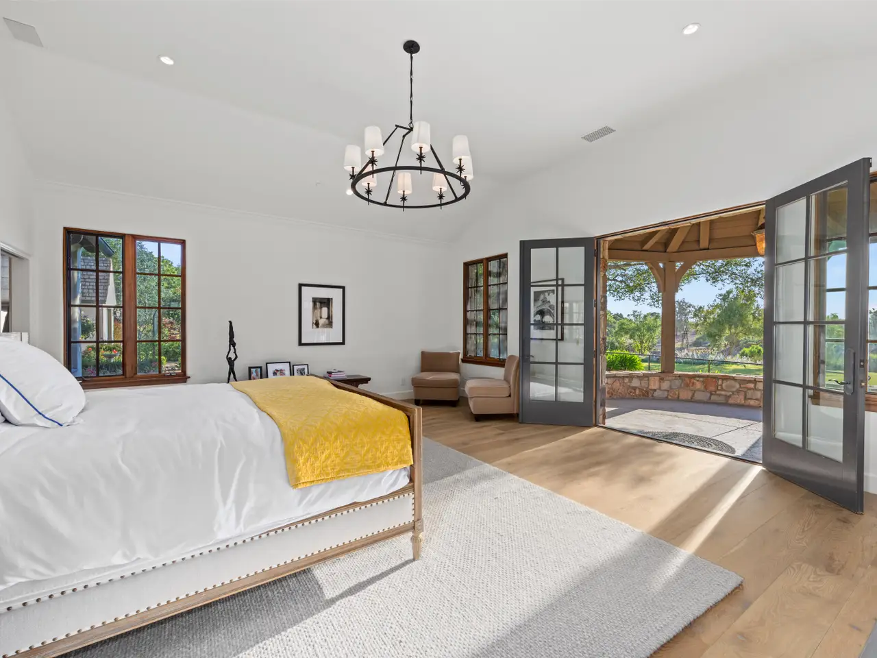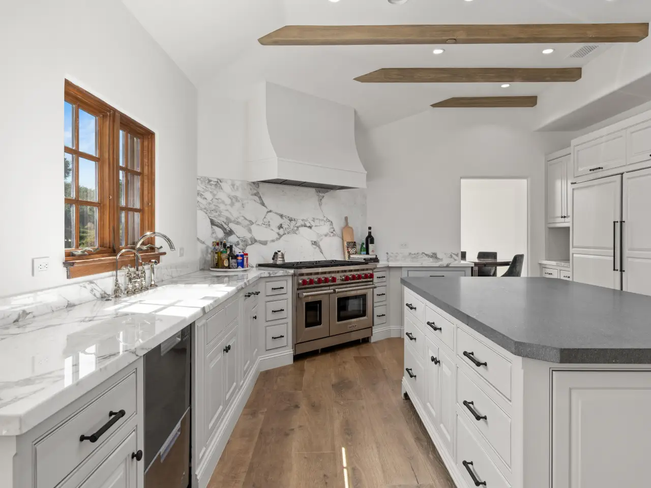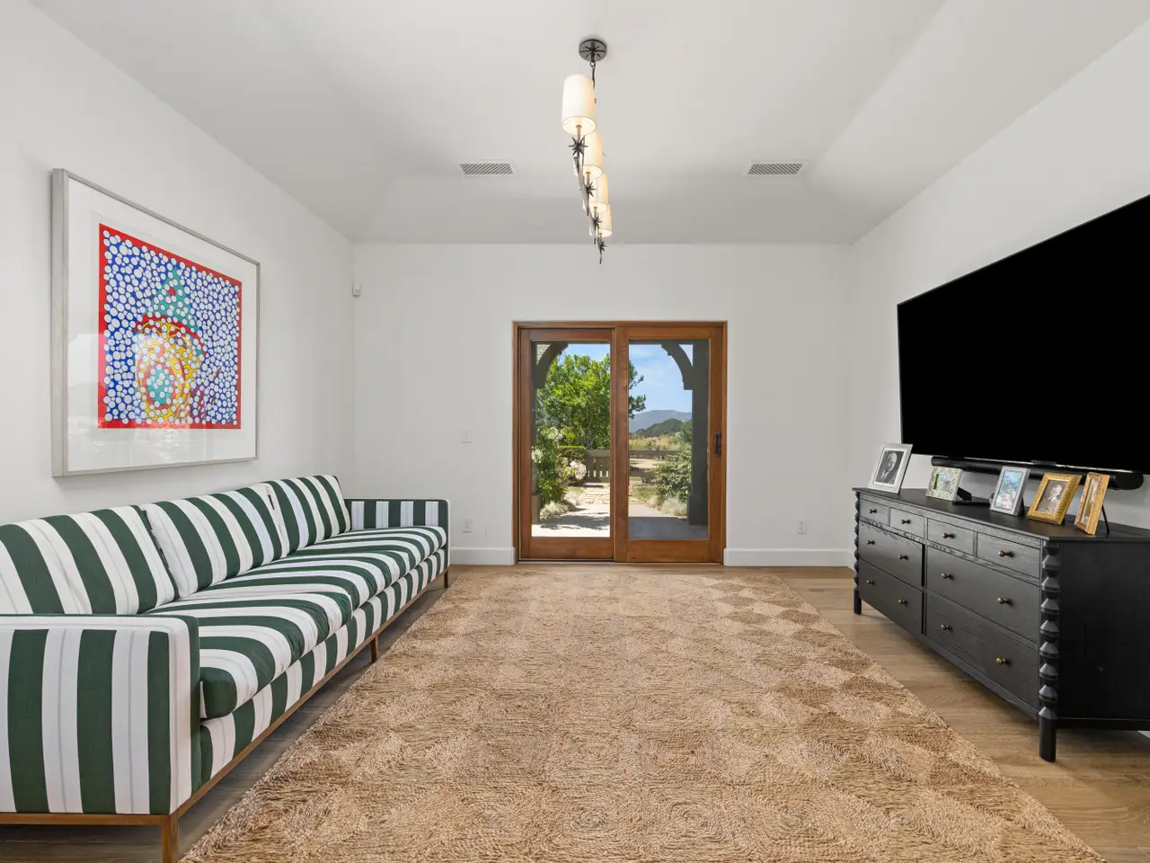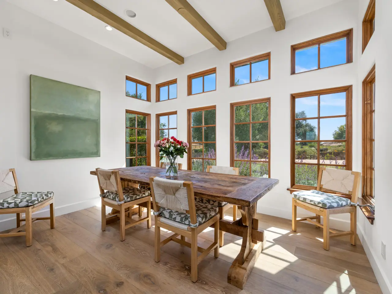 Discover the ultimate in refined Santa Ynez Valley living at 1325 Ladan Drive, an estate set on 4.33+/- gently rolling acres in prestigious Regency Hills Estates and the coveted Ballard School District. This exquisite property offers a blend of timeless elegance and modern luxury complete with an exquisitely reimagined Belgian Farmhouse, guest house, design/workshop studio, ample garage space, pool, spa, pool house, boutique vineyard, bocce ball court, and pasture space. Completely transformed in 2022-2023, the 5,300+/- sf main residence was remodeled to perfection with French oak floors, Calacatta Viola countertops, custom cabinetry, and curated lighting by Kelly Wearstler, Punch London, Noguchi, and RH. The chef's kitchen is a dream, featuring a Wolf range, dual Sub-Zero refrigerators, and an open layout designed for effortless entertaining. Warm fireplaces anchor both the living and family rooms, and a private office with library-style bookcases provides a quiet retreat. The primary suite is a haven with its romantic fireplace, private patio, and spa-inspired bath with steam shower, soaking tub, and bespoke dressing room closet. Two additional spacious guest bedrooms and a billiards room add to the home's inviting layout, while a home theatre elevates everyday living. Outside, the estate unfolds into a series of thoughtfully designed amenities: a pool with new plaster, tile, coping, and automated cover; a pool house with a bar, full bath, and open space for a gym, game tables, or relaxing lounge area; and a charming guest house featuring a kitchen, sitting room, bedroom, and bath. Additionally, the workshop/studio is equipped with three 40-amp circuits, ideal for wine refrigeration or artistic pursuits, and 2 roll-up doors for flexible use. The five-car collector's garage offers custom cabinetry, dedicated laundry, and attic storage with a lift for ease of access. Meandering pathways lead through romantic gardens, specimen olive trees, fruit orchards, grapevines, organic cedar planter beds, and tranquil patios with sweeping valley views. A bocce ball court and open pasture await your horses or even a future pickleball court! Enhanced with smart home integration for lighting, sound, and security, this remarkable estate is both an entertainer's paradise and a peaceful retreat. Welcome to your forever home - a place of pure bliss and timeless sophistication in the heart of the Santa Ynez Valley.