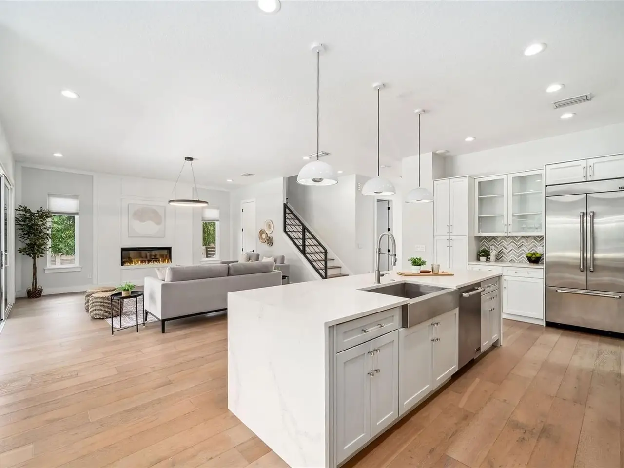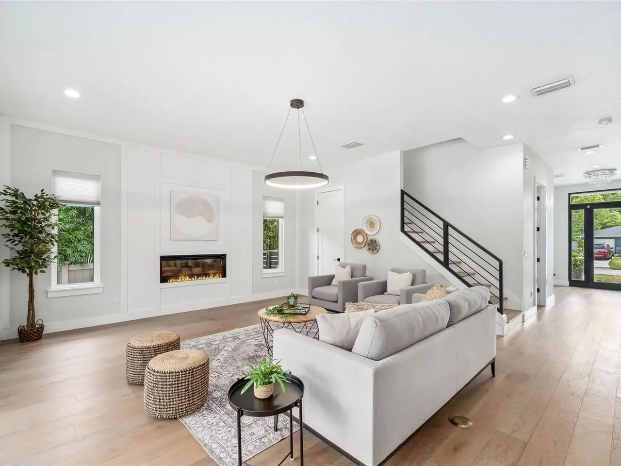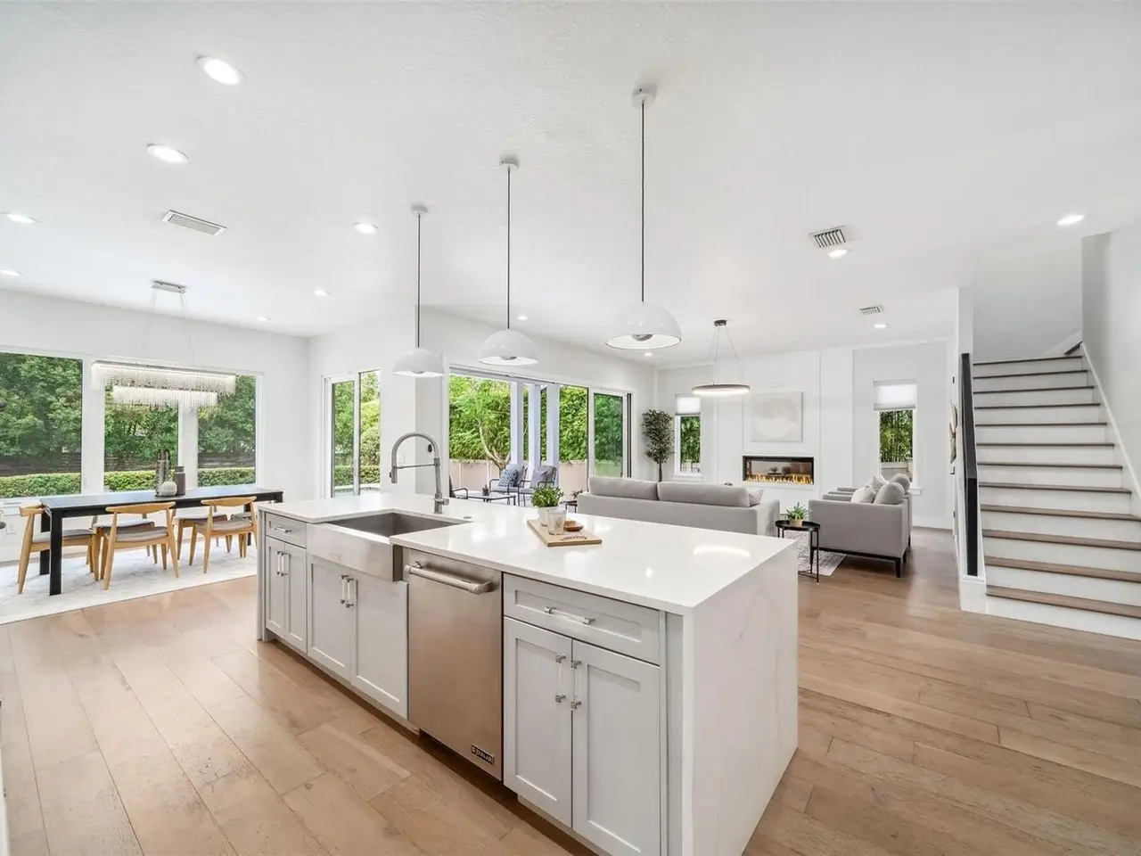 Discover this exceptional custom-designed modern pool home, ideally situated on a quiet street in Winter Park. This spacious residence offers 5 bedrooms, 4.5 bathrooms, and a large upstairs loft—providing the perfect blend of luxury, comfort, and functionality. From the moment you enter, you'll be captivated by the abundance of natural light and stunning hardwood floors that flow throughout the main level and continue upstairs into the loft and primary suite. The thoughtfully designed floor plan includes a downstairs bedroom and full bath, ideal for guests, in-laws, or a private home office. Designed with the entertainer in mind, the gourmet kitchen is a true showstopper—featuring quartz countertops, an oversized island, Jenn Air appliances including a double oven, and generous cabinet space. A large butler’s pantry with an additional sink offers even more storage and prep space. Seamlessly transition from indoor to outdoor living with the sliding glass doors that open to a covered lanai, private pool, and expansive fenced in backyard—perfect for relaxing or hosting gatherings year-round. Upstairs, the luxurious primary suite includes a walk-in closet and a spa-like bathroom with dual sinks, a soaking tub, and a separate walk-in shower. Three additional bedrooms, two full bathrooms, and a spacious laundry room with more storage complete the upper level. Additional features include a dedicated mudroom with built-in bench seating and storage, and an air-conditioned two-car garage with insulated doors and epoxy floors. All of this, just minutes from the Winter Park Racquet Club, Park Avenue’s boutique shopping and dining, and top-rated schools: Dommerich Elementary, Maitland Middle, and Winter Park High. Don’t miss this rare opportunity to own a one-of-a-kind home in one of Central Florida’s premier neighborhoods.