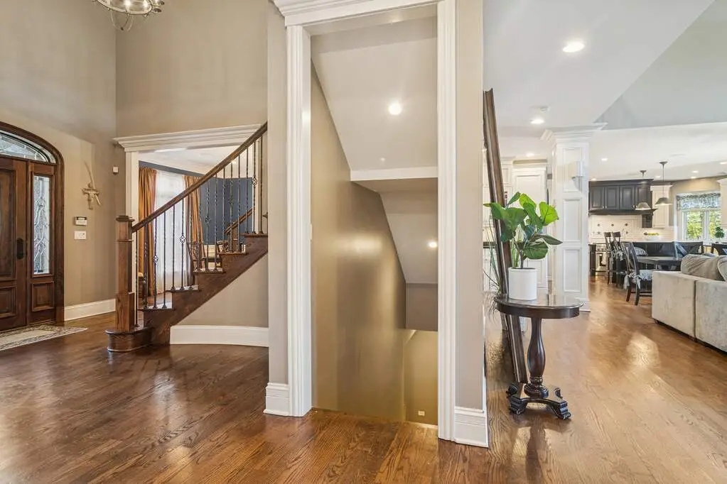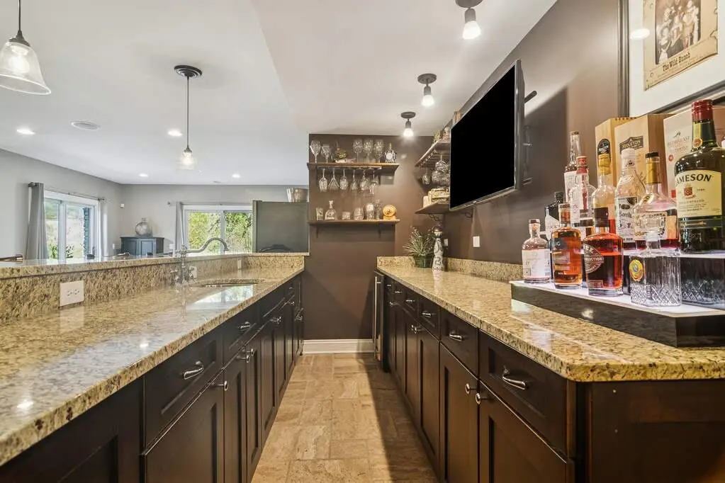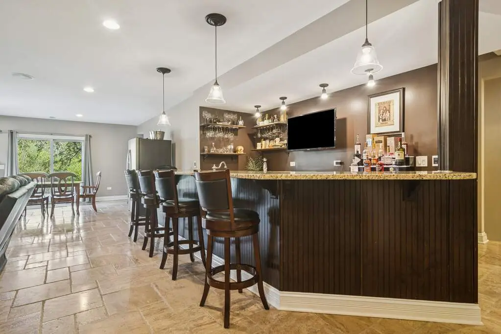 Experience timeless sophistication and contemporary convenience in this stunning 6,577-square-foot residence on 1.29 acres, ideally located in the serene North Barrington community, Haverton on the Pond. Meticulously maintained, this fully brick home offers five bedrooms, four full bathrooms, and two half-bathrooms, seamlessly blending refined design with everyday functionality. Step inside the grand foyer, where a grand staircase with wrought iron spindles, soaring two-story ceilings, and stunning dark hardwood throughout the main and second levels set the tone for the home's elegance. The gourmet kitchen impresses with a large marble island and slick black granite countertops, custom soft-close cabinetry, reverse osmosis water filtration, and high-end appliances including a Sub-Zero refrigerator and Thermador Professional gas range with 6 burners and a griddle-perfect for the passionate home chef. Around the corner, the butler's pantry features matching cabinetry and countertops to the kitchen, a wet bar, and beverage fridge. The eat-in kitchen and breakfast room with access to the patio seamlessly combine into the expansive two-story living room, centered around a stone gas fireplace, creating an inviting space for both relaxation and entertaining. The dining room and living room showcase stunning crown moldings and wainscoting, and the library/office features french doors, built-in bookshelves, wainscoting and coffered ceilings. Convenience abounds with a main-level laundry/mudroom-doubling as a half bath-equipped with Whirlpool washer/dryer, stone counters and floors, custom cabinetry, sink, built-in cubbies, and direct garage access. The primary suite offers a private sanctuary, featuring a gas fireplace with a granite hearth and built-ins, wet bar with travertine countertops, a luxurious spa bathroom with a jetted Whirlpool tub, large steam shower, heated stone floors, separate vanities with custom cabinetry and travertine countertops, and enormous walk-in closet with an adjacent private workout room for ultimate convenience. Upstairs, three additional bedrooms with vaulted ceilings and walk-in closets include one ensuite with limestone vanity and shower/tub combo, plus two sharing a thoughtfully designed Jack-and-Jill bath with marble countertops, shower/tub, and a separate toilet room behind a pocket door; one of these bedrooms also enjoys a charming third-story loft with hardwood floors. The fifth bedroom is located in the fully finished walkout basement. The walkout basement also features a full bathroom, stylish full bar with granite countertops, a wine cooler, microwave, and heated stone floors, a living area with a gas fireplace, wine cellar, and a dedicated media/theatre room. The four-car garage, professionally epoxy sealed and gas heated, offers ample space for vehicles and storage. Outdoors, the beautiful professionally landscaped yard features irrigation and landscape lighting systems, and a brand-new asphalt driveway with concrete ribbon enhancing the overall curb appeal. Enjoy breathtaking sunset views over the pond from the two brick paver patios connecting the main and lower levels with gorgeous brick and stone steps. Additional exterior features include a gas grill hookup, invisible fence, spring-free trampoline, and she-shed-all included in the sale. Located just 35 miles from Chicago, minutes from shopping, dining, and everyday conveniences, less than a 10-minute drive to Downtown Barrington and the Metra station, and in the highly awarded Barrington School District 220, 165 Haverton Way offers an extraordinary combination of luxury and practicality. Schedule your private tour today-this North Barrington masterpiece won't last long.