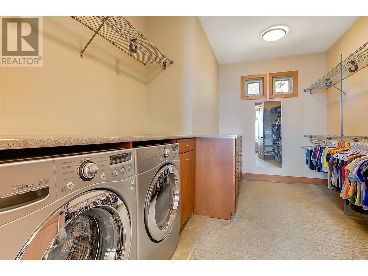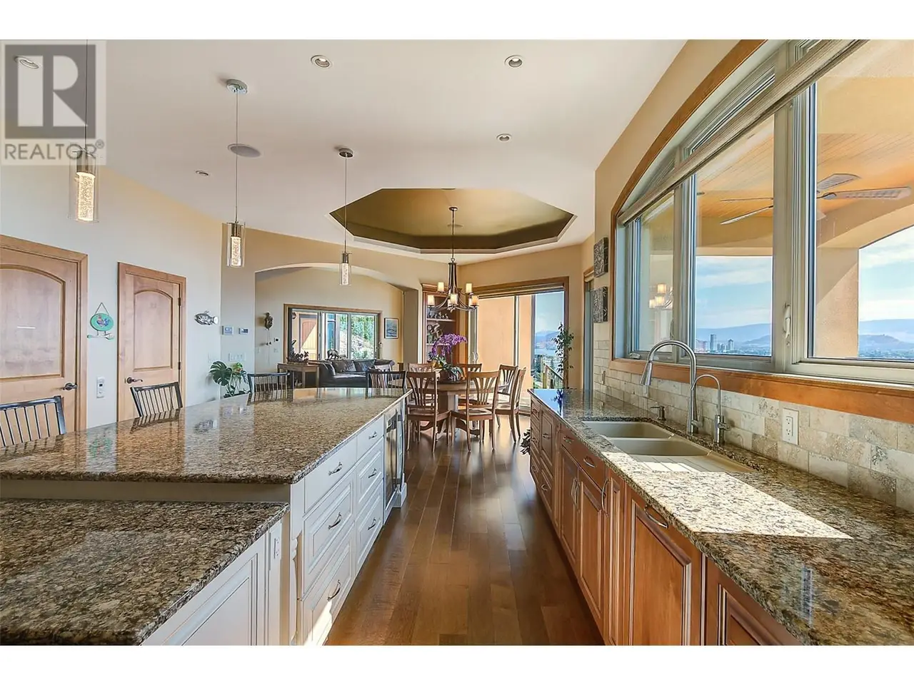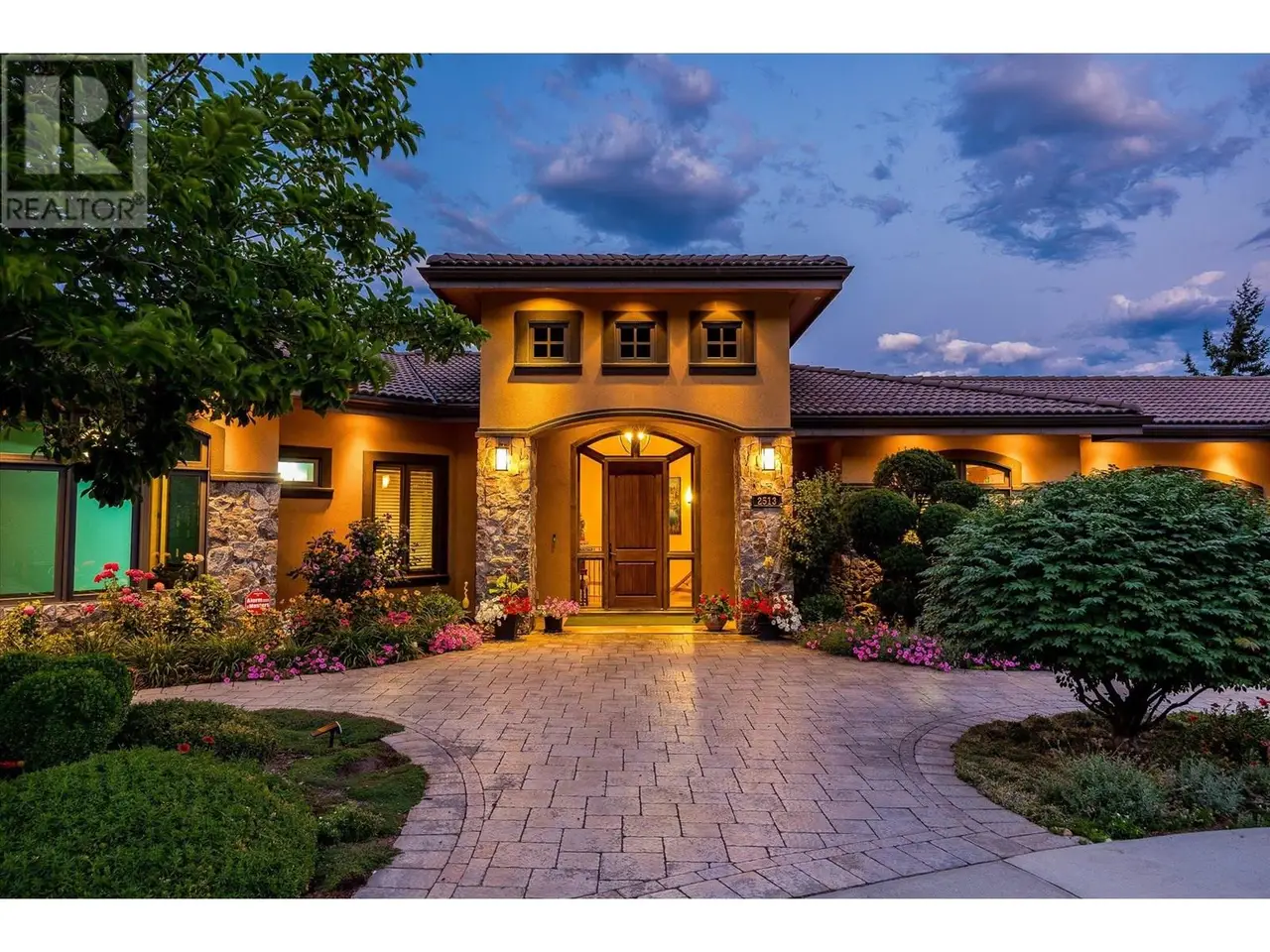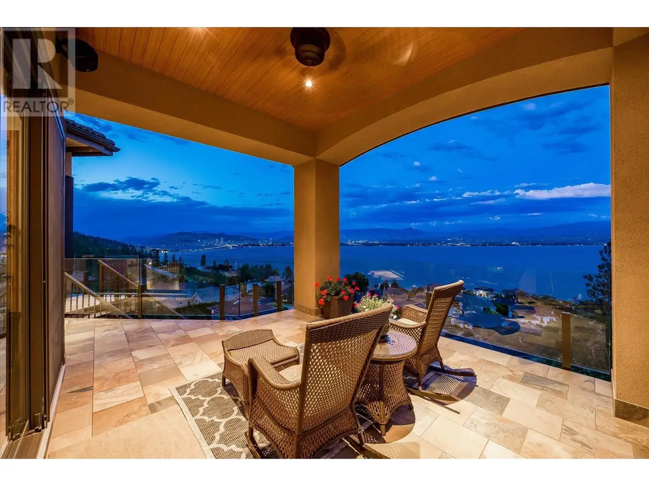 PANORAMIC LAKE VIEWS — JUST 10 MINS TO DOWNTOWN! With Tuscan flair and resort-style luxury, this 7,200 square foot Casa Loma estate captures the essence of Okanagan living. Unwind in your home theatre, play in your private indoor sports court, or spend the afternoon lounging by the pool! Featuring a bright open floor plan, the main level offers effortless day-to-day living with the primary bedroom, office, kitchen, triple garage plus RV parking and main entertaining spaces all on one level. Designed to showcase breathtaking views from nearly every room, the chef’s kitchen features a massive island, six-burner gas range and two pantries—flowing into the dining room with easy access to the covered deck. Extensive hardwood floors continue into the living area, where a gas fireplace creates a cozy focal point and accordion-style glass wall opens to a second covered balcony with a remote screen for shade as you relax and watch the city lights at night! Down the hall, the primary retreat offers a fireplace via walk-in closet with built-in laundry, steam shower and lakeview soaker tub! Take the elevator down to the walk-out lower level with a theatre, games room, two bedrooms, a sports court and changeroom with outdoor access to the pool deck and hot tub. Host unforgettable evenings from the outdoor kitchen and gather around the firepit surrounded by terraced landscaping, gardens and lake views! Situated on a private double lot, this home offers luxury and lifestyle just minutes to Kalamoir trails, parks, the beach and boat launch!