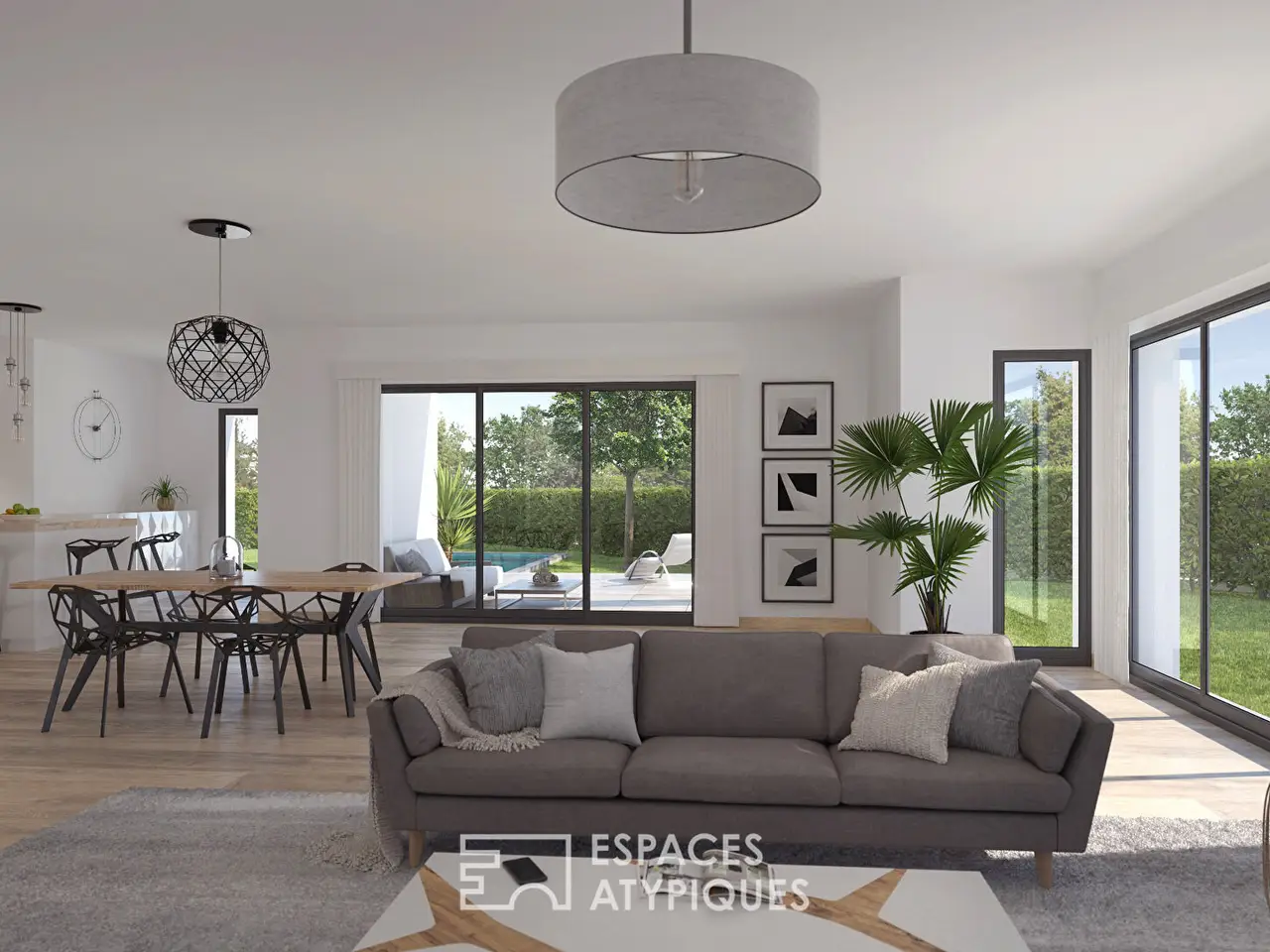 This magnificent contemporary house of 220 sqm, built on two levels, takes place in a peaceful setting near the town center of Bouscat. It will be delivered at the end of 2024. As soon as you enter, the light that reigns in the large 56 sqm living room sets the tone. The large bay windows let in abundant natural light. The carefully fitted kitchen is perfectly equipped with all the necessary elements. The cellar, practical and functional, offers additional storage space. On the ground floor, a spacious bedroom with dressing room and adjoining bathroom, settles like a real cocoon of tranquility and comfort. The first floor serves a landing converted into an office, as well as three other bedrooms, one of which has an adjoining shower room, each offering comfort and absolute privacy. The vast parental suite is the centerpiece of this house, with its dressing room, its bathroom and its private WC. Outside, a magnificent garden with terrace and subtly landscaped swimming pool. A large garage completes the set. This contemporary house is a real architectural gem, combining comfort and modernity. Additional information * 7 rooms * 5 bedrooms * 1 bathroom * 2 shower rooms * Floor : 1 * Outdoor space : 400 SQM * Property tax : 2 600 €