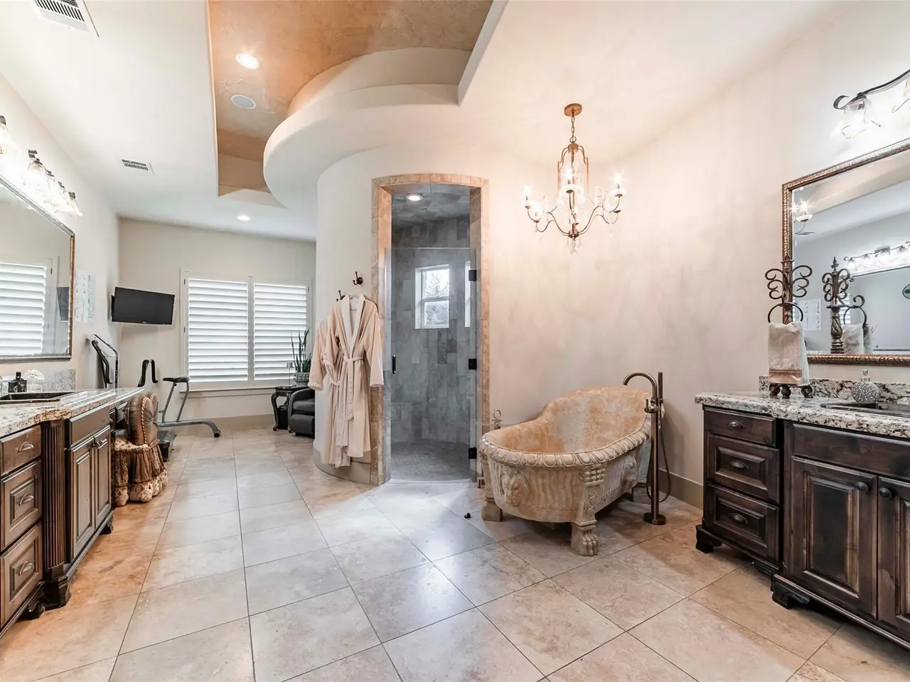 • Owner's retreat with custom stone bathtub and triple-sized closet