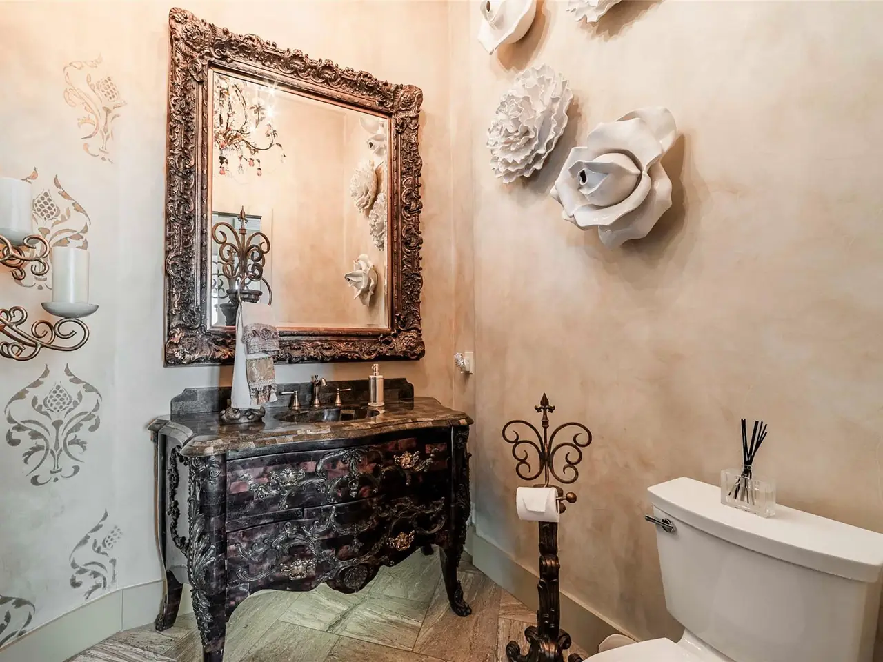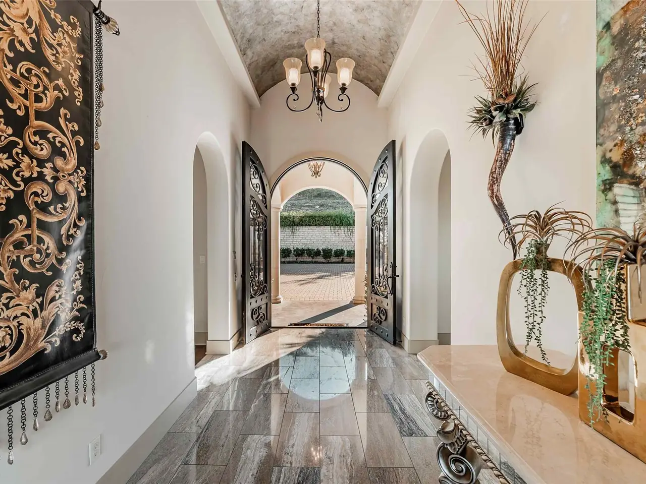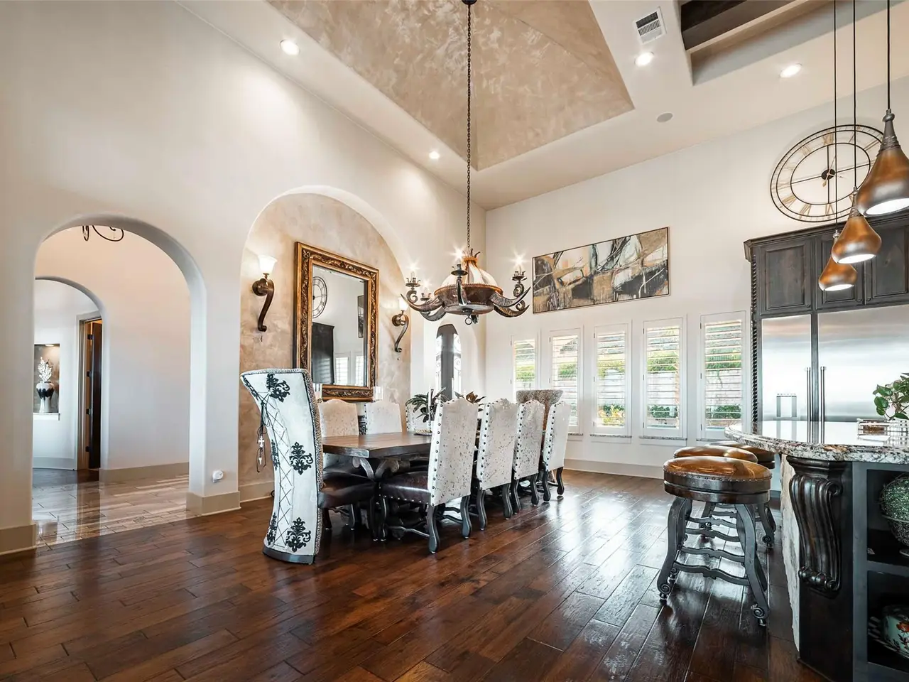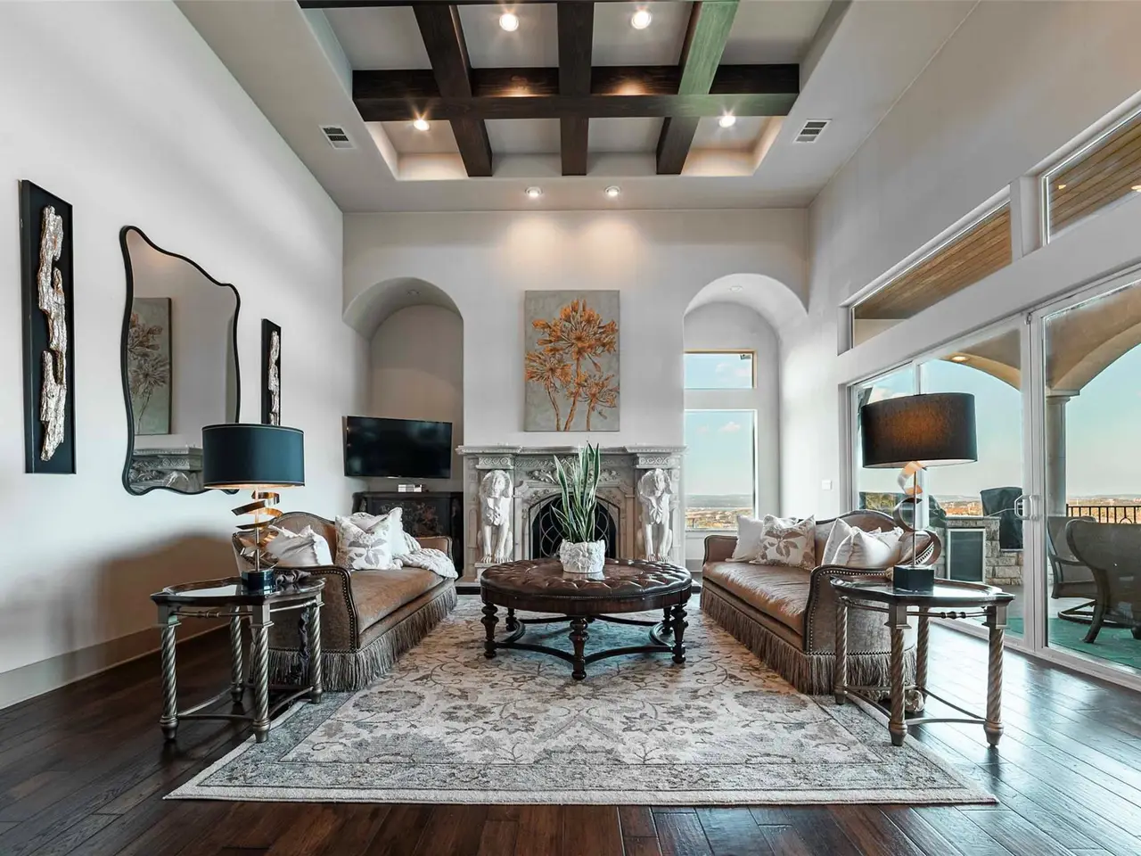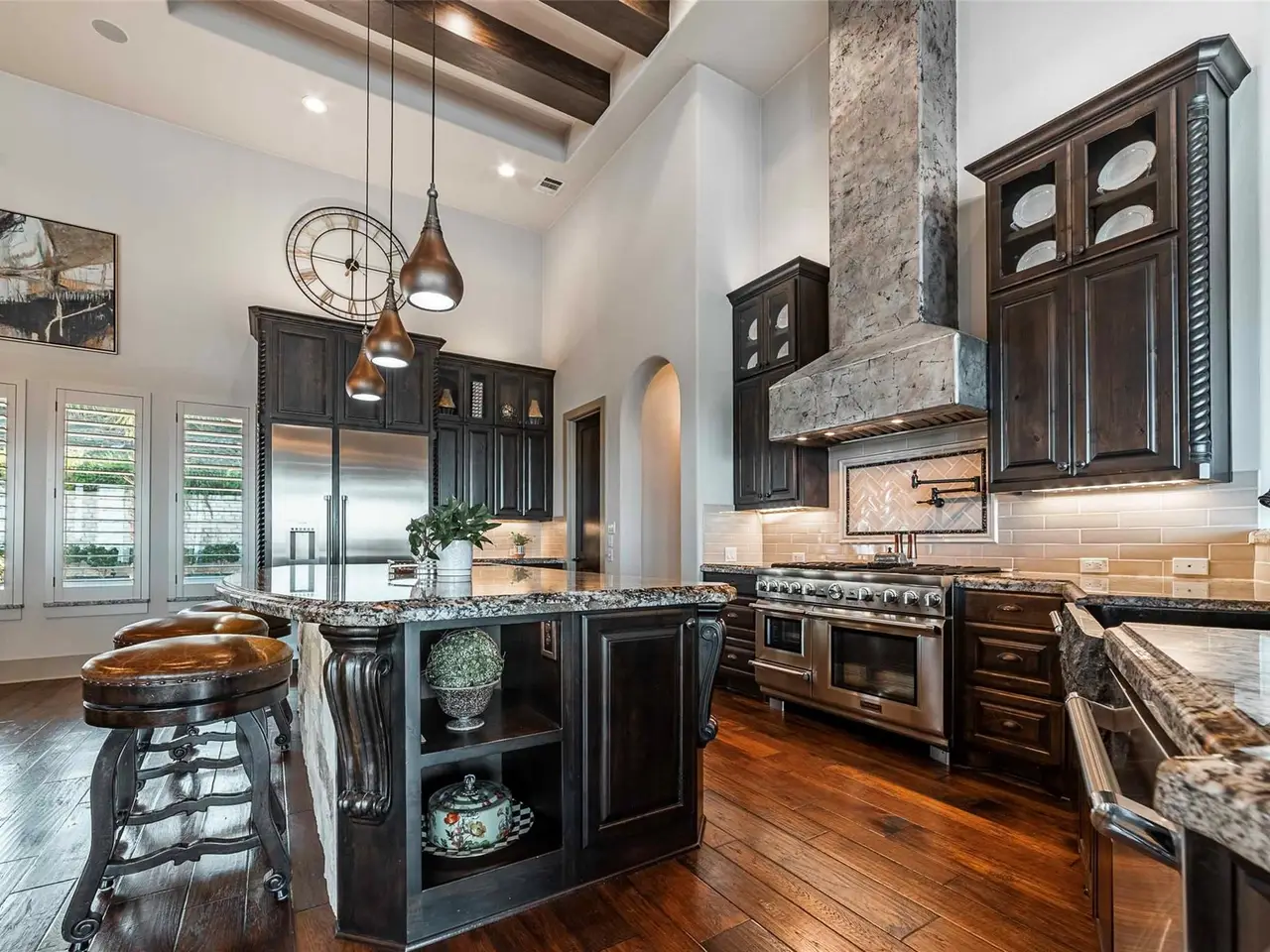 • Custom artistry with wood beams and hand-painted ceilings