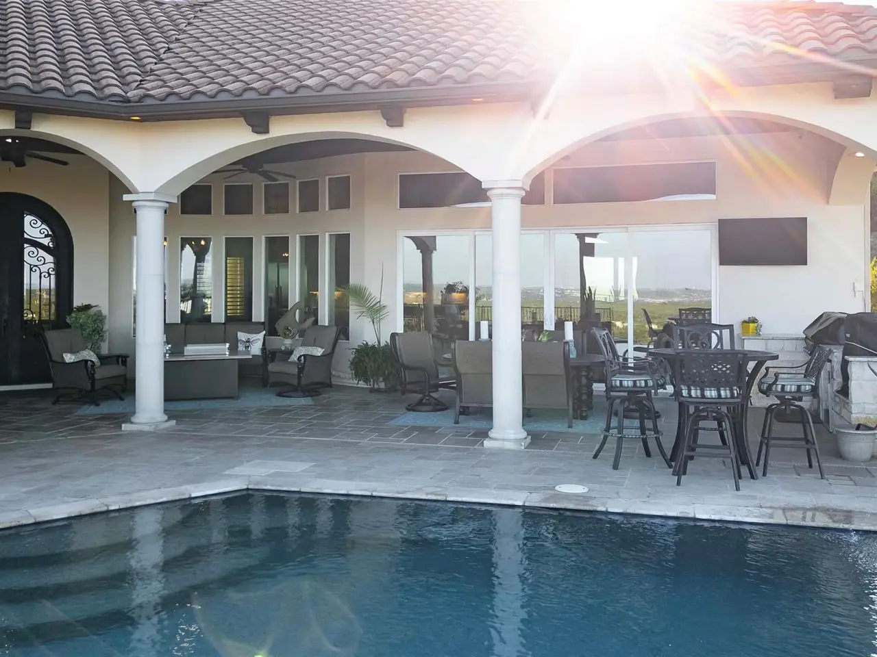 • Covered outdoor living with summer kitchen, hot tub, and resort-style pool