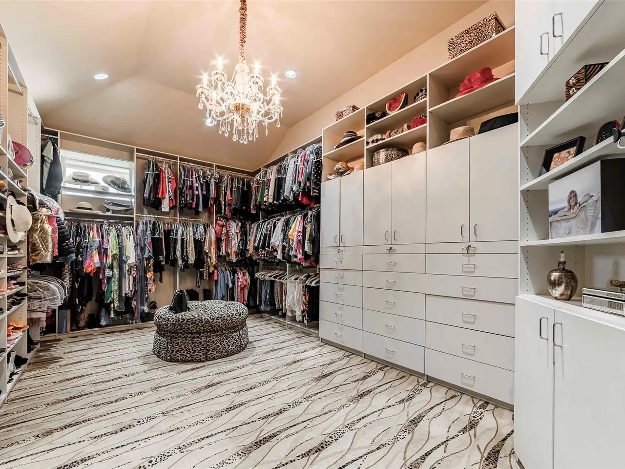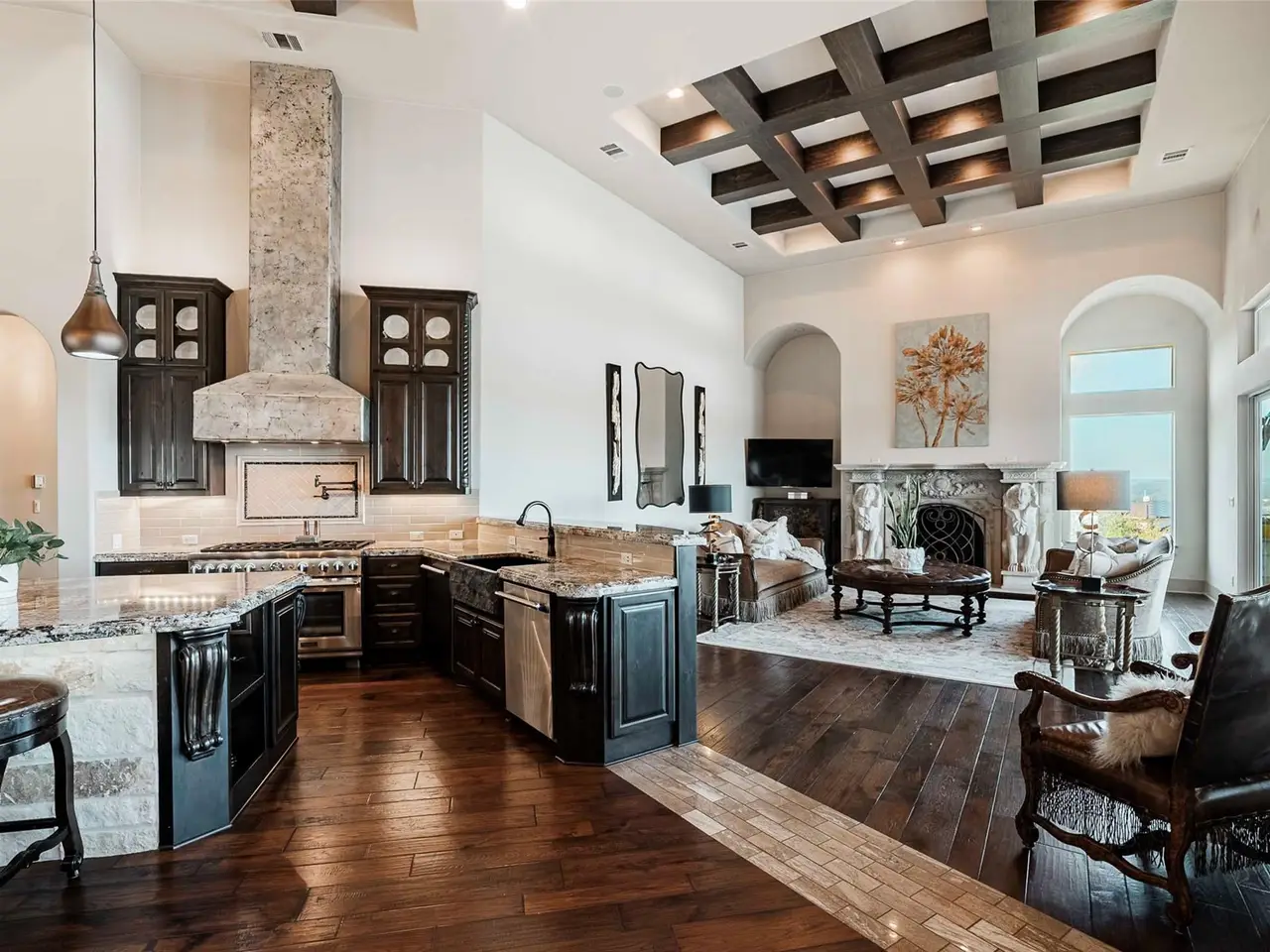 • Custom carved stone fireplace
