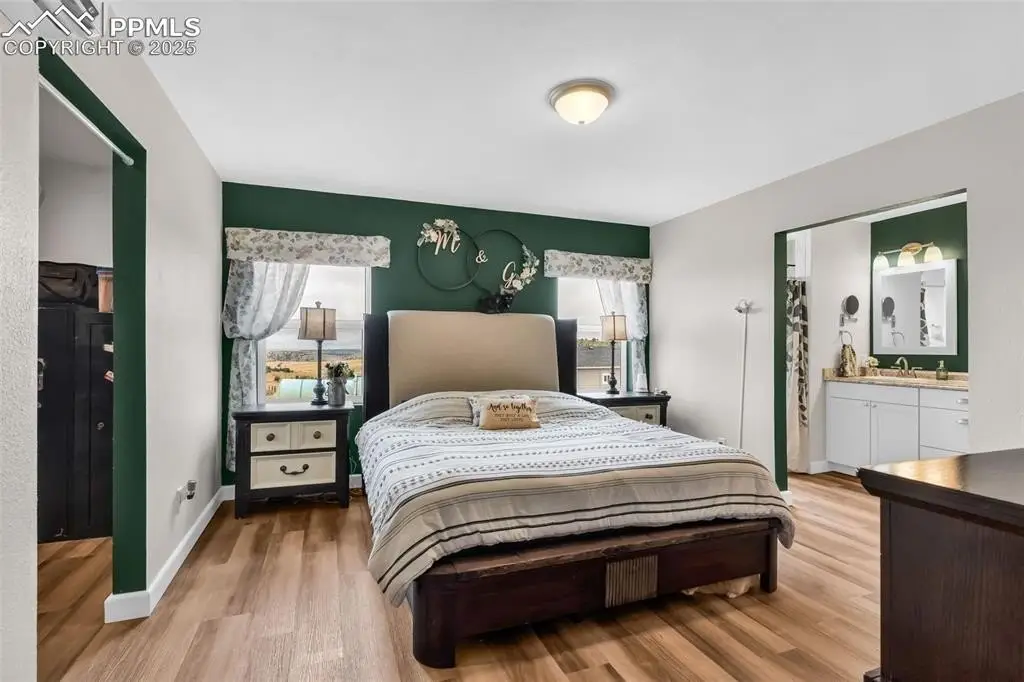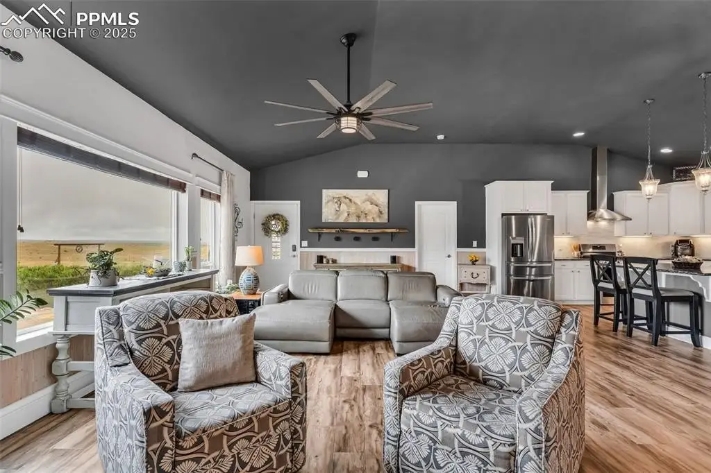 Awaken to Colorado skies, the mountains framing your view, and room for everyone-family, friends, and even your horses right outside your door. Minutes from Colorado City, this 35-acre property is a rare opportunity to own not one, but TWO stunning homes in a setting that blends peace, privacy, and wide-open beauty. Rolling pastures surround a true multi-family haven, or guest retreat. For equestrians, the property is fully equipped with a 30x40 barn featuring four stalls with stall saver mats, multiple sheds, and a lean-to shelter. The main home is a spacious ranch-style designed for comfort and flow. 3 bedrooms and 3 baths each its own ensuite — offer privacy and convenience for everyone. The primary suite is a sanctuary with a luxurious five-piece bath with a deep soaker tub, oversized shower, and walk-in closet. The second main-level bedroom boasts its own ensuite with a large granite vanity and shower. The open-concept living, dining, and kitchen space is both inviting and functional, featuring upgraded stainless steel appliances paired with dramatic dark-veined granite counters. Step into the screened-in porch noting the beautiful wood-grained tile floor—a year-round space even in winter—before heading out to the fully fenced backyard summer oasis with hot tub, outdoor bar and grill, and fire pit for starlit gatherings. The basement offers 3/4 bath and bonus nooks—ideal for home office and guest space— large living room with a bar w/ water rough-in, pool table area, plus a spacious third bedroom ensuite. New LVP floors flow throughout the main level, and an attached two-car garage. Over at the second home, a wraparound deck facing Greenhorn Mountain leads to single level living with charm and comfort. 3 bedrooms and 3 baths include a primary suite with large shower, double vanity, and walk-in closet. 2 additional bedrooms share a full bath w/ stackable laundry plus a guest half bath. Kitchen has stainless steel appliances and warm wood-tone LVP flooring throughout.