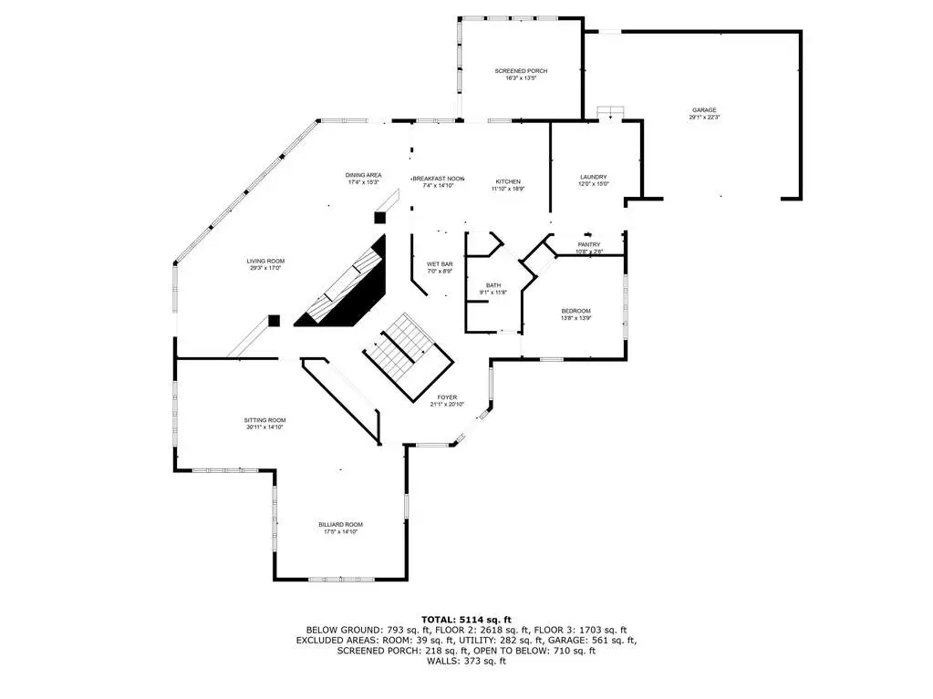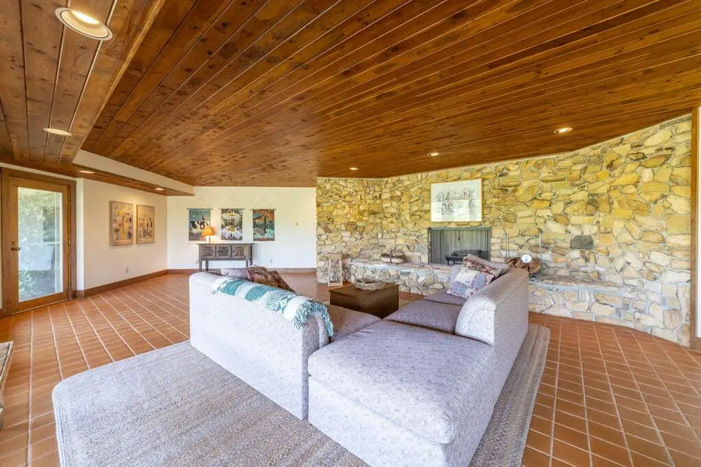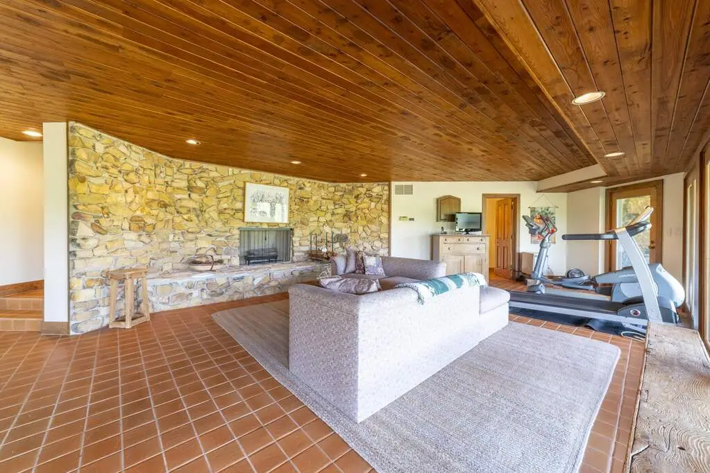 • Floor-to-ceiling stone fireplace