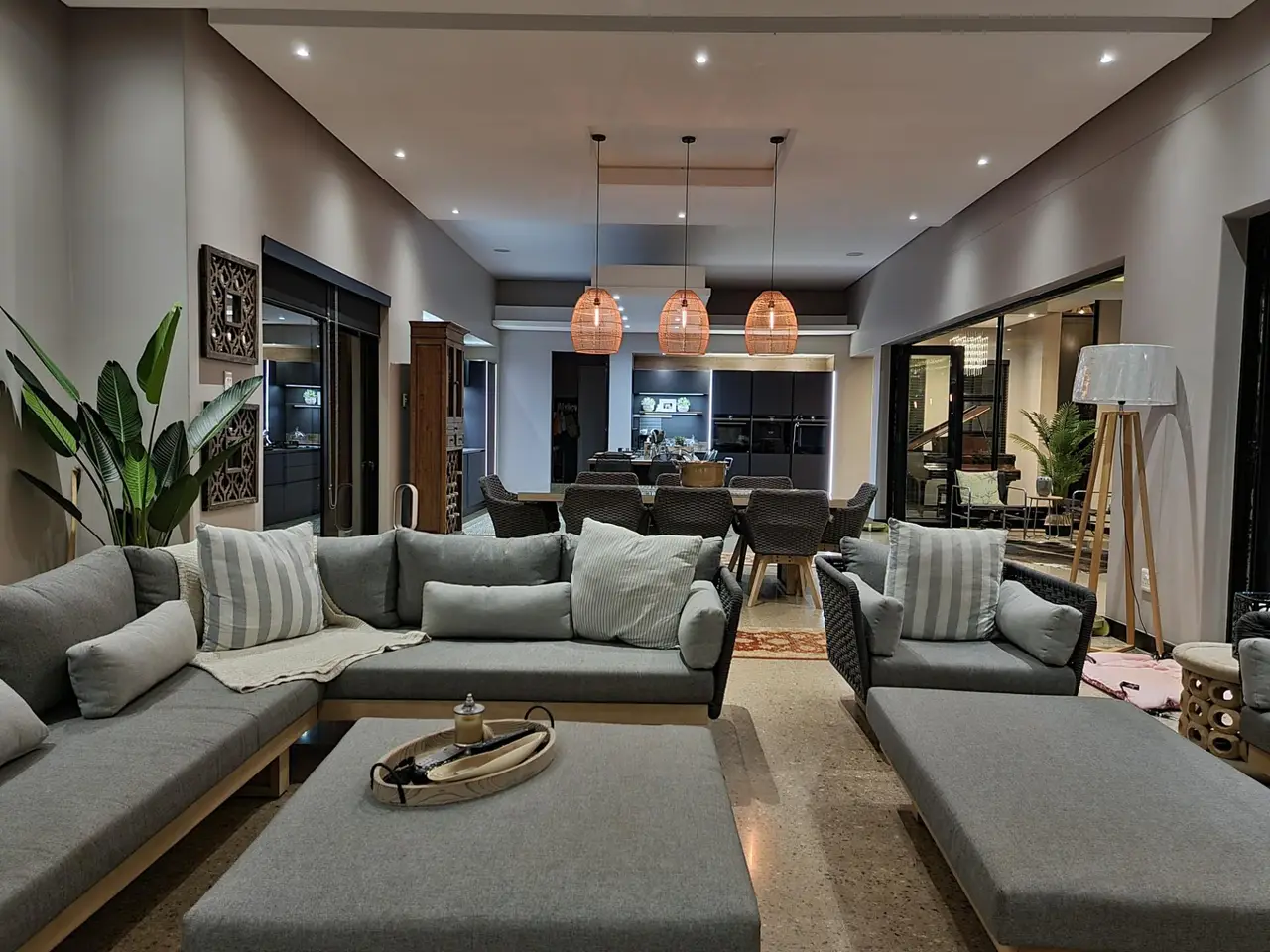 Nestled in the sought-after Mtunzini River Estate, surrounded by majestic views and stunning birdlife lies this splendid home. From the second you enter this marvel you are embraced and embroiled by its magnificent designs and features. The attention to detail and interior design is by far unrivaled. The kitchen was imported from Germany ensuring you the highest quality and finishes. Prepare your five-star meals in your personal built-in Chef's oven and enjoy your morning coffees prepared by your superlative fitted coffee machine. Each ultra-modern bedroom is surrounded by scenic and pool views, fitted with the finest open plan ensuite bathrooms. Entertain your family and friends in an entertainment area that will leave your guests speechless and amazed. Moreover, enjoy your personal cinema room fitted with only the finest equipment, and yet still surrounded by scenic views. Appreciate quiet walks down your personal staircase leading to your private deck, and the beneficial aspect of sustainability with your home powered by solar and the purest borehole water thanks to your reosmaosas plant. What better way to walk into your home on a Friday looking forward to the weekend. Contact me for a personal tour of this marvel to truly understand and grasp the concept of what this home has to offer, and make it your home.