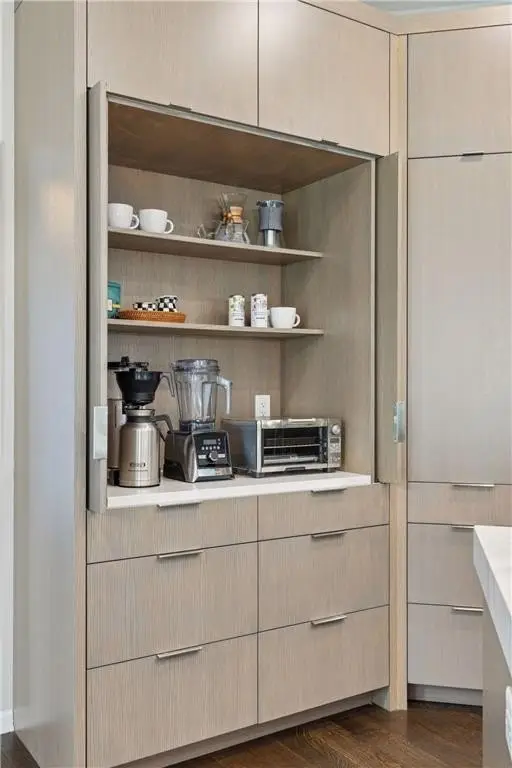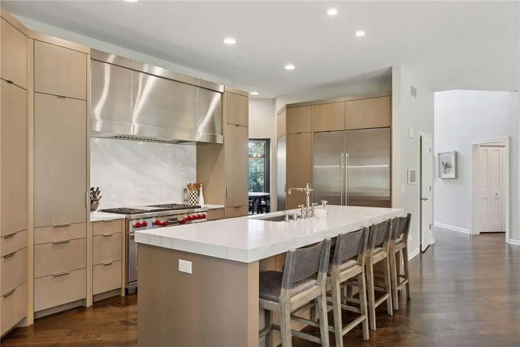• Designer lighting and rich hardwoods