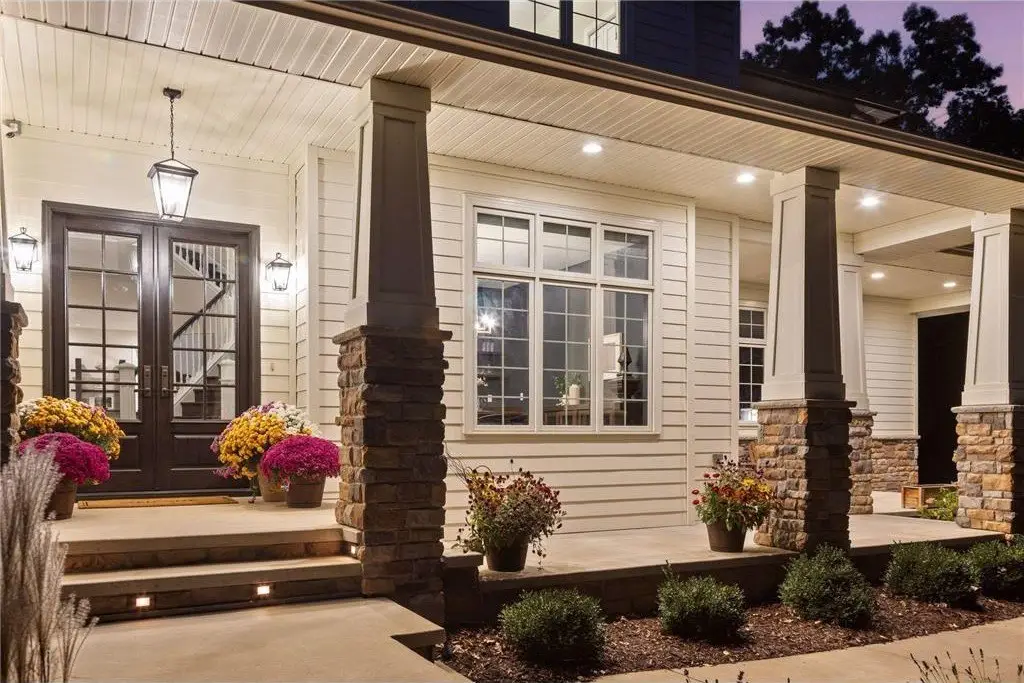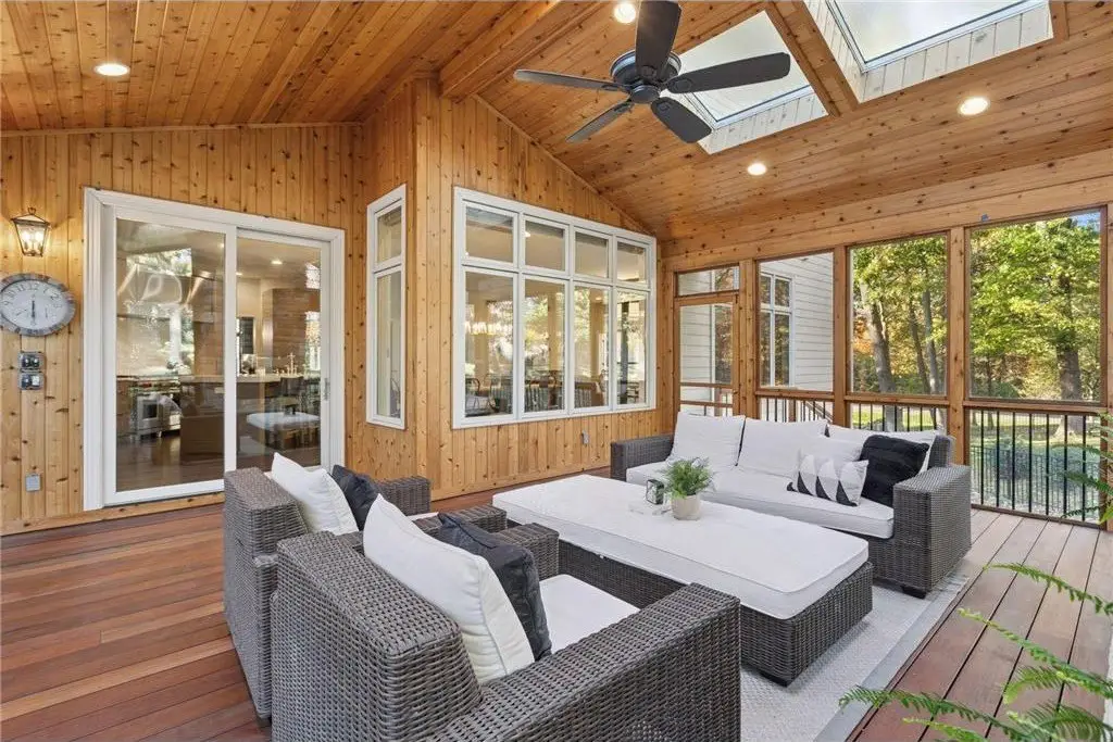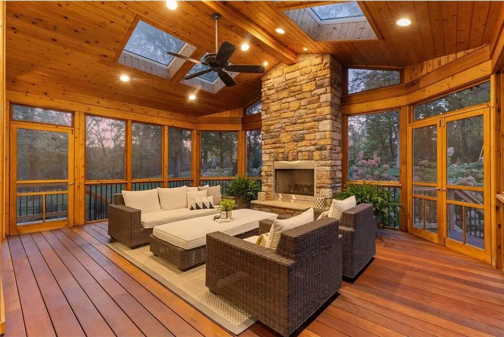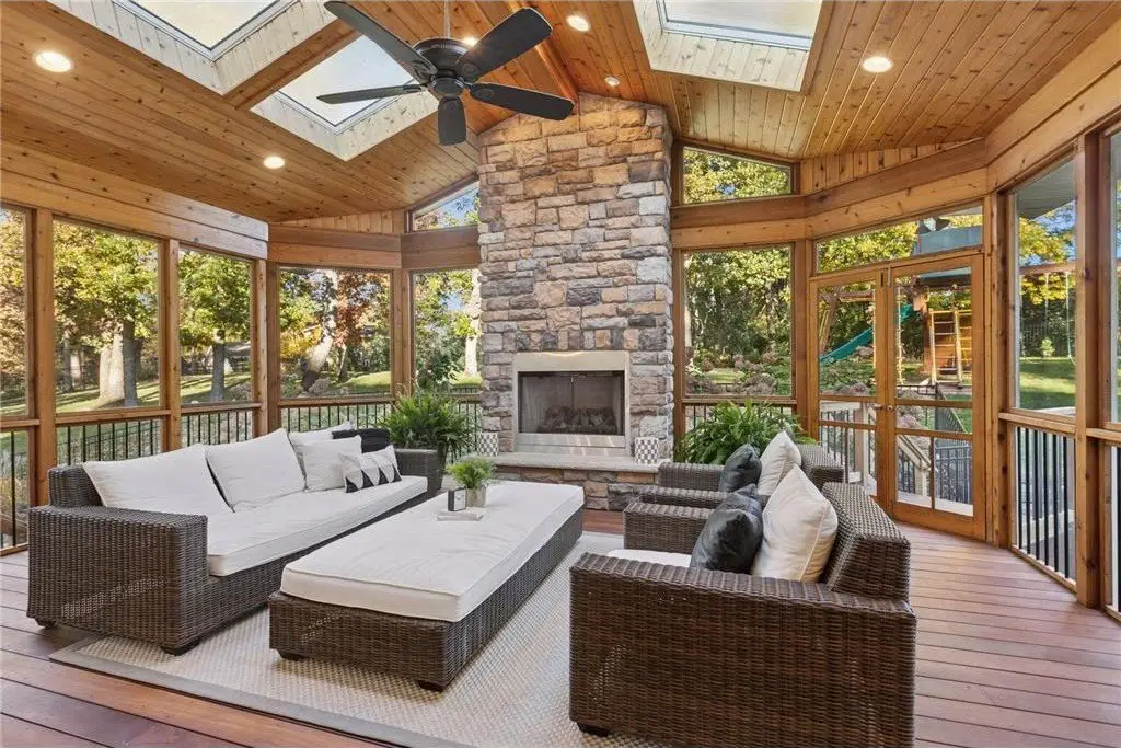 • Vaulted porch with gas-burning fireplace