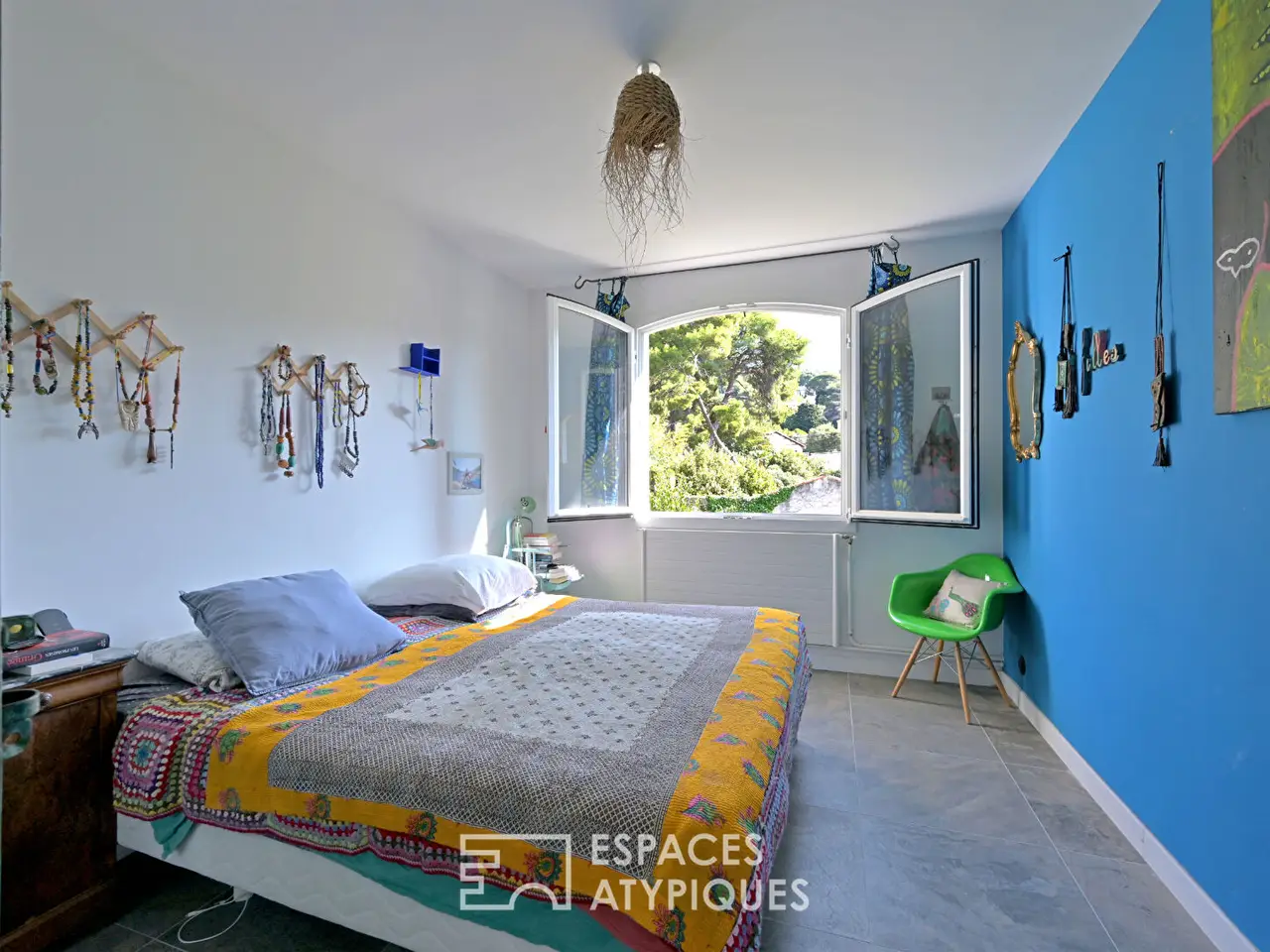 On the most sought-after southern slope of Mont Saint-Clair, this 200sqm residence comes to life in a 1,237sqm Mediterranean garden, a veritable green setting with a Bali stone swimming pool inviting tranquility.Renovated by interior designers and artists, every detail demonstrates a harmony between artistic creation, craftsmanship, and contemporary architecture, giving the house warmth, character, and personality.Upstairs, the house opens onto an interior winter garden, a prelude to the living space.The kitchen, separated by a rounded glass roof, integrates into the dining room, while the living room with fireplace extends the whole.These rooms open onto the garden below and offer a sparkling glimpse of the sea, while a bedroom with a shower room and a sunny terrace invite you to enjoy the Mediterranean mildness.On the garden level, four bright bedrooms, which can be converted into offices or workshops, along with a large living room and a bathroom, open onto an intimate, landscaped garden, a true refuge where greenery and light stimulate creativity and serenity.A Bali stone swimming pool shimmers under the sky, and a pavilion converted into a summer kitchen prolongs convivial moments.Each stone and detail reflects the craftsmanship and artistic spirit, creating a raw, lively, and luminous universe.A garage and a laundry room complete the ensemble, while a building permit to convert 100 sqm of attic space allows for the creation of a terrace and modular volumes, offering additional potential to personalize this unique home.ENERGY CLASS: B / CLIMATE CLASS: AEstimated average amount of annual energy expenditure for standard use, established using 2024 energy prices: between 1660 EUR /year and 2300 EUR /year.Information on the risks to which this property is exposed is available on the Georisques website for the areas concerned.REF. 13267Additional information* 7 rooms* 5 bedrooms* 2 shower rooms* 1 floor in the building* Outdoor space : 1237 SQM* Property tax : 3 913 €Energy Performance CertificatePrimary energy consumptionb : 104 kWh/m2.yearHigh performance housing*A*104kWh/m2.year3*kg CO2/m2.yearB*C*D*E*F*GExtremely poor housing performance* Of which greenhouse gas emissionsa : 3 kg CO2/m2.yearLow CO2 emissions*3kg CO2/m2.yearA*B*C*D*E*F*GVery high CO2 emissionsEstimated average annual energy costs for standard use, indexed to specific years 2021, 2022, 2023 : between 1660 € and 2300 € Subscription IncludedAgency feesThe fees include VAT and are payable by the vendorMediatorMediation Franchise-Consommateurswww.mediation-franchise.com29 Boulevard de Courcelles 75008 ParisInformation on the risks to which this property is exposed is available on the Geohazards website : www.georisques.gouv.fr