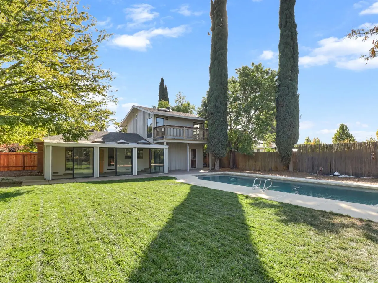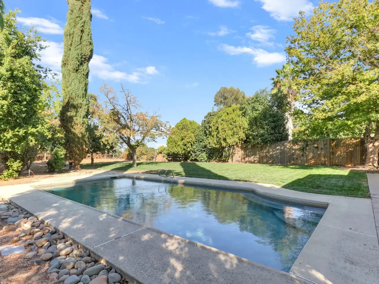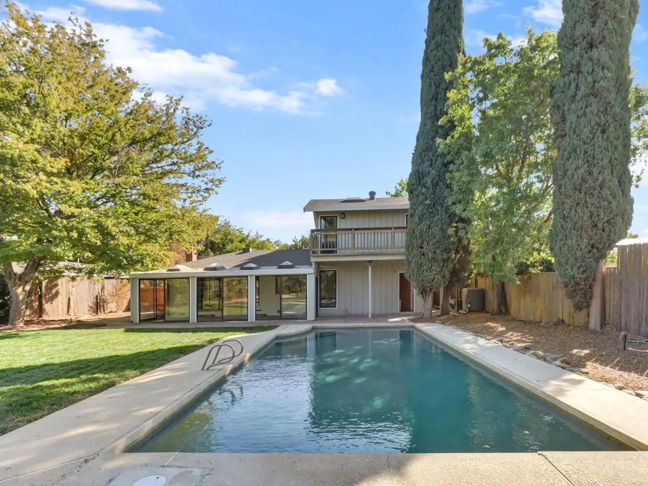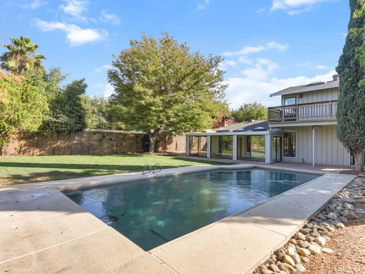 Welcome to the Binning Tract - one of Davis' premier neighborhoods. If you are looking for that country living feeling, while still being located in one of the top school districts our region has to offer and just a couple minutes from downtown Davis shops, restaurants and farmers market ... this may be the home for you. The parcel is situated on a half acre which backs up to open farmland. This 4 bedroom home has two primary suites; one on the main level and one on the second level all by itself with a breathtaking balcony view. The house comes with a Halo 5 whole house water filtration and conditioning system as well as a reverse osmosis system for clean drinking water. The kitchen and downstairs bathrooms have been tastefully remodeled, new flooring installed throughout, fresh interior paint, pool has been recently resurfaced, well repairs have been completed and this home is ready for its new owner! The front and back yards have mature landscaping including fruit trees and a large newly laid grass area. The current owners and their kids have loved living in this home, their kids having made friends all down the street, and now it is your opportunity to continue this tradition of joy at 39732 Sharon!