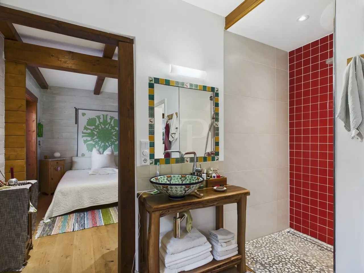 An exceptional property awaits you here: - a paradise for a family that wants to feel completely at home - for those seeking peace and quiet who appreciate privacy - for artists who want to work in their own studio - for the self-employed who need office or practice space. An oasis that allows for many different living and usage concepts. Here, modern, energy-efficient technology is combined with Mediterranean influences in the architecture, furnishings and interior. The first floor of the main house is dominated by a whitewashed wood-burning stove, which provides the ground and upper floors with a cozy warmth and a pleasant indoor climate during the cold months. This keeps additional energy costs to a minimum. A cozy living area with brick seating and lounging elements awaits you next to the wood-burning stove. Here you can spend relaxed, cozy evenings. The living/dining area and kitchen flow seamlessly into one another and you have access to the inviting, partly covered wooden terrace and the beautifully landscaped, secluded garden. On the first floor there is a spacious bedroom with cozy oak floorboards and an adjoining Mediterranean bathroom with a walk-in shower. The WC is separate and can also be reached from the hallway. An open staircase leads from the hallway to the gallery on the upper floor. This spacious, light-flooded, gable-height loft with floor-to-ceiling windows currently serves as a bedroom. The loft can easily be divided into two separate bright rooms if required. There is another room on this floor that could be used as an office or children's room. The converted basement can also be reached from the first floor via an open staircase. Here you will find a separate living/sleeping area with an integrated bathroom and access to the garden. This spacious feel-good space would be ideal as a living area for older children, a guest room, hobby room or study. The apartment building is a dream home for 1 or 2 people with a modern kitchen, bright bathroom with walk-in shower and a loggia for daydreaming and relaxing. A living space for older children or grandparents would also be conceivable here. Thanks to the pleasant and light-flooded atmosphere, these rooms are suitable as a practice or therapy room. This gives you the opportunity to combine living and working on one property. The varied and lovingly landscaped garden offers you sunny and shady spots to celebrate with guests or relax and read a book in the pavilion. Children have plenty of space to play and discover. The properties are located in a mature residential area in a quiet, central location. You can run everyday errands on foot. You will love living here, close to the city but with privacy that cannot be seen. The two exceptional properties are located on one plot and can only be sold together. Are you interested in this energy-efficient property? Then send an inquiry by email or call 0179-2274038.