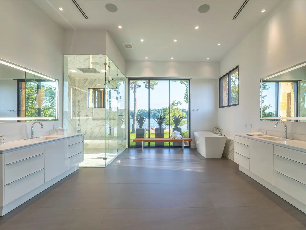 THE CROWN JEWEL of LAKE CYPRESS SPRINGS in EAST TEXAS! 23, 25, 27 W Eagle Point Drive, this exclusive property on the lake, offers 360 degrees of STUNNING VIEWS! It includes 3 beautiful homes, 14995 SF air conditioned living, 9.21 acres, 1240.21 ft of water front! TEXT AGENT for 100 PLUS PICS, SF, room sizes, acres for each home! Enjoy every modern amenity, beautiful sunsets, & amazing lake access in this private, gated compound! The main house,8268 SF, was built in 2018 and the white house,3649 SF, in 2016. The brown house,3078 SF, was renovated in 2019! Perfect for gathering family & friends, entertainment abounds with a gorgeous pool & cabana, fire pit on the point, playground, sport pickleball court, putting green, gym, media room, large game room, 3 boat houses with jet ski & paddle board storage! The breathtaking grounds & properties are meticulously maintained! Panoramic views of the lake may be seen from the main house & pool cabana with an inviting living area, full kitchen & bar. The main houses gracious family room open to a great bar & an expansive kitchen & dining area, a large walk-in storage & pantry, a serene downstairs primary suite, 2 secondary bedrooms, a gym, media room, & game room, plus smart AV. The stunning open concept white house has the kitchen open to the dining & family rooms. It features a primary bedroom suite downstairs, 3 wonderful secondary bedrooms upstairs, & flexible bonus game, guest or exercise room, as well as an inviting deck to entertain expanding the full width of the property. The charming brown house was thoughtfully reimagined in 2019 with an open living room, eat in kitchen, & bar, as well as 3 spacious guest rooms. The largest guest room also doubles as a play or TV room, complete with a loft with twin bedding & desk area! An upstairs primary suite & a large back porch lined with rocking chairs complete the home! 3 car garage in the main house & 2 car garages other homes! Make this your own Private Lake Paradise today!