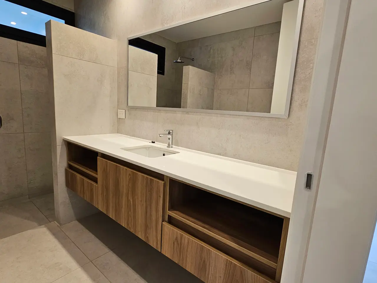 • Custom Petiribí wood cabinetry and Calacatta countertops.