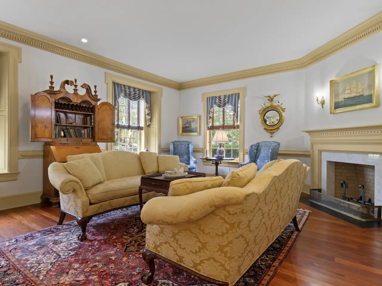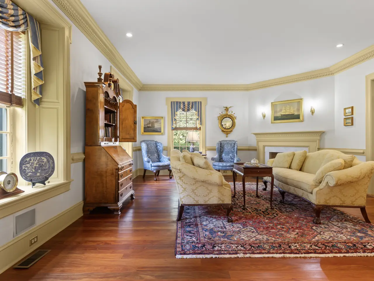 This architecturally significant Georgian Colonial residence seamlessly blends historical elegance with modern luxury. Situated on a generous and private 1.7-acre lot in one of Delaware’s most sought-after neighborhoods, this custom-built 6-bedroom, 6 full and 3 half-bath brick estate offers roughly 13,000 square feet of impeccably finished living space and built by the current owner's. Crafted in 2001 with a reverence for classical design, the home features exquisite historical elements throughout, including intricate plaster crown moldings and custom chair rails, wide-plank Santos Mahogany hardwood floors throughout, and a stately central staircase gracing the formal entry foyer. Every detail has been thoughtfully curated to honor traditional craftsmanship while delivering the utmost in contemporary comfort. The grand foyer is flanked by distinguished formal living and dining rooms, each with its own fireplace—wood-burning and gas, respectively. The dining room connects to a well-appointed butler’s pantry, leading into a chef’s kitchen designed for both beauty and function. Highlights include Knudsen custom cabinetry, antique panel glass details, a hand-made burled walnut island with seating, and premium appliances—including dual dishwashers. Adjacent to the kitchen is a private office/study with a wood gas-burning fireplace and a discreet staircase leading to a spacious HVAC controlled media room located above the three-car garage. The expansive family room offers built-in shelving, a wood-burning fireplace, and direct access to the rear slate patio—perfect for entertaining or quiet enjoyment. Additional main-level features include formal and informal powder rooms, a large laundry room, and convenient interior access to the garage. Ascend the elegant main staircase to the luxurious primary suite, which boasts a generous bedroom, spa-like en-suite bath with jetted soaking tub, walk-in shower, cultured marble double vanity, and custom-designed California Closets. The second level also offers an additional en-suite bedroom and two more bedrooms connected by a Jack-and-Jill bath. The third floor features two additional bedroom suites, a comfortable sitting room area, and a large storage room—ideal for needed overflow storage. The finished lower level is designed for entertaining on a grand scale. It includes a custom speakeasy-style bar with wine room, a media room, full bathroom and powder room, dedicated office space, and abundant storage. Step outside to the private rear yard and enjoy the beautifully landscaped slate patio, in-ground pool, and expansive, newly fenced lawn—perfect for recreation or relaxation. This extraordinary Greenville property offers unparalleled privacy and elegance, all within minutes of Downtown Wilmington, Rockford Park, Trolley Square, Amtrak, and major roadways.
