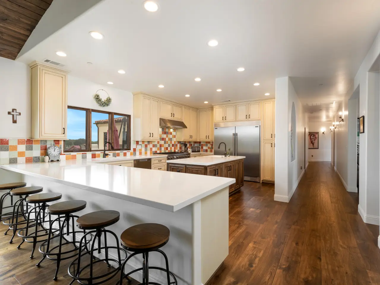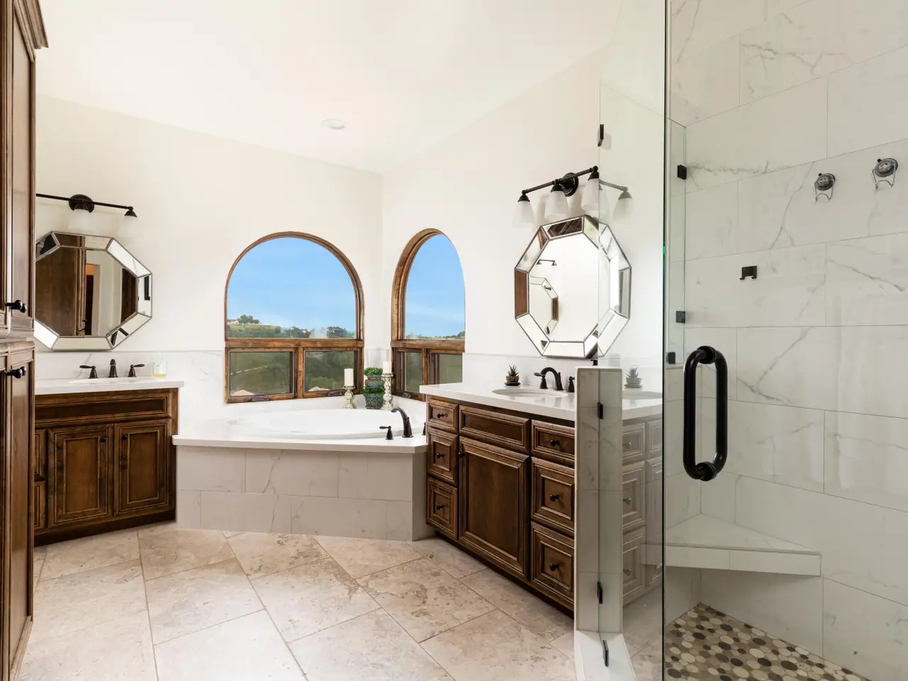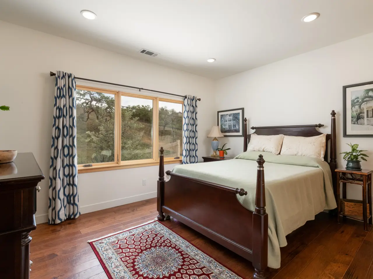 Hilltop Mediterranean estate with legal second residence on 4.47 acres in Oak Trail Estates. This elevated beauty offers sweeping mountain and valley views. The main residence is a four bedroom, 3.5 bath custom-built home with soaring wood ceilings, large view windows and seamless indoor-outdoor flow to the covered outdoor living area with fireplace and TV. 1 of the bedrooms is a complete suite with a private entrance. Enjoy the peace of your private hillside retreat. Expansive four-car garage with 240V EV charging. Independent legal second residence is a two bedroom, two bath 1,178 square foot home with detached two-car garage built in the same Mediterranean style. Second residence has an independent address and private driveway -- ideal for guests, extended family, staff or passive income. Both homes share a reliable 600-foot well with the neighbor. This is a rare offering with two fully independent residences and no HOA.
