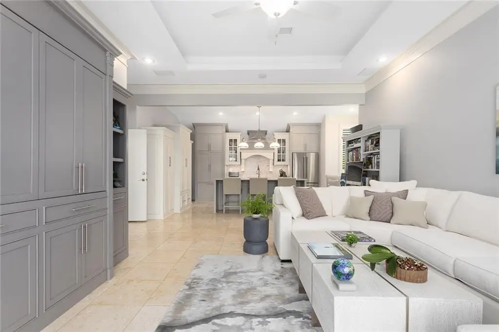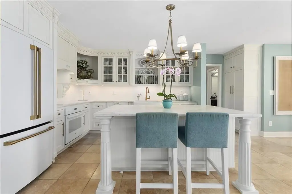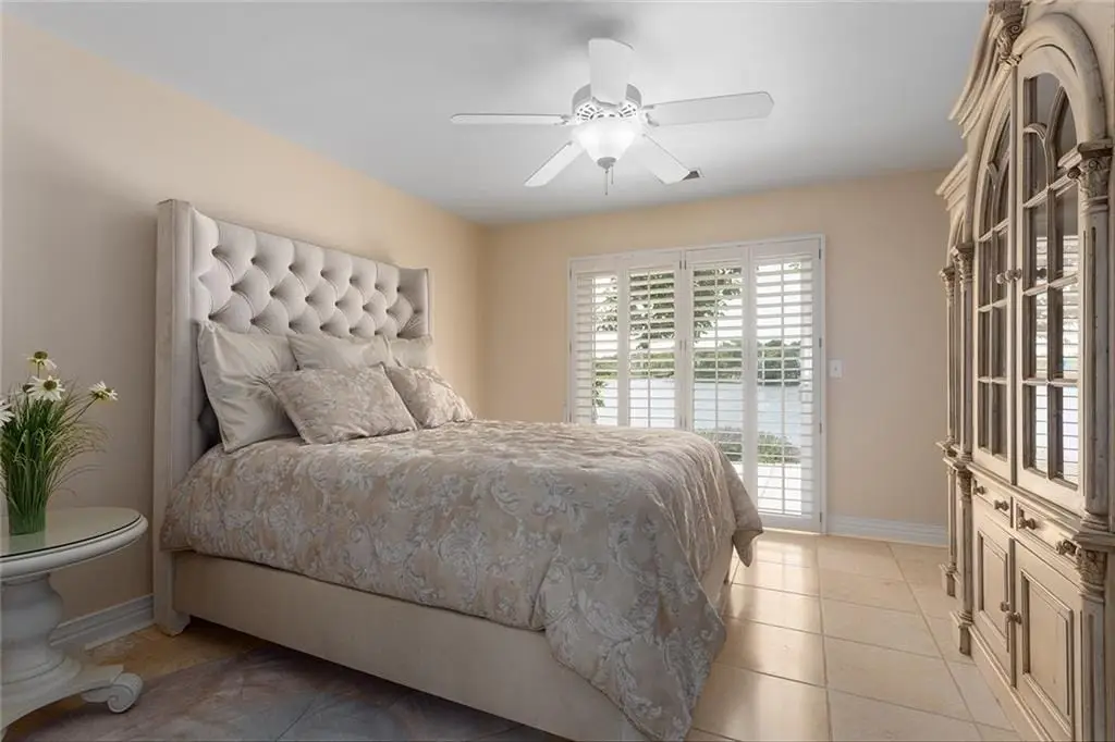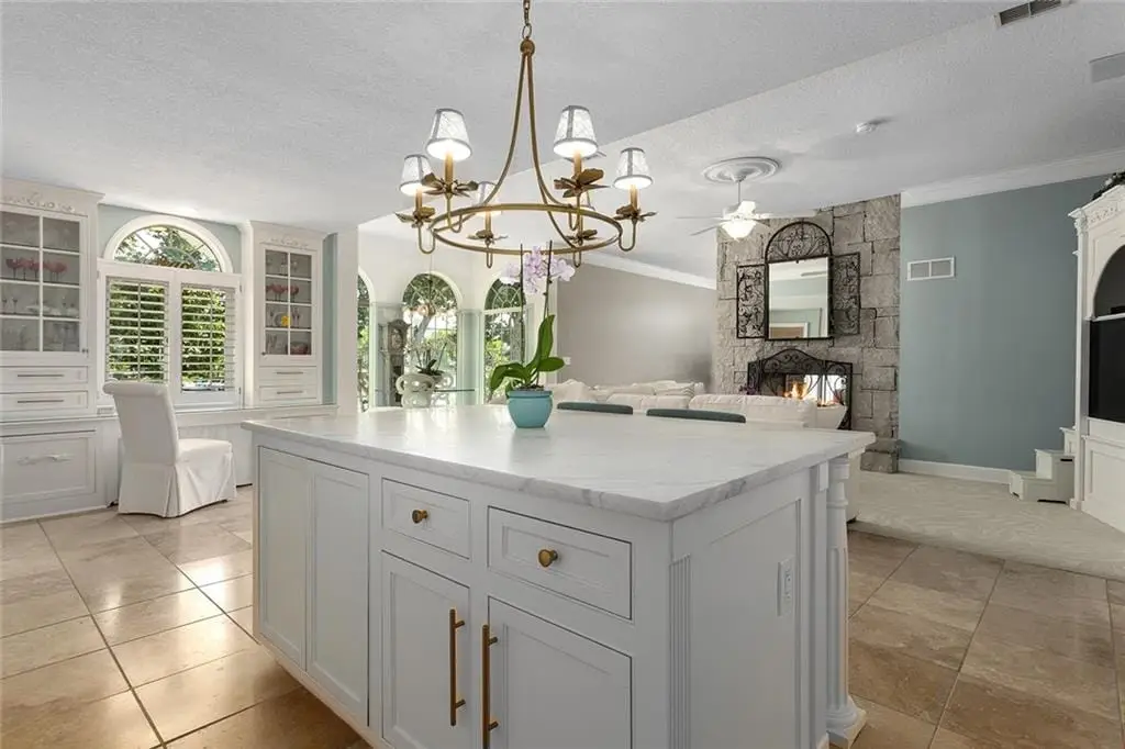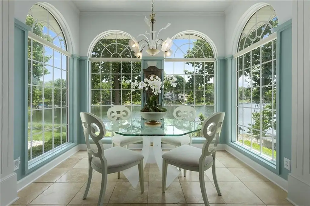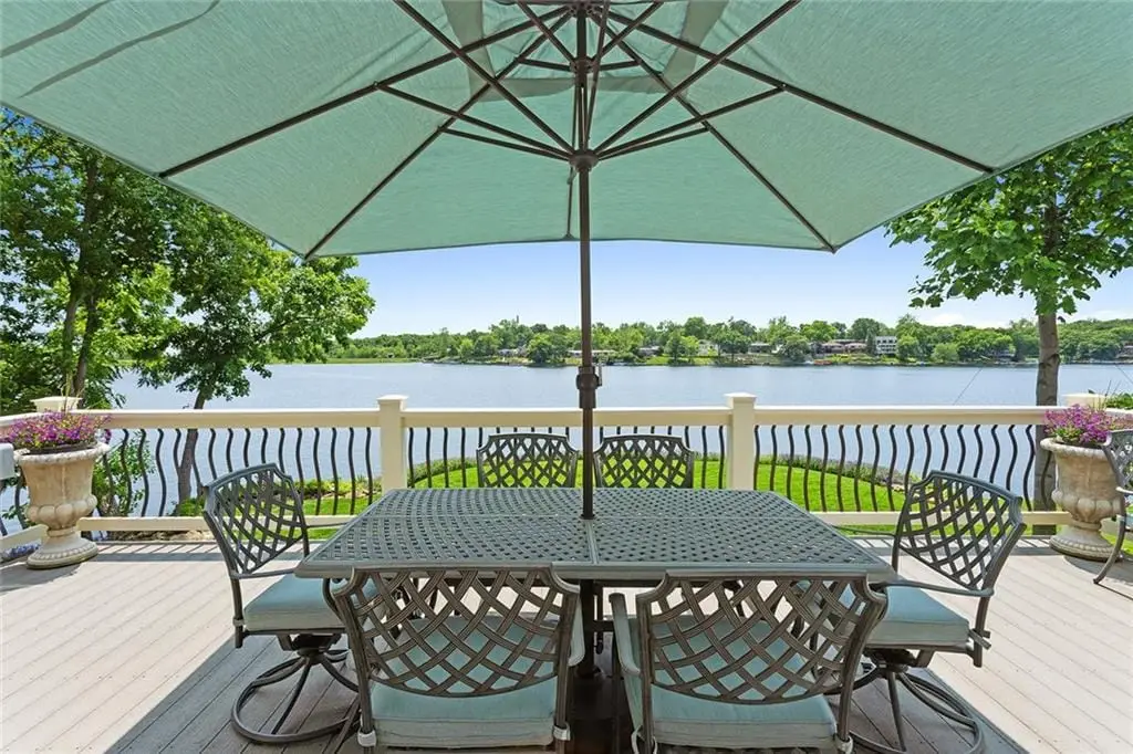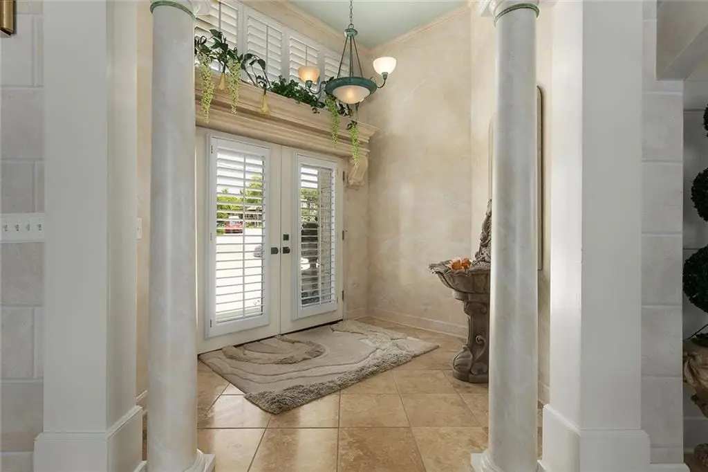 Tucked away on one of the most coveted lakefront lots in the Northland, this one-of-a-kind, custom-built home was thoughtfully designed by an interior designer to take full advantage of its breathtaking views. Nearly every room in this meticulously maintained residence has water views. Step into the grand foyer where soaring columns and faux marble accents set an elegant tone. From there, a second entry welcomes you with a barrel-vaulted, hand-painted ceiling and sweeping lake views that draw you further into the heart of the home. The French country-inspired kitchen is a dream for any entertainer or home chef, featuring a hand-selected marble island, custom cabinetry, a cozy stone fireplace, built-in entertainment center and desk, and an all-glass breakfast room with arched windows overlooking the lush, landscaped yard with multiple water features. The hearth room flows into a spacious living room with a see-through fireplace, a wall of glass framed with plantation shutters. The primary suite is a peaceful retreat with patio access, high ceilings, custom built-ins, upgraded carpet, and plantation shutters. The ensuite bath offers a spa-like experience with a dome ceiling over the soaking tub, walk-in shower, and dual vanities. A second bedroom also has direct patio access and features elegant travertine floors. Recently added second living quarters include a full gourmet kitchen, living area with built-ins, breakfast nook, second master suite with luxurious bath, large walk-in closet, and even a second laundry room, perfect for guests, in-laws, an adult child, or anyone looking for privacy and independence. The space also features its own private entrance. Additional highlights include a spacious three-car garage with high-end epoxy floors, a private dock with a pontoon boat included, full irrigation system, expansive patio and deck spanning the length of the home, and professional landscaping throughout. This is more than just a home - it's a lifestyle.