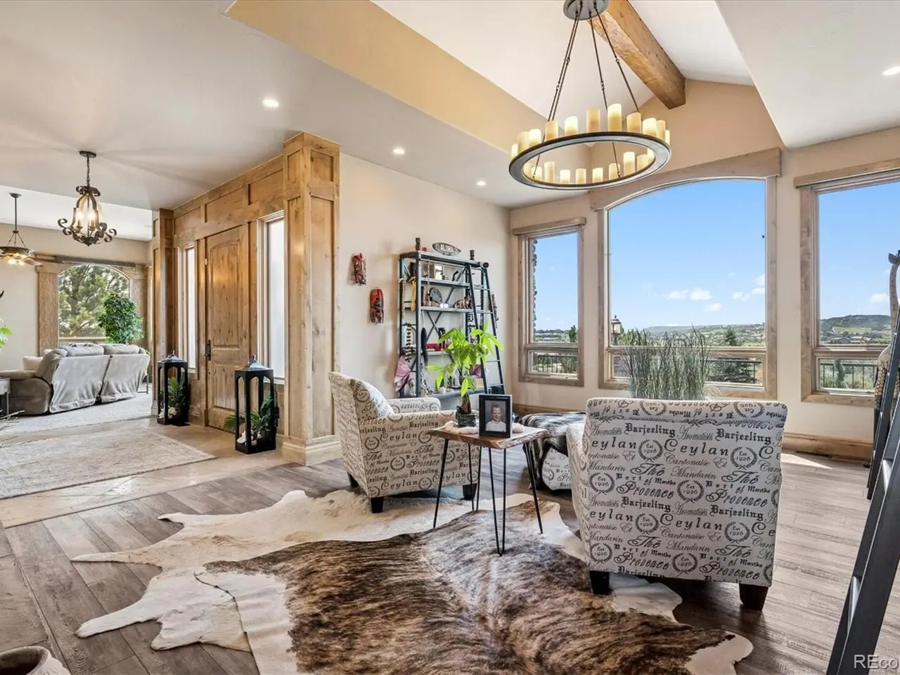 ***Experience the inspiring views of the entire Pradera Valley, tree-lined distant ridges and beyond from this elevated lot*** This masterpiece offers style, floorplan, rare quality of construction, panoramic views, large 1.84 arce lot, finished walkout basement, privacy and more. Perched on one of Pradera's highest lots, even the finished walkout basement has fabulous views! Built by Summerwood Custom Homes, this exquisite property has been impeccably maintained and is in excellent move-in condition. The finest of upgrades are evident throughout with stylish knotty alder cabinets and doors. Other upgrades include Viking appliances, thick slab granite countertops, tile flooring, 6 fireplaces/firepits, hand-scraped ceiling beams, massive deck with those incredible views, dramatic ceiling finishes, gourmet kitchen, views of Pike's Peak, oversized garage, fininshed walkout basement, spacious 1.84 acre lot with mature landscaping, firepit, stone accents throughout, striking wet bar, water feature, multiple outside sitting areas to accommodate any time of day, seperate and secluded deck off the primary bedroom, wine closet and the list just goes on and on! The next owner can even add an additional detatched building for a separate garage, workshop, in-law home (with approval of the HOA and within the covenants)! Drive your personal golf cart to the Pradera Golf Club for a round of golf, driving range, putting green, tennis courts, dinner, workout in the exercise facilities or just a quiet adult beverage. Easy access to DIA, DTC, hospitals, restaurants, shopping, I-25, C-470, Colorado Springs, Castle Rock and Parker. Make this gorgeous home and Pradera your next home to enjoy for years or decades to come!!!