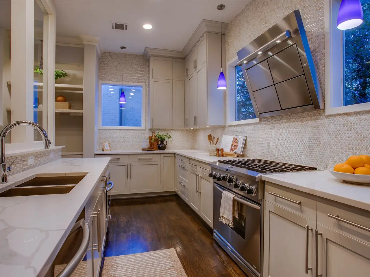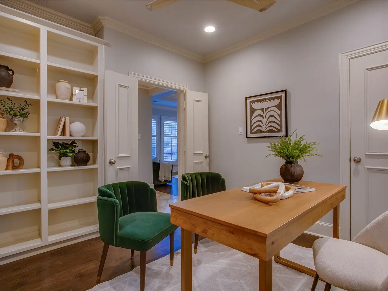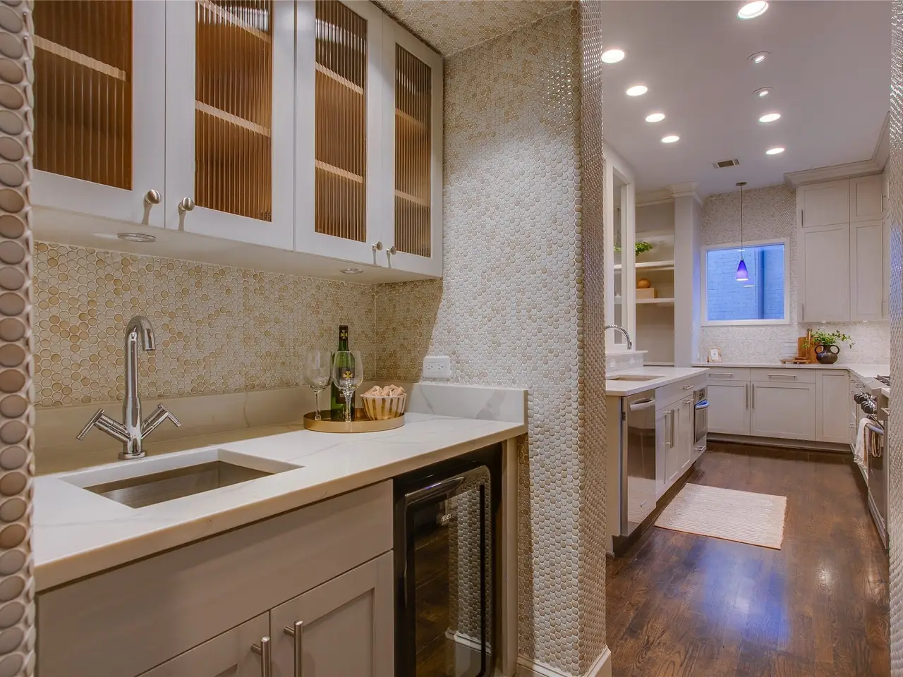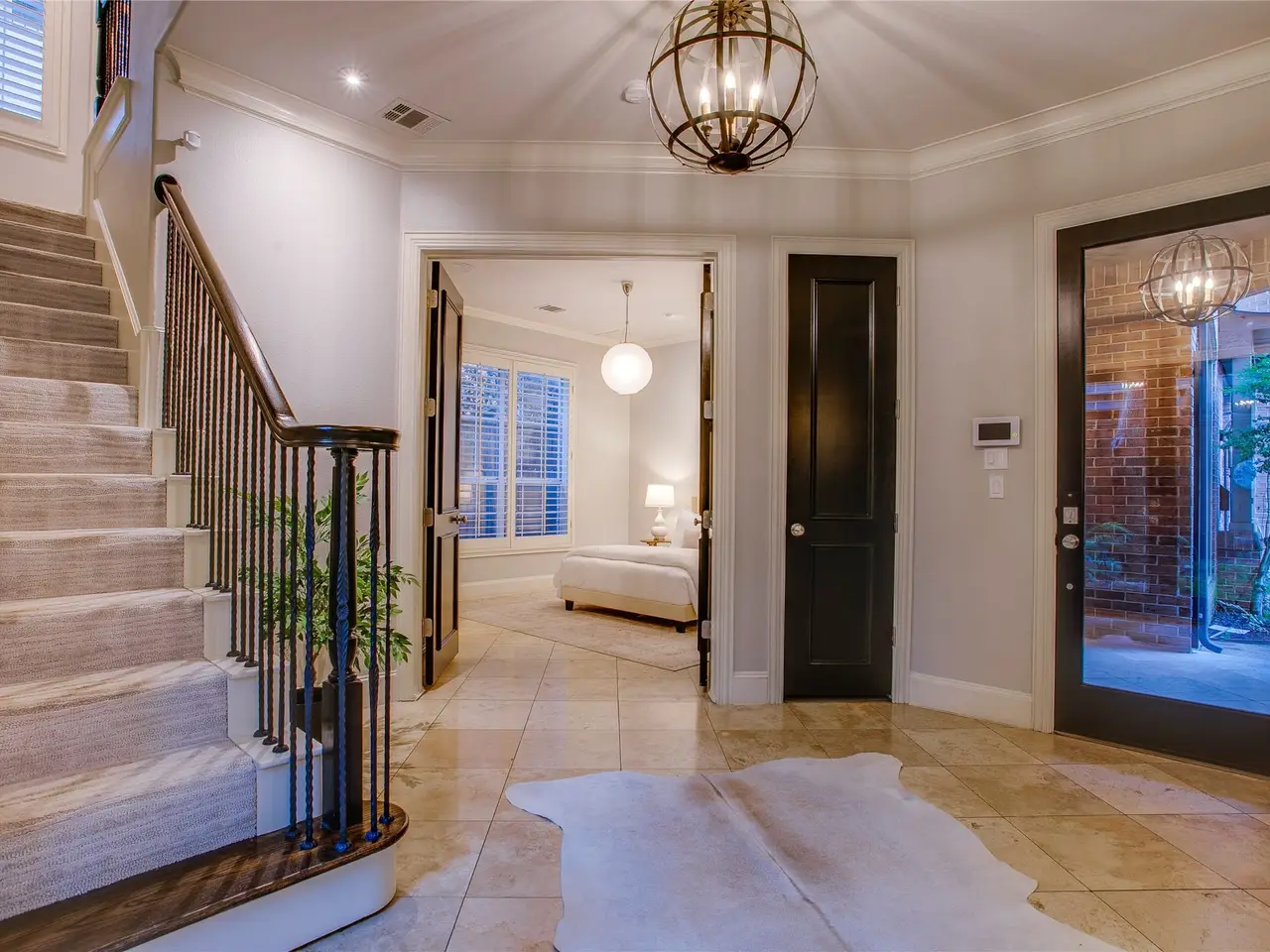 Nestled beneath mature oaks in one of Dallass most walkable pockets, this residence feels like a quiet retreat wrapped in the energy of Turtle Creek in SoHiP Neighborhood. Its stone-and-brick exterior, lantern lighting, and wrought-iron details set a timeless, welcoming tone that continues inside. Through the gated entry, a light-filled foyer opens to French doors leading to a private courtyard gardenlush with ferns, soft groundcover, and sculptural trees that create a rare moment of calm in the city. On the main living level, natural light moves across crisp millwork and dark hardwoods. The living room centers around a modern fireplace and transitions easily into a serene dining room shaped by warm neutrals and soft lighting. Arched openings and paneled details add texture and depth, giving every space a thoughtful sense of rhythm. The kitchen blends beauty and function with custom cabinetry, stone counters, mosaic tile, premium appliances, and a fully integrated butlers pantry. Framed openings keep it visually connected, allowing light and conversation to move naturally throughout the home. Upstairs, the primary suite offers a true sense of retreat with vaulted ceilings, a wall of windows, and a generous sitting area. The adjoining bath features layered stonework, a freestanding tub, dual vanities, towel warmer, and a walk-in showercrafted for restorative daily rituals. A nearby third bedroom perfect for an office provides dedicated space for work or creativity. A private first-floor guest suite adds flexibility and comfort for visitors or multigenerational livingan elevated alternative to the typical townhome layout, and an easy plan to add elevator. Throughout the home, thoughtful updates and careful maintenance reflect years of intentional stewardship. Just moments from Turtle Creek Park, the Katy Trail, cafs, and Oak Lawns dining and cultural scene, this residence blends architecture, comfort, and lifestyle into one beautifully considered experience.